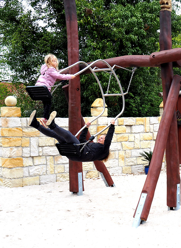Der Schaukelsitz "Groß und Klein" und der "Pärchensitz" sind im letzten Jahr bereits in viele Kommunen und Parks installiert worden. Vielleicht wollen auch Sie eine vorhandene Schaukel auffrischen? Einfach mal anfragen!