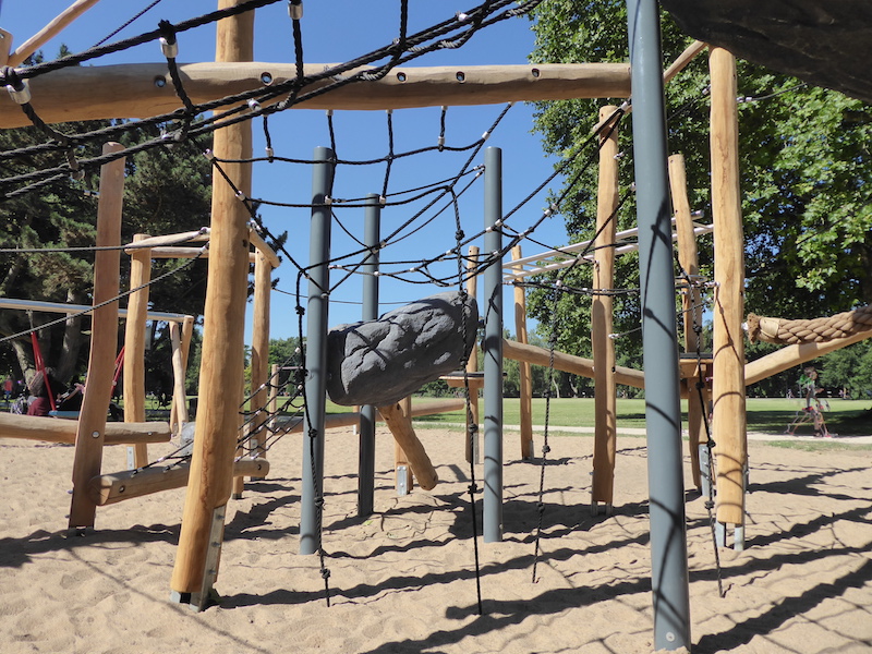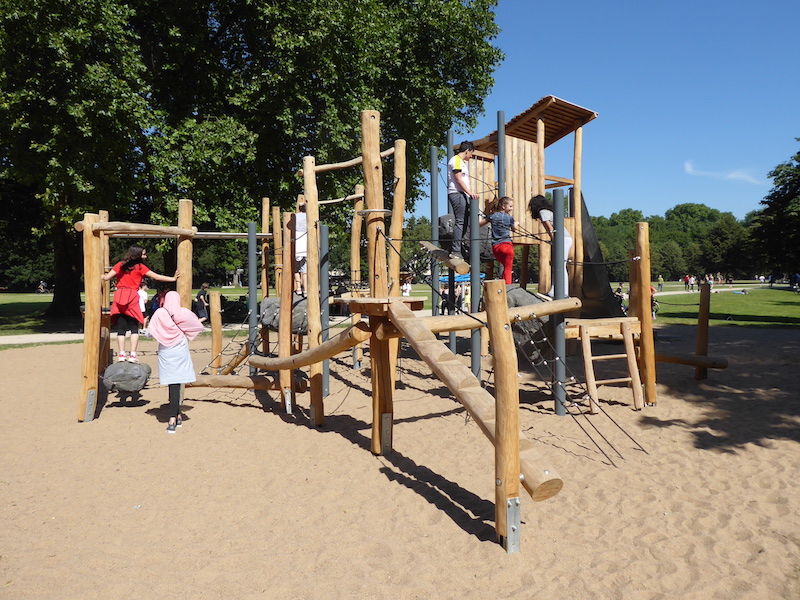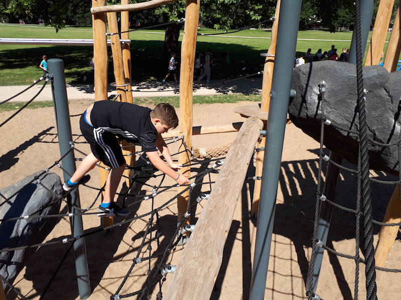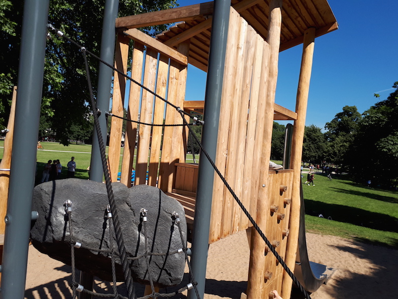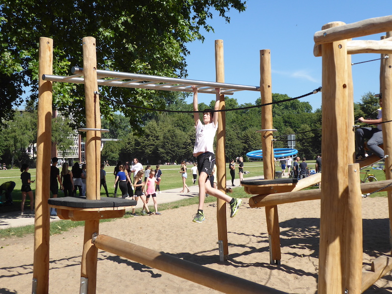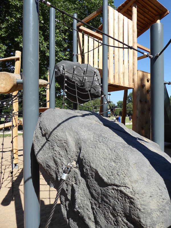 Im Grüngürtel der Kölner Schmalbeinstraße befindet sich ein neues Highlight. Hier geht es ums Klettern in allen Facetten: Netze, Steigstämme, wacklige Leitern, schwankende Steine, hohe Hangelleitern, schiefe Felsen! Hauptsache man bleibt in Bewegung und wer schnell wieder runter möchte kann die Freifallrutsche nehmen.