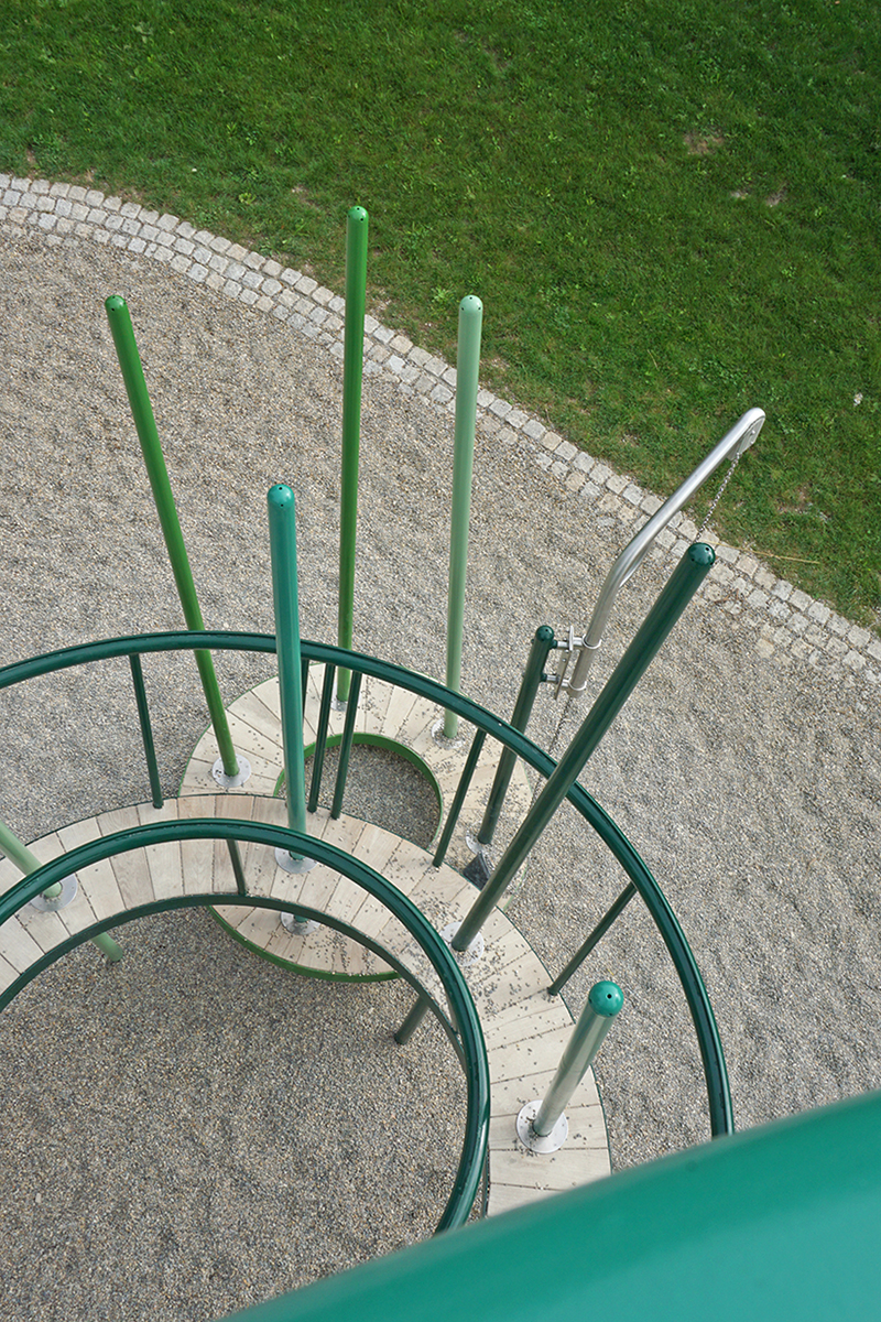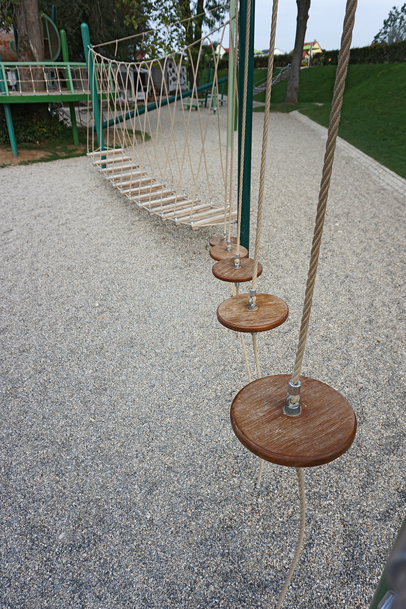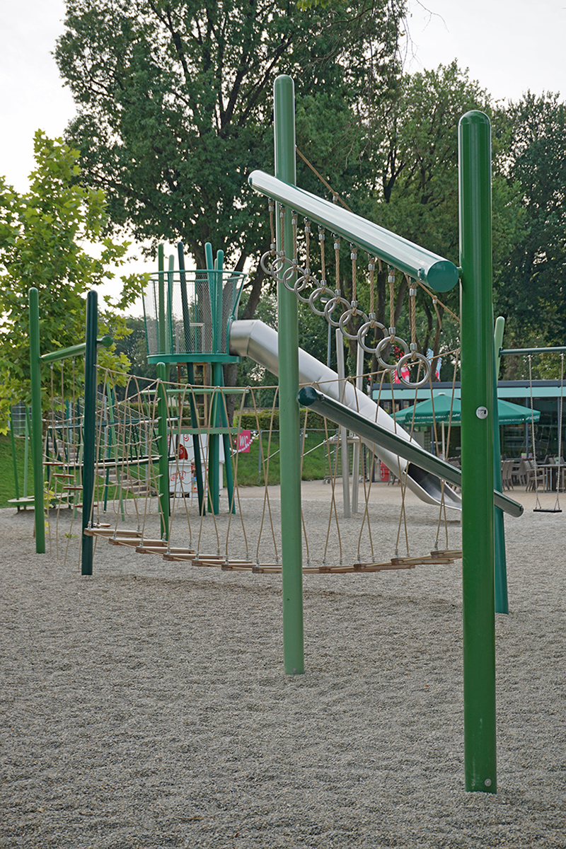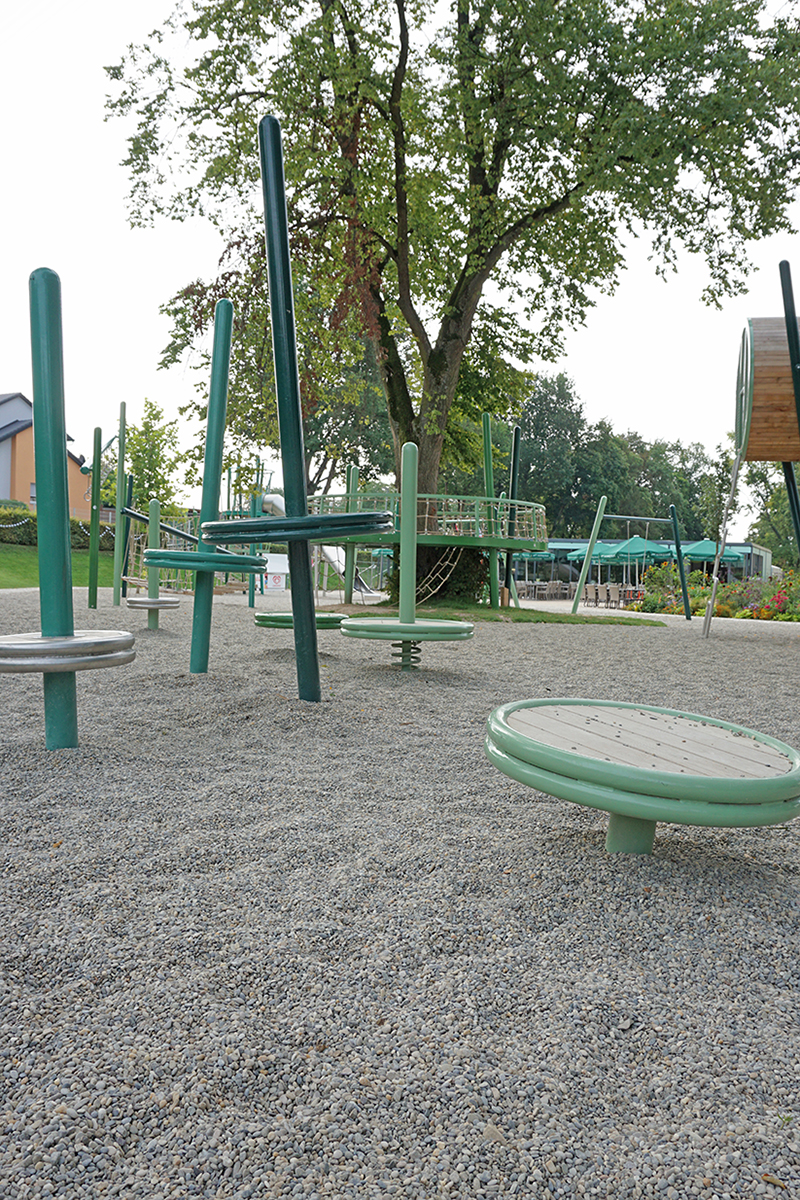 Ergänzt wird der Erlebnisspielplatz durch Recks in unterschiedlichen Größen sowie Sitz- und Aussichtsplateaus.