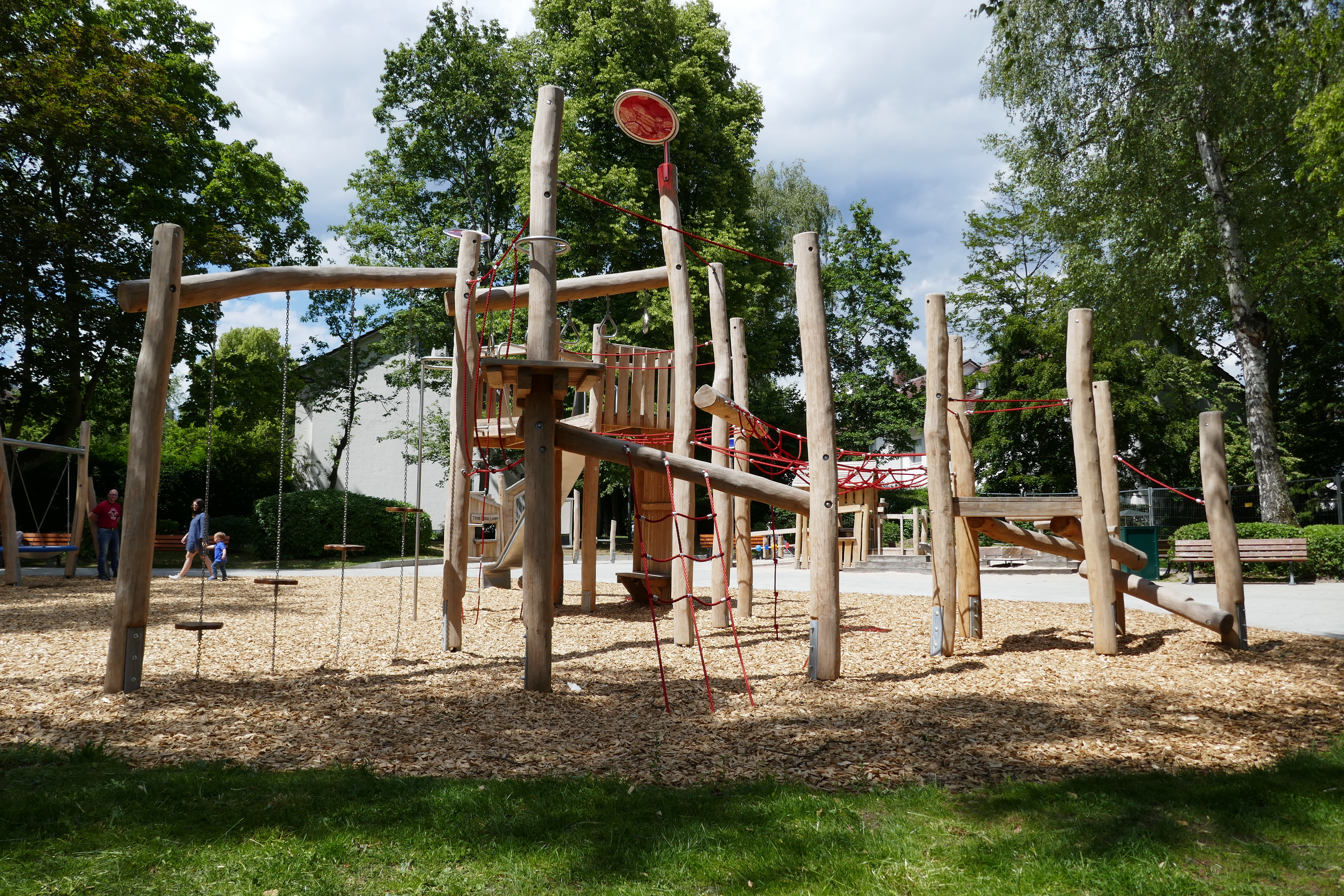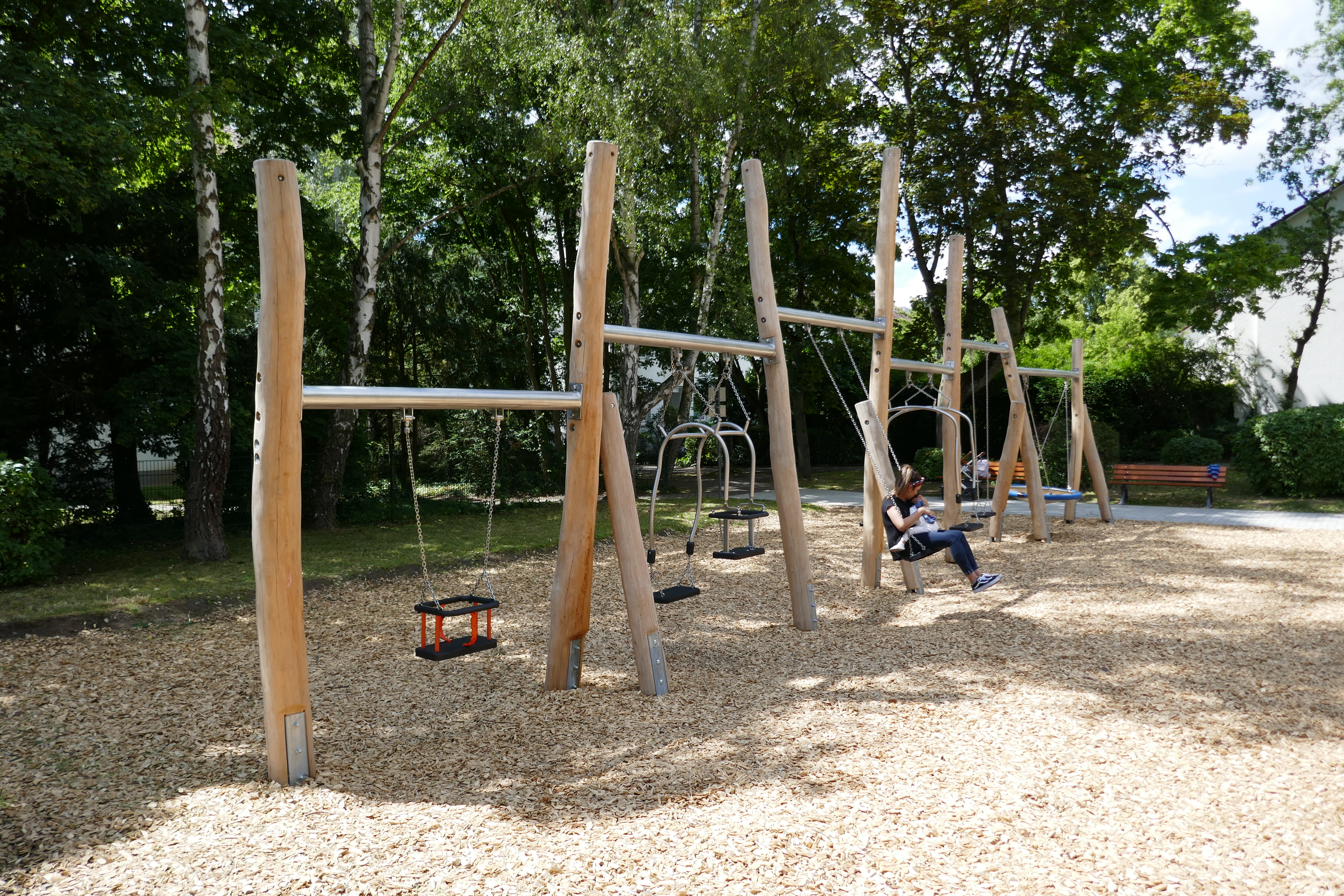 Gleich gegenüber befindet sich die Mehrfachschaukel, die mit ihrer Vielfältigkeit überzeugt. Ob alleine auf dem Kleinkindersitz oder mit Freunden in dem Kalotta-Schaukelkorb, der Schaukelspaß ist garantiert.