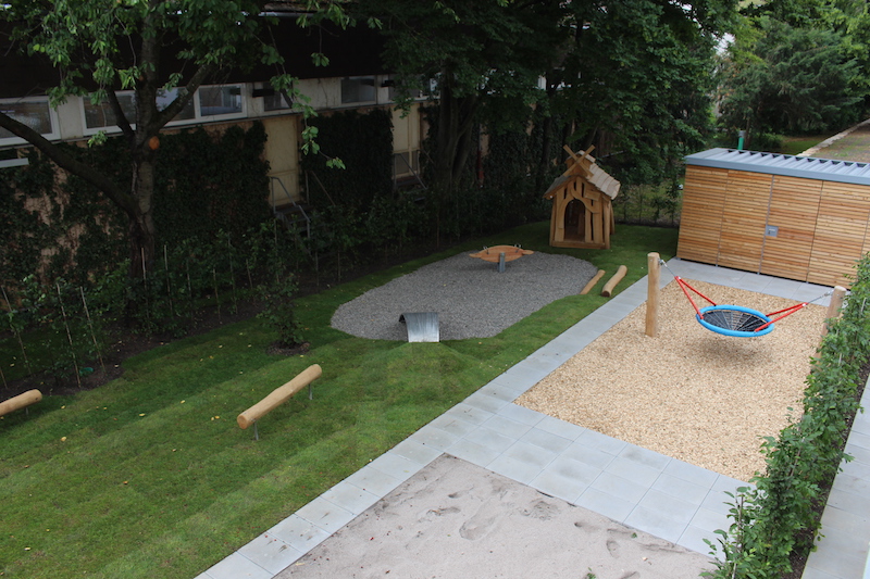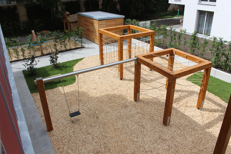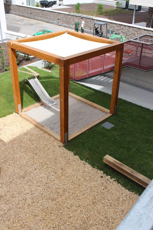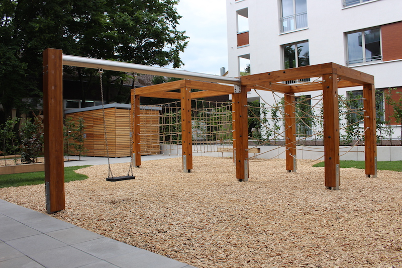 In Deutschland entsteht gerade viel neuer Wohnraum und somit auch neuer Spielraum! In Stuttgart am Killesberg ist in einer neuen Wohnanlage ein Spielplatz entstanden, der die gerade moderne Architektur der Neubauten aufnimmt und auf engem Raum viele Spielmöglichkeiten bietet. Vom abgetrennten Kleinkindbereich, über spannende Kletterkuben zur klassischen Schaukel über eine sonnengeschützte Rutsche lässt dieser Spielplatz nichts vermissen.