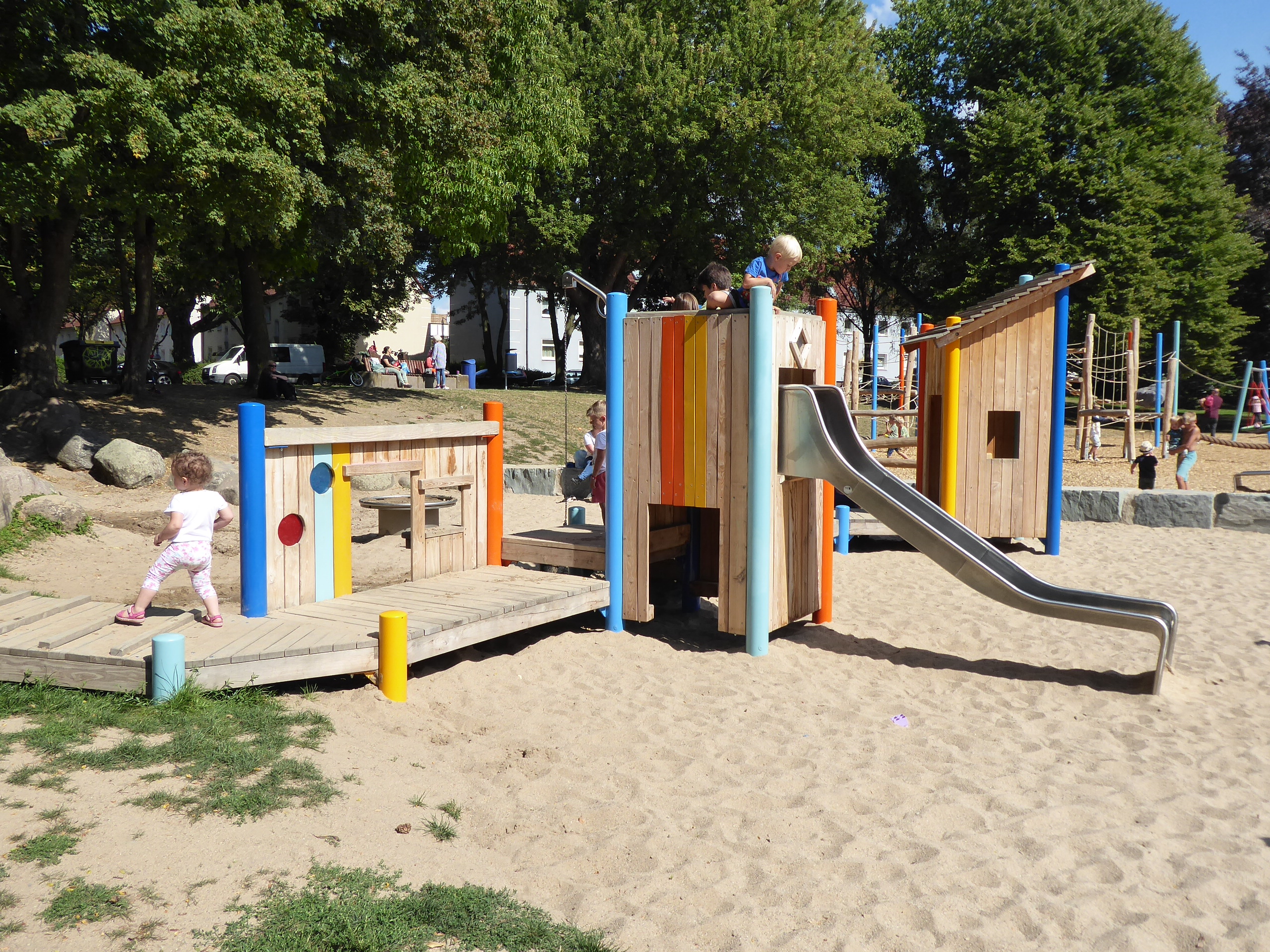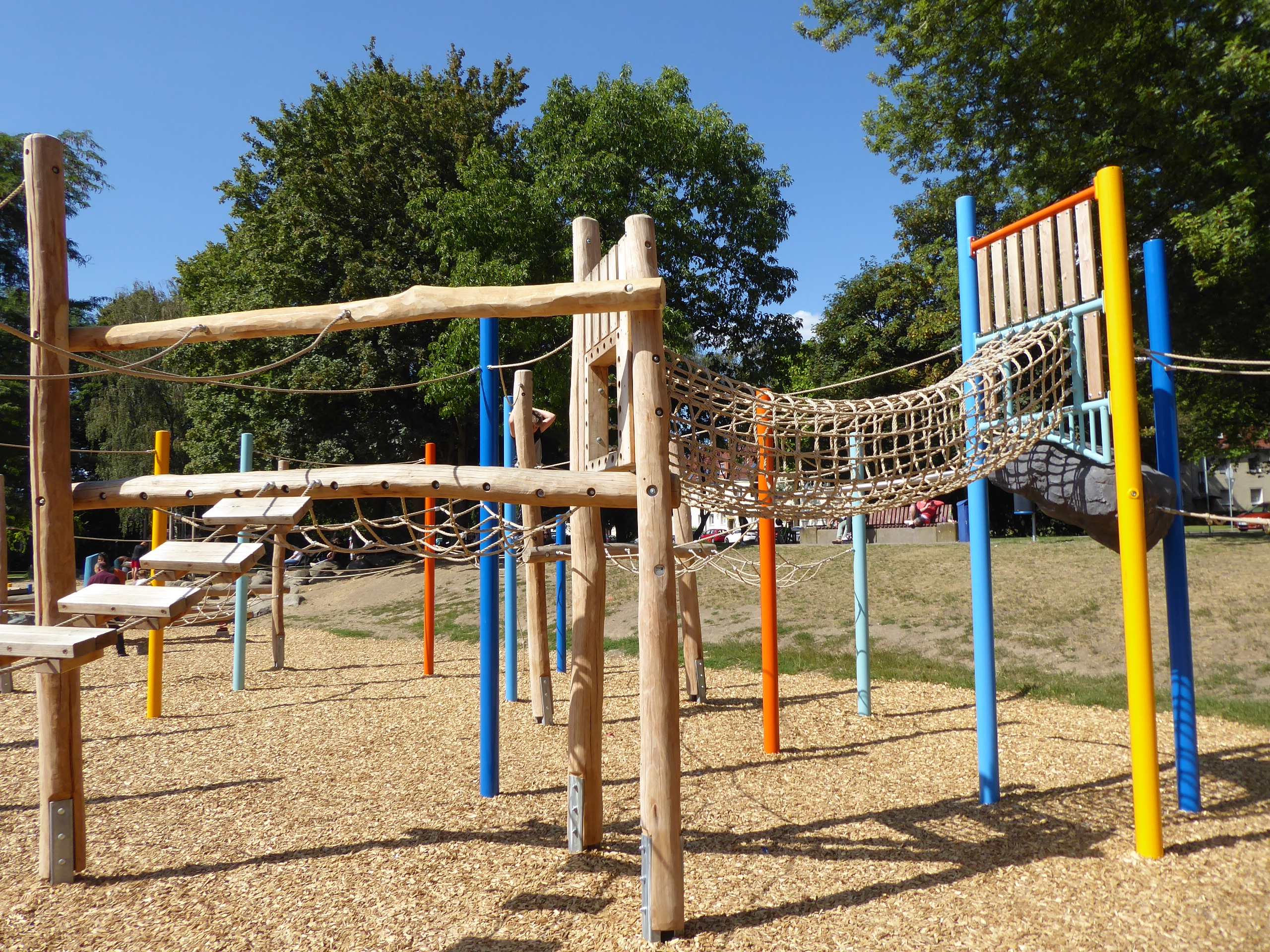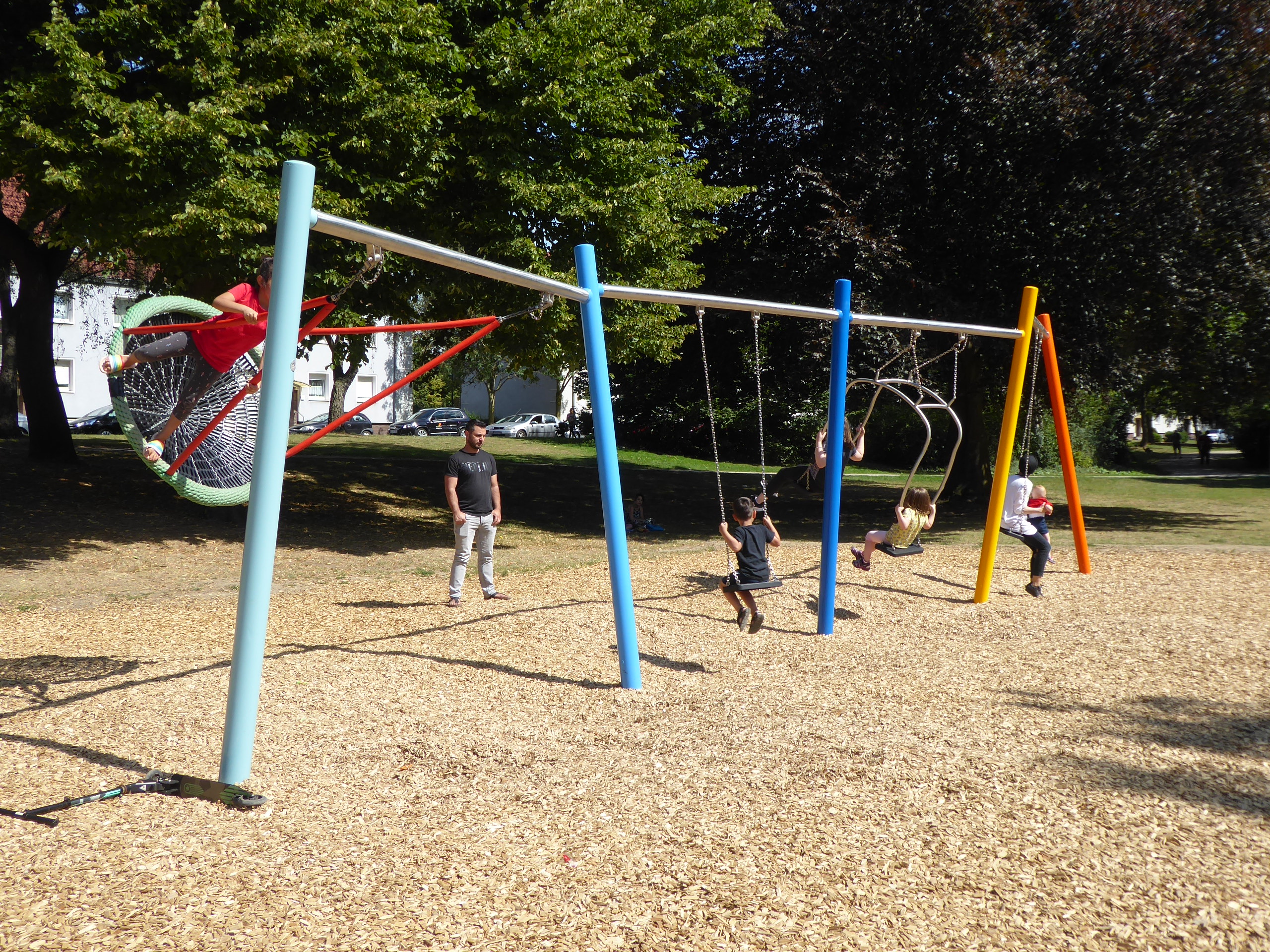 Auf dem Duisburger Franz-Lenze-Platz haben wir einen bestehenden Spielplatz mit neuen, ganz besonderen Spielgeräten ausstatten dürfen.