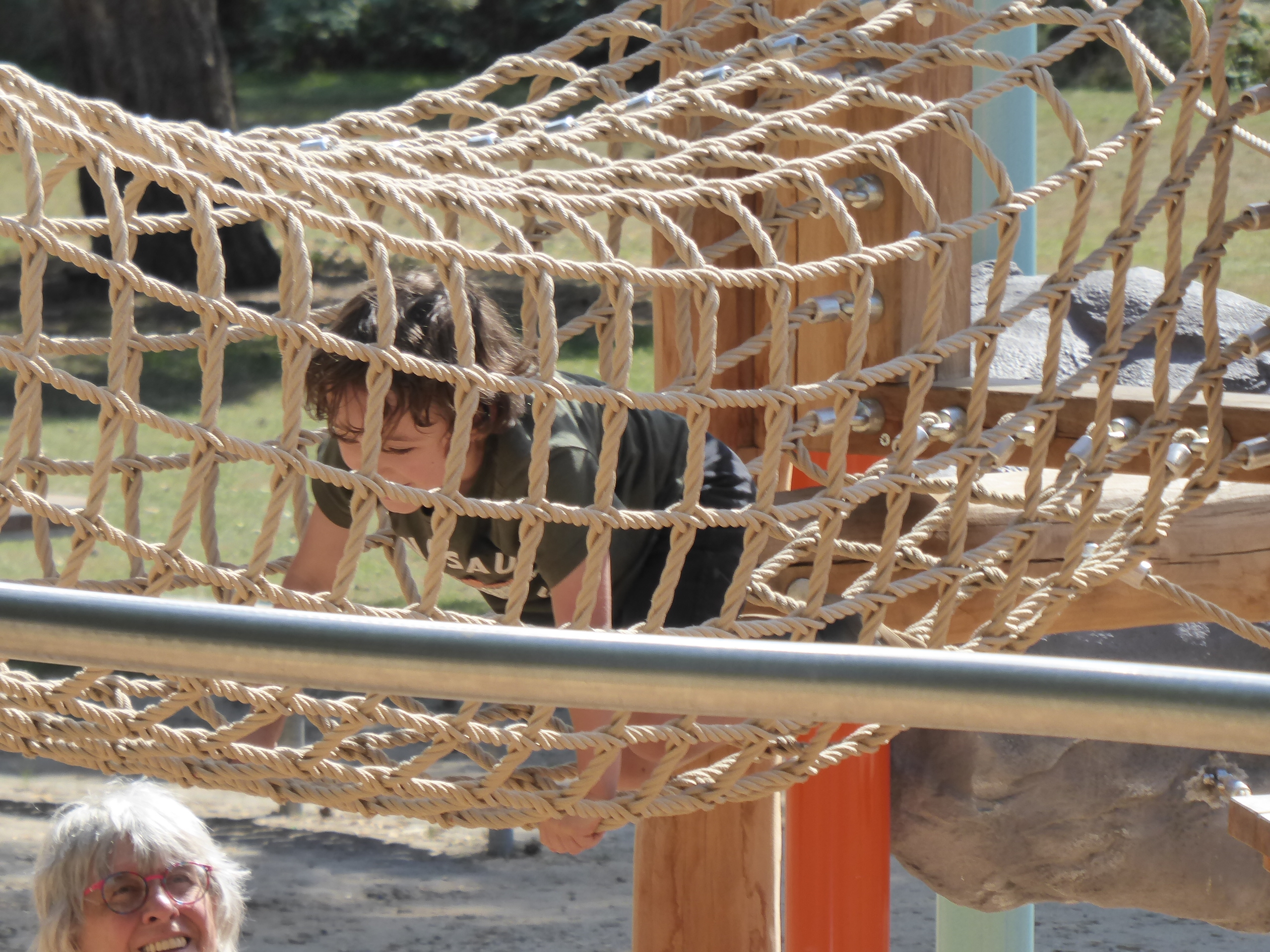 Unten angekommen kannn man die Kletternetzlandschaft erklimmen.
