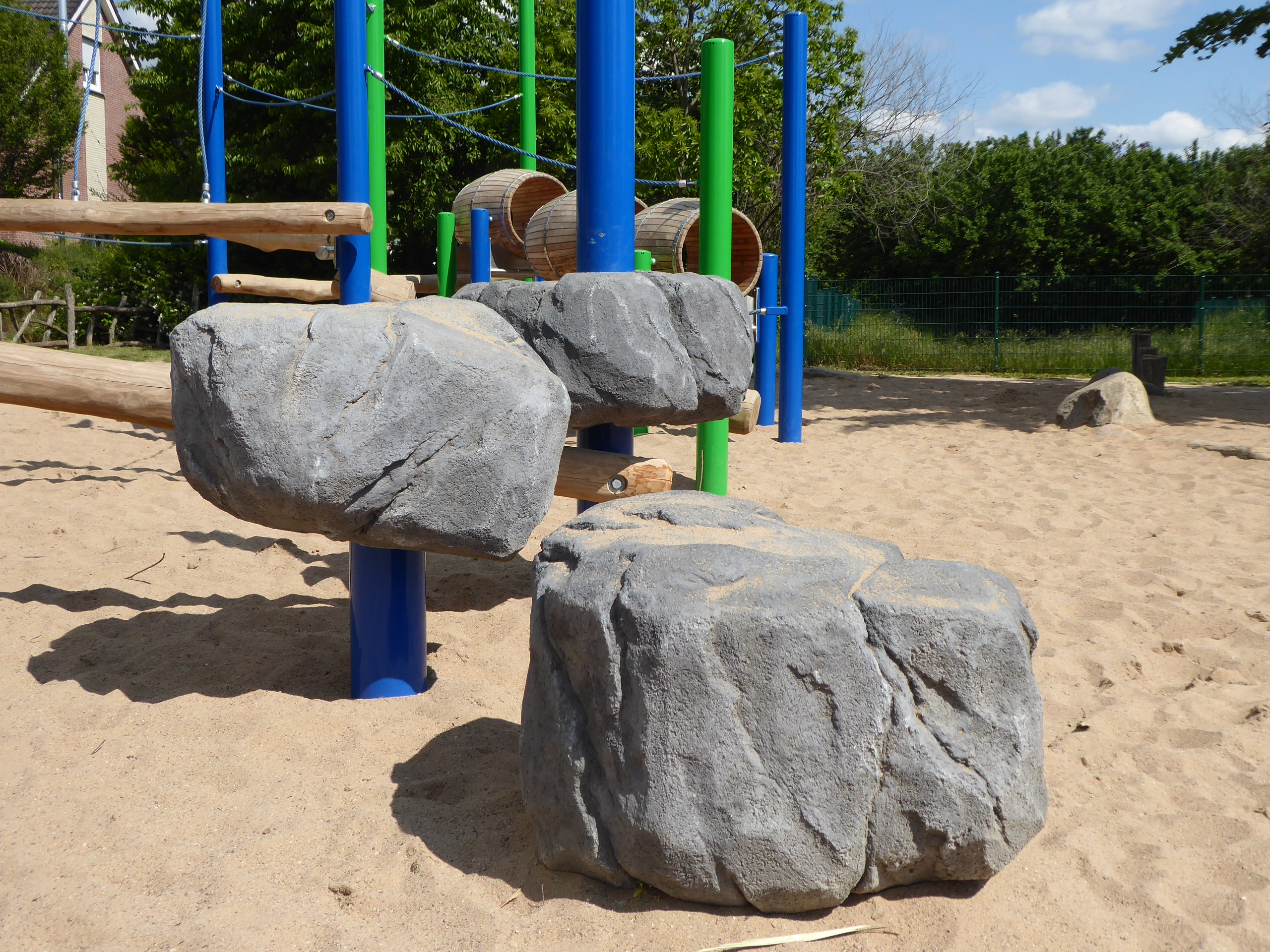 Die Stadt Troisdorf hat sich in diesem Fall für eine grün-blaue Stahlanlage mit schwebenden Felsen als besonderes Highlight entschieden.