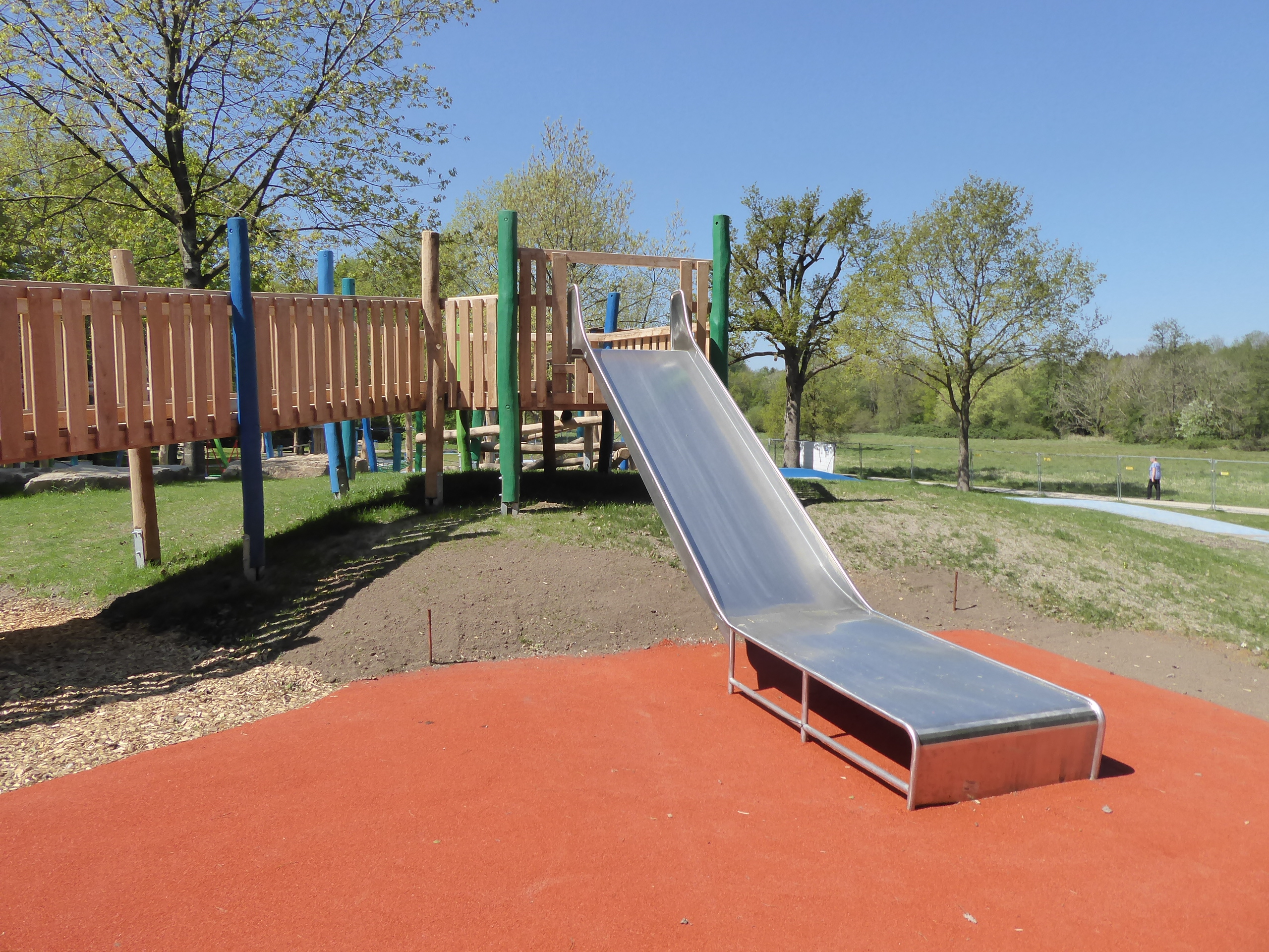 Über das Balanciermikado und div. weitere Kletter- und Balanciermöglichkeiten gelangen die Kinder zu dem großen Rutschenturm, den sie über diverse aufregende Freifallrutsche wieder hinuntersausen können.