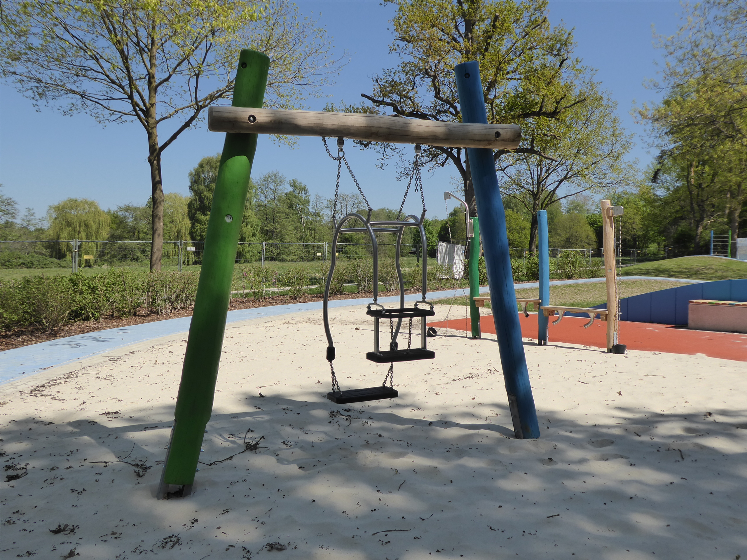 Der Bereich "Rauf und Runter" ist mit zwei Schaukeln ausgestattet worden, die sich direkt neben dem Fitnessberech befinden, an der sich die Spielplatzbesucher an der Fitnesswand versuchen können.