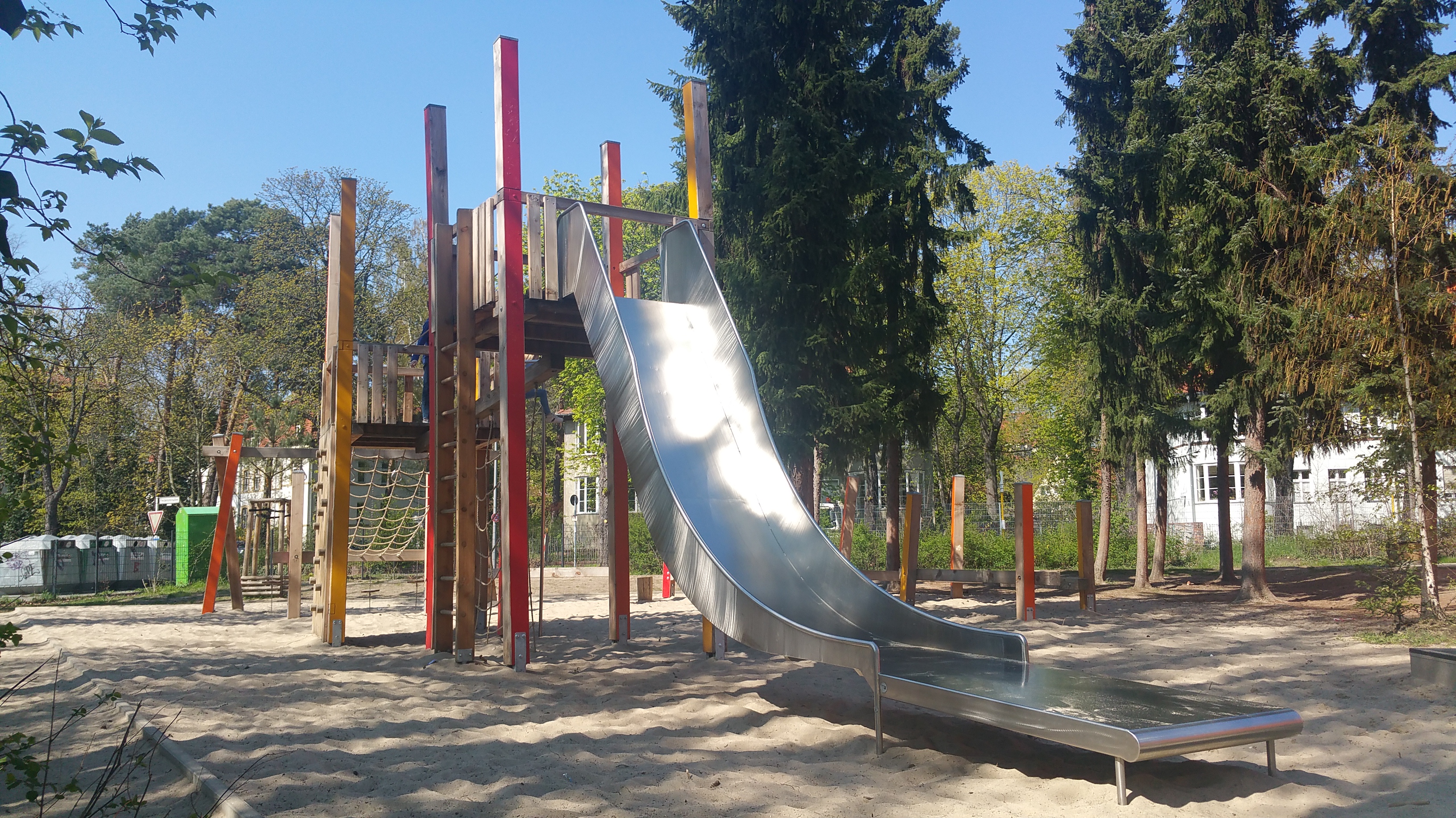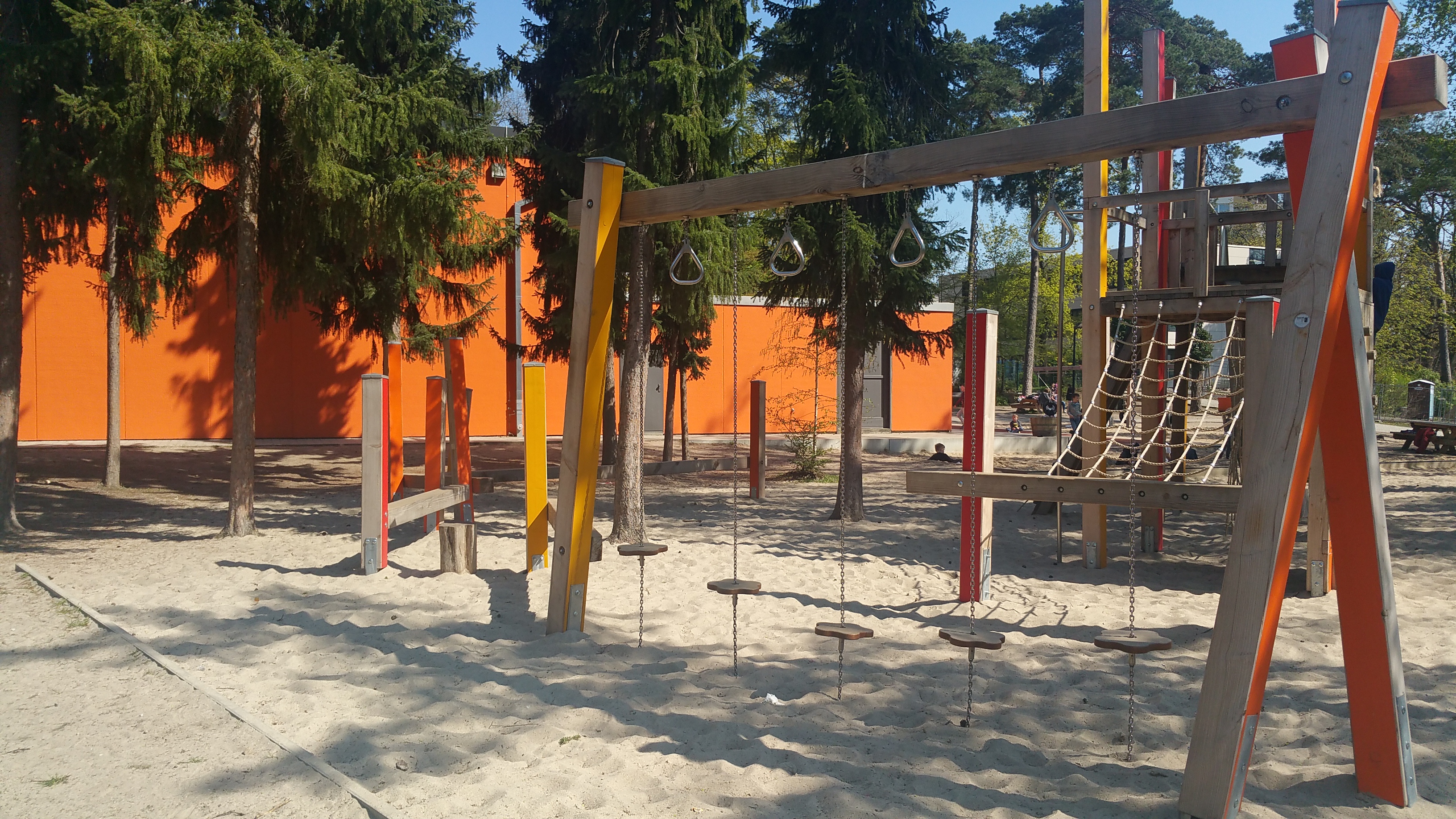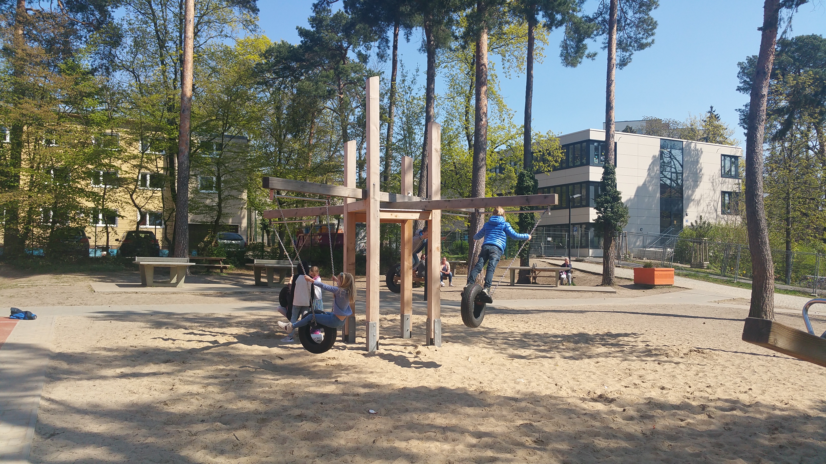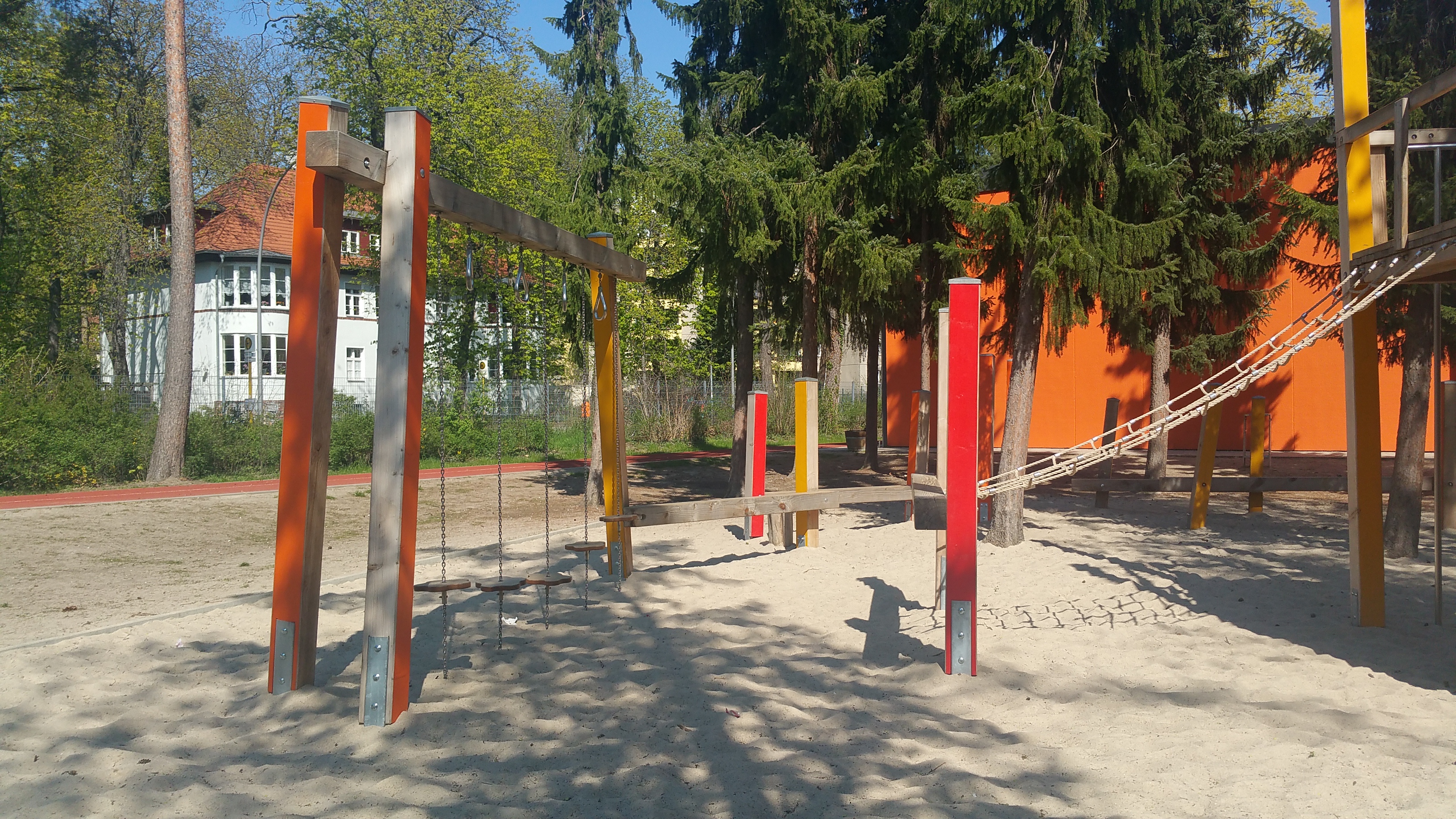 Die Berliner Friedrich-Drake-Grundschule wurde 2014 / 2015 eröffnet und hat jetzt einen besonderen Außenspielbereich mit einem großen Spielparcours und weiteren Spielpunkten erhalten.