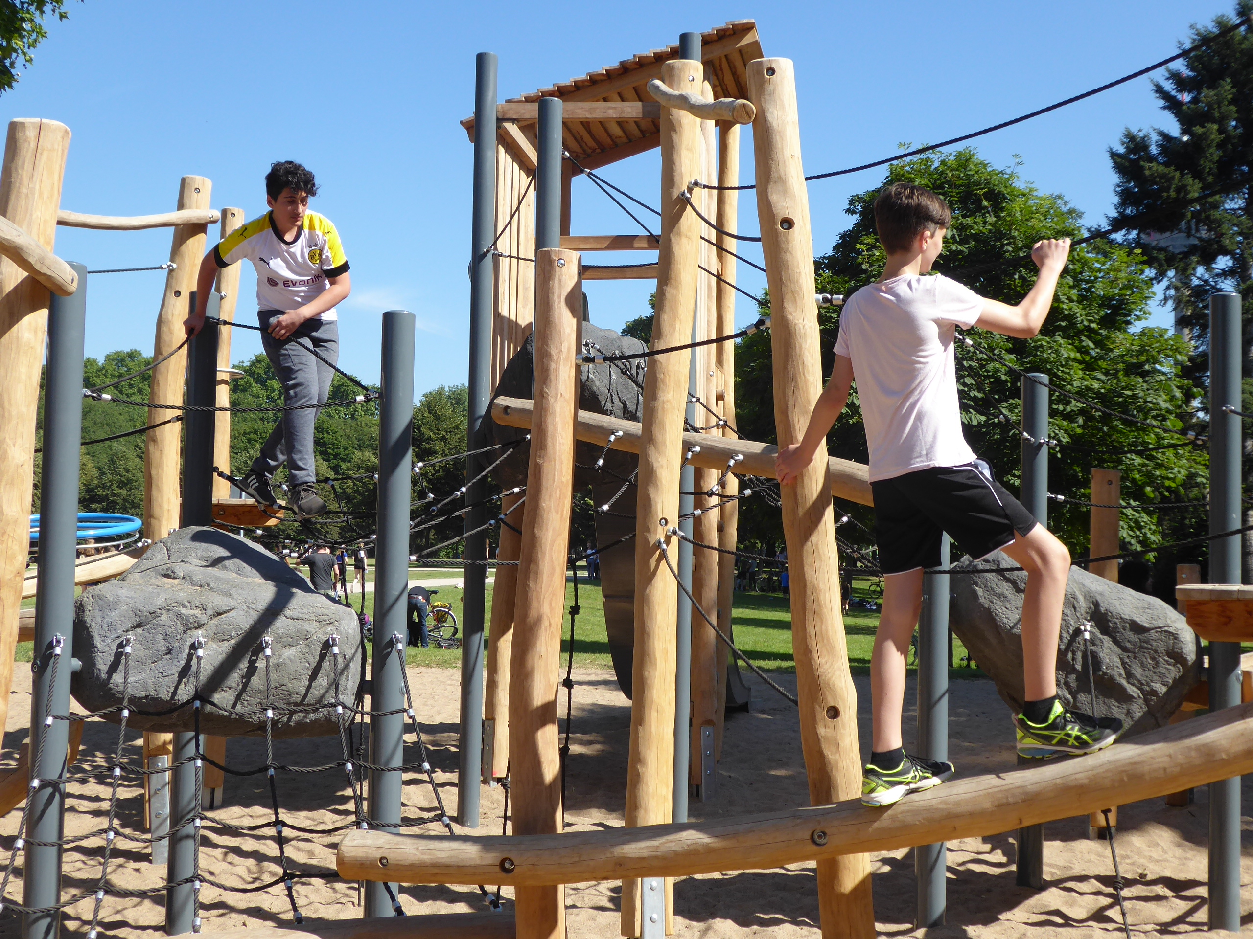 Egal ob über künstliche Felsen, hohe Mikadostangen oder niedrige Robinien-Balancierparcourse, bei uns ist für jeden etwas dabei!
