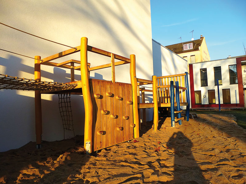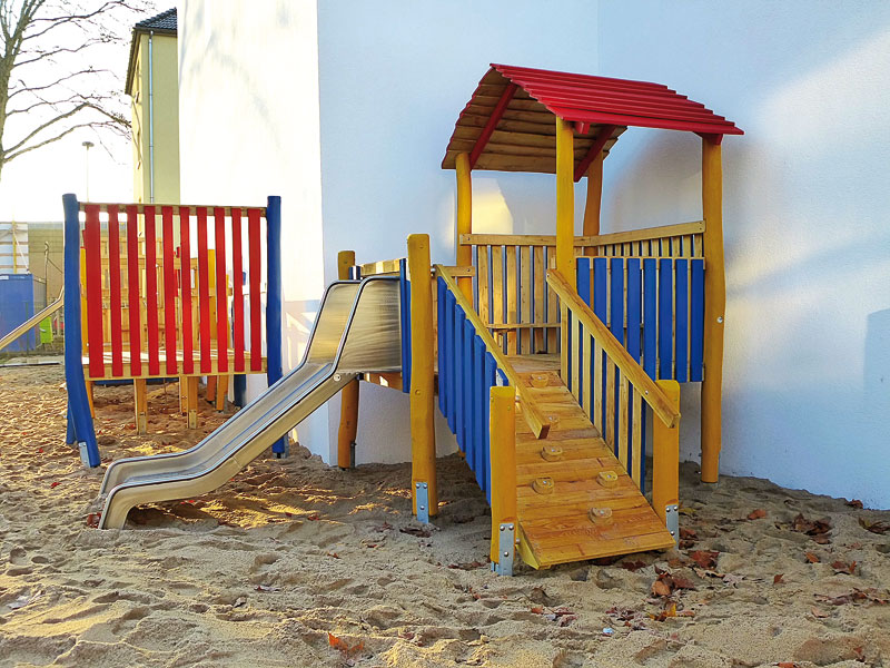 Everything is really colorful here: the children of the daycare center on the Franz-Bielefeld-Strasse in Gelsenkirchen can really “let off steam” in their new playscape.