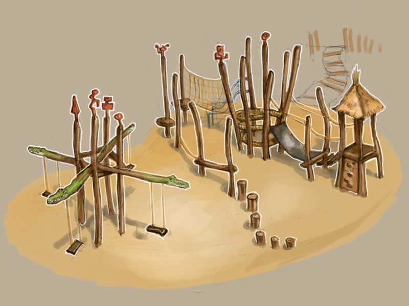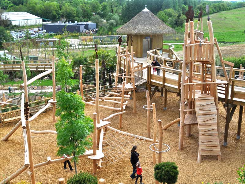 Experience the African bush, in the playscape at the Zoo de Beauval.
