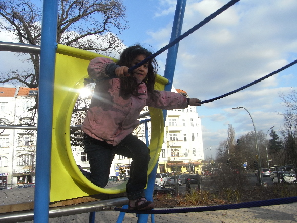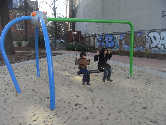 The theme of the playground in the Königin-Elisabeth-Strasse is "SPACE TRAVEL". The theme has been very creatively executed and achieved by using steel, thanks to its moldability and simultaneous load-bearing capacity.