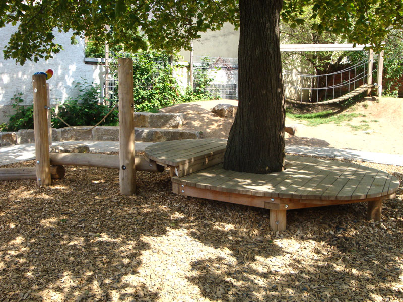 Running around, climbing, playing in the sand or just simply taking a rest, anything is possible in the huge, 800 square meter, outdoor play area of the Kinderhaus in Giessen.