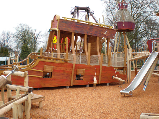 A "pirate's playground" with integrated decorative commercial buildings, was designed for the amusement park Drievliet, in the Dutch city of The Hague.