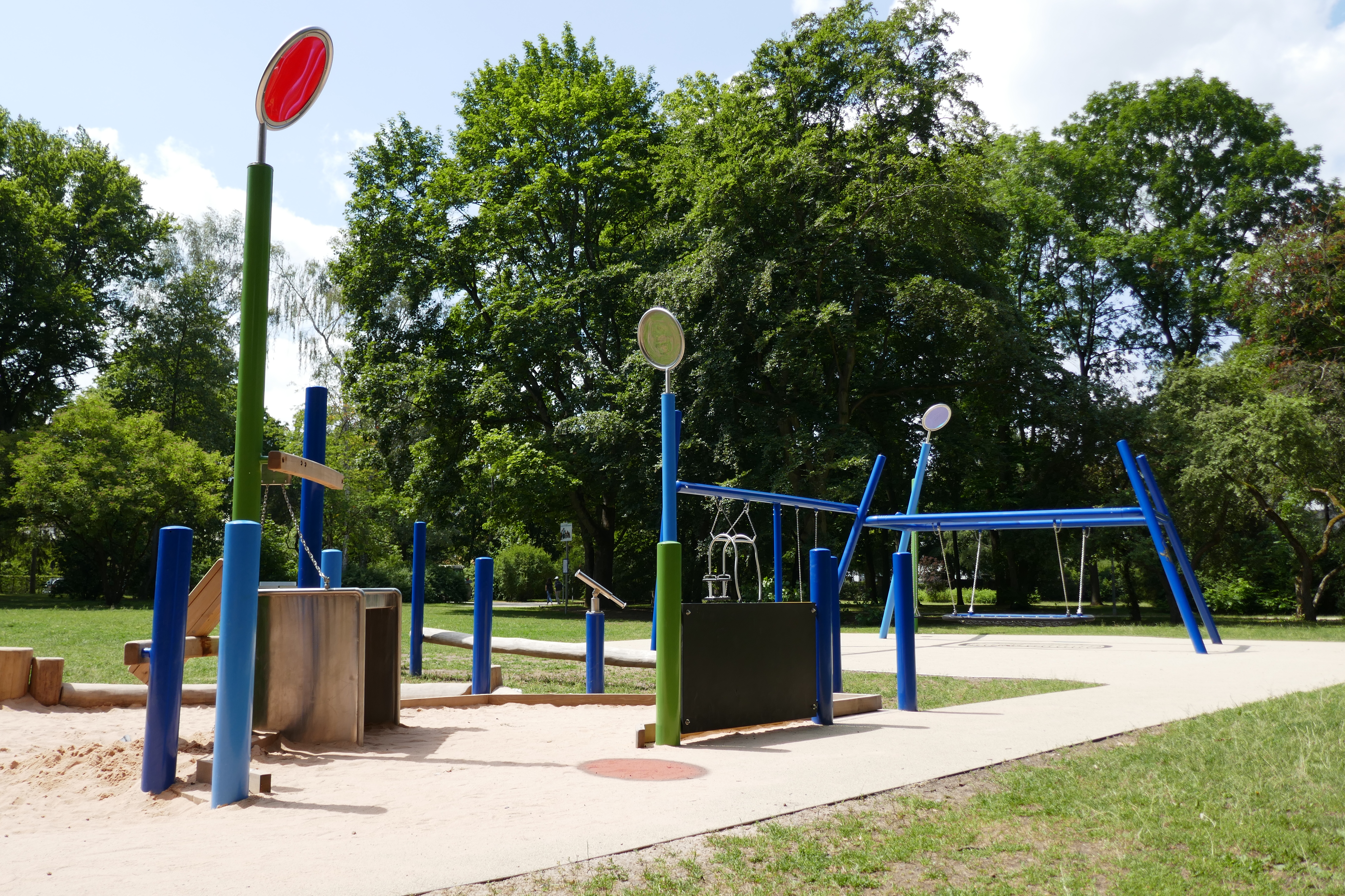 Der integrative Spielpunkt lädt auch Besucher im Rollstuhl zum Matschen und Mitspielen ein.
