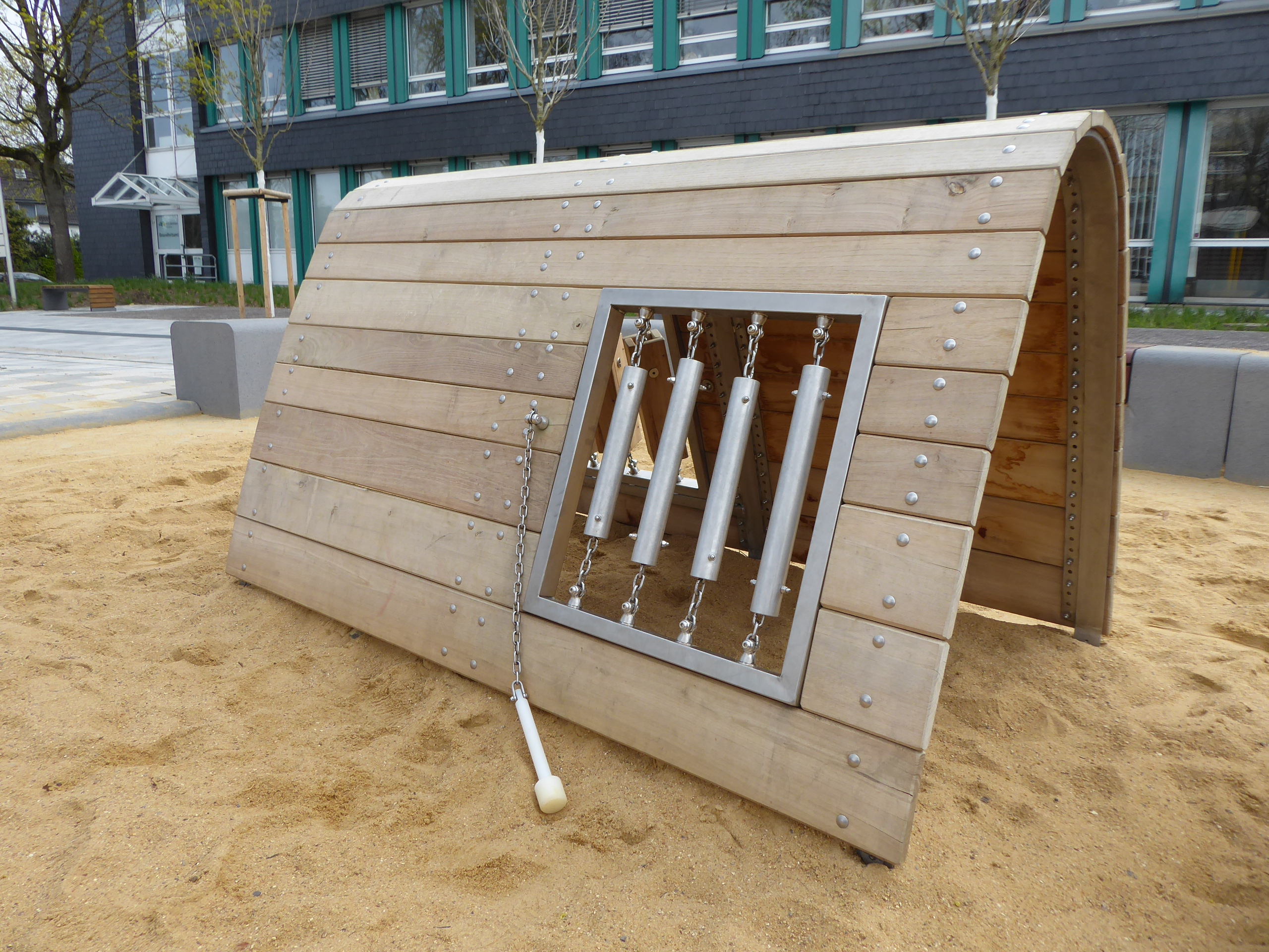 Im zweiten Tunnel lauschen wir den Geräuschen der Klangrohre und Klanghölzer. Wer möchte, kann sich musikalisch ausprobieren oder einfach den verschiedensten Tönen lauschen.