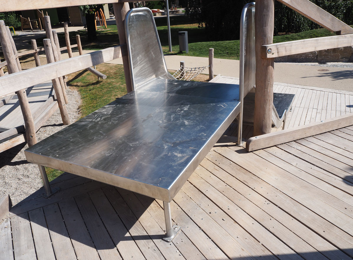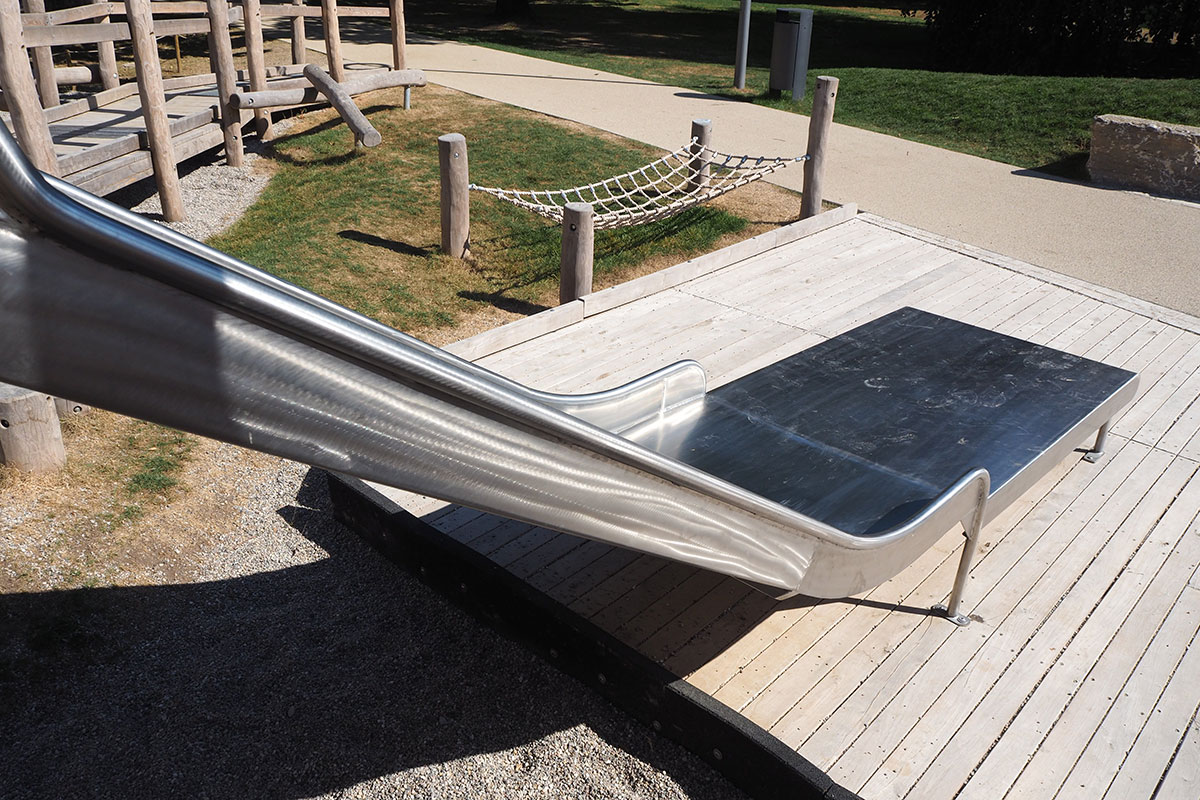 Röhrenrutsche kann erklommen werden, bevor auf dem Platz weitere