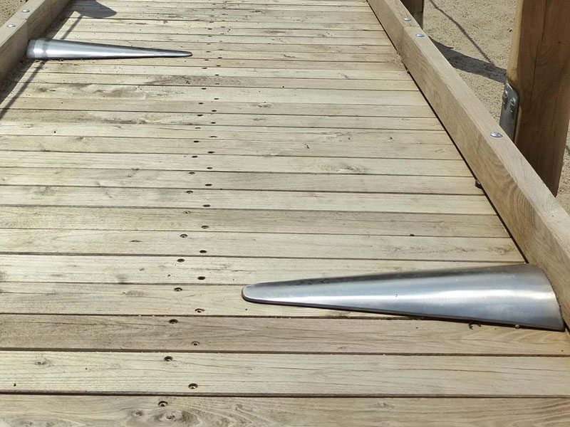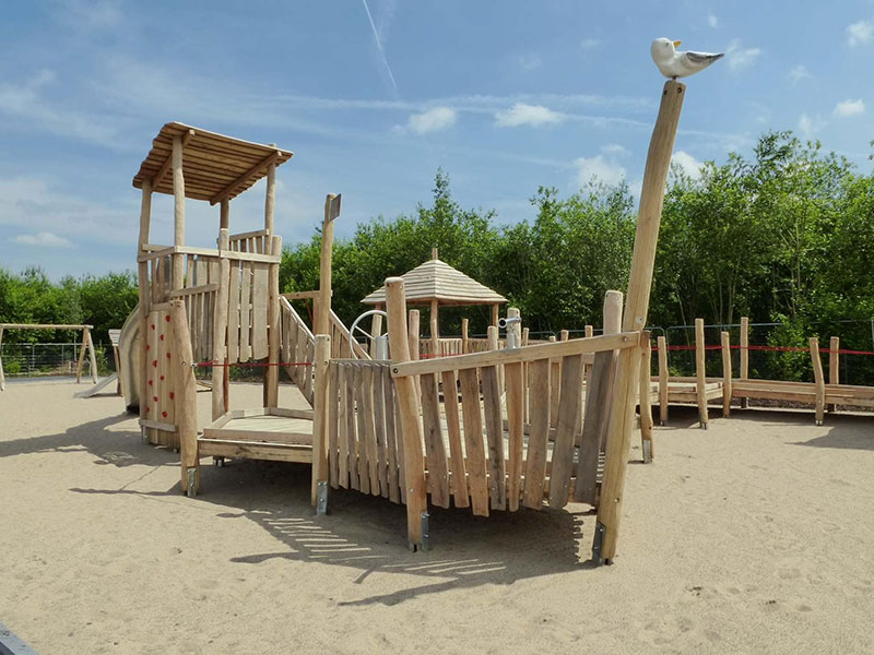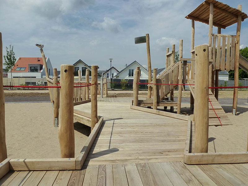 Der Kindheitstraum schlechthin: einmal auf einem eigenen Holzschiff fahren, toben und spielen! Dieser Traum geht jetzt für Kinder mit und ohne Behinderung auf dem Spielplatz "Sürther Feld" in Köln in Erfüllung. Eines neues integratives Spielschiff schmückt den Platz, es kann entweder per Seilrampe, Kletterwand oder über den angeschlossenen Hafensteg bestiegen werden. Auf dem Schiff kann man sich als echter Kapitän fühlen, entweder beim Steuern des Stahlruders oder oben auf dem Ausguck-Turm. Über eine Rutsche kann das Schiff bei Seenot schnellstens verlassen werden. Viele weitere Entdeckungen lassen sich jedoch auf dem großzügigen Holz-Hafenpier erspähen, über ein System von Stegen kann man einen spannenden Rundgang machen. Ein spezieller Kai ermöglicht dabei das Beladen der Schiffe per Sandeimer und Schüttvorrichtungen. Die gesamte Anlage wurde für Kinder mit Behinderung oder Rollstuhl entwickelt und ist komplett barrierefrei. Gesäumt wird der Hafen von einer Doppelschaukel, einer Wippe und einer Seilbahn mit Rampen. Echtes Hafenflair mitten in der Stadt, dann mal „Leinen los!“.