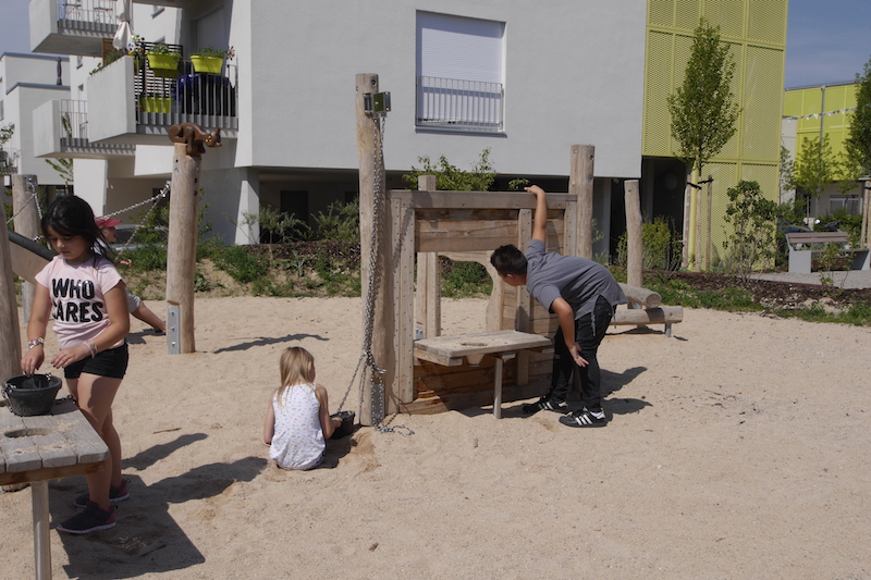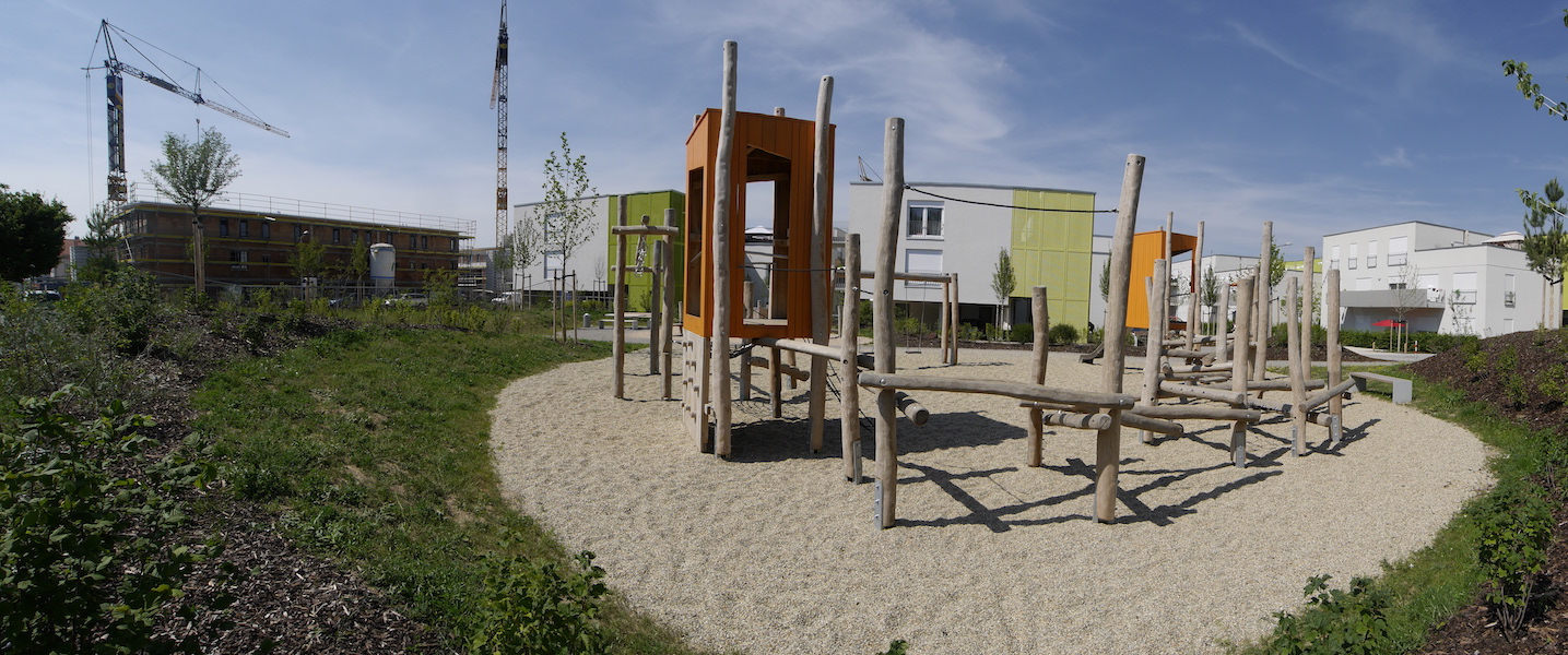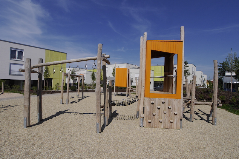 Ein Spielplatz für alle Altersklasse, angepasst an das gradlinige, neugebaute Umfeld mit vielen Möglichkeiten zum Klettern_ dies waren einige der Wünsche in der Ausschreibung für den Spielplatz des Generationenparks Königsbrunn.