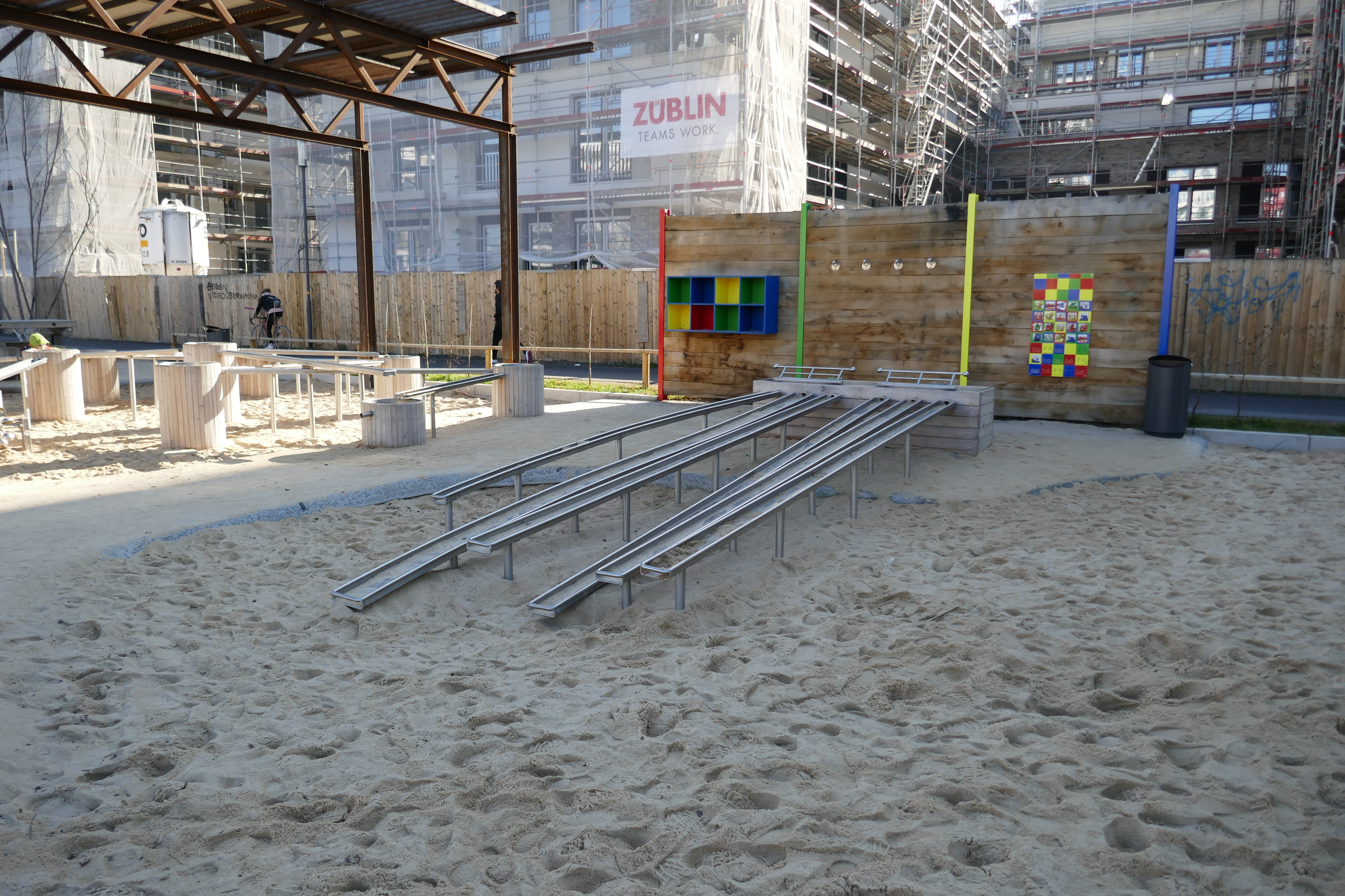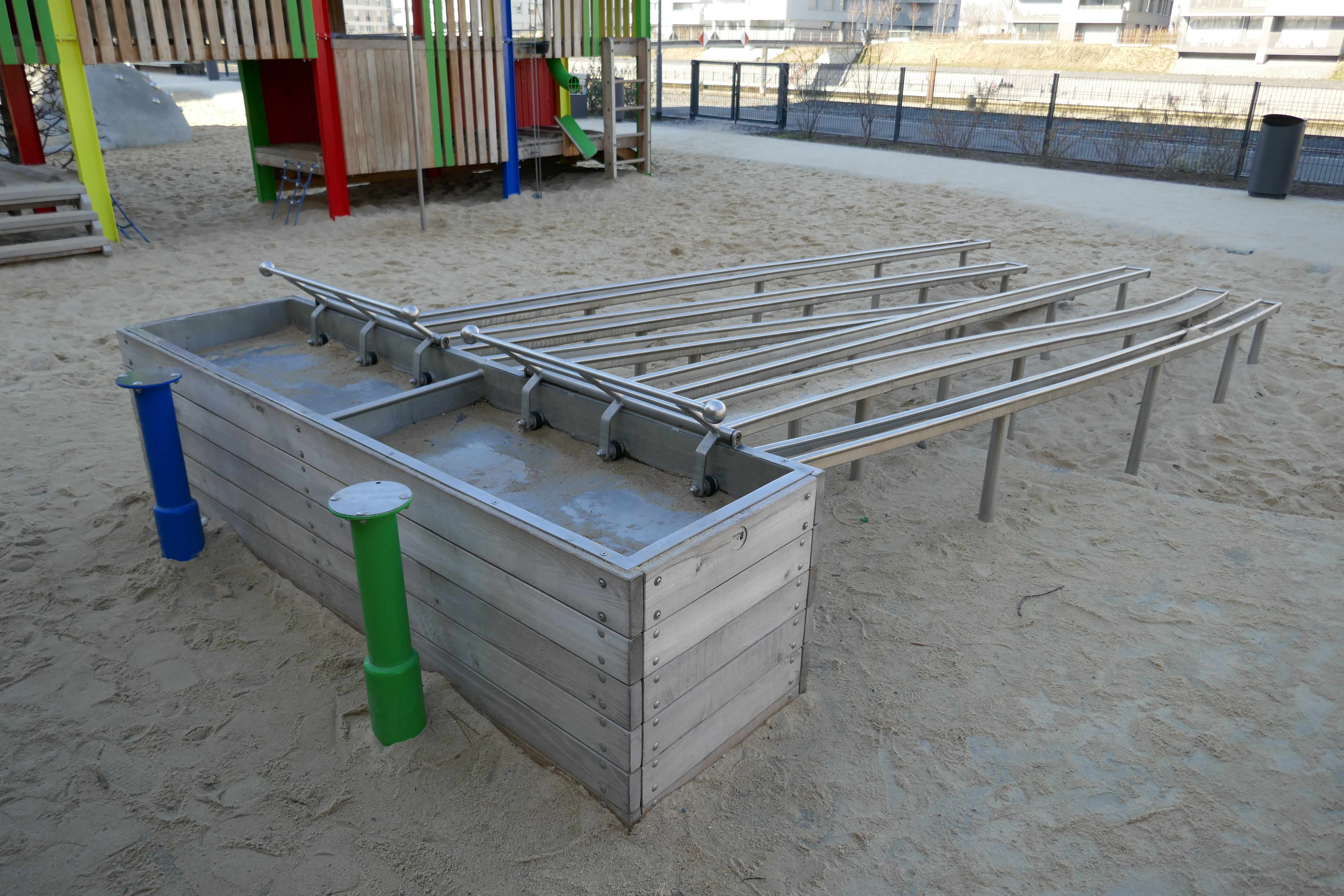 Mit dem großen Wasserspielplatz und der Experimentieranlage haben die Kinder die Möglichkeit, passend zum Hafen, ganz nah mit dem Element Wasser in Berührung zu kommen, vieles auszuprobieren und sich besonders bei wärmeren Temperaturen eine kleine Abkühlung zu schaffen.