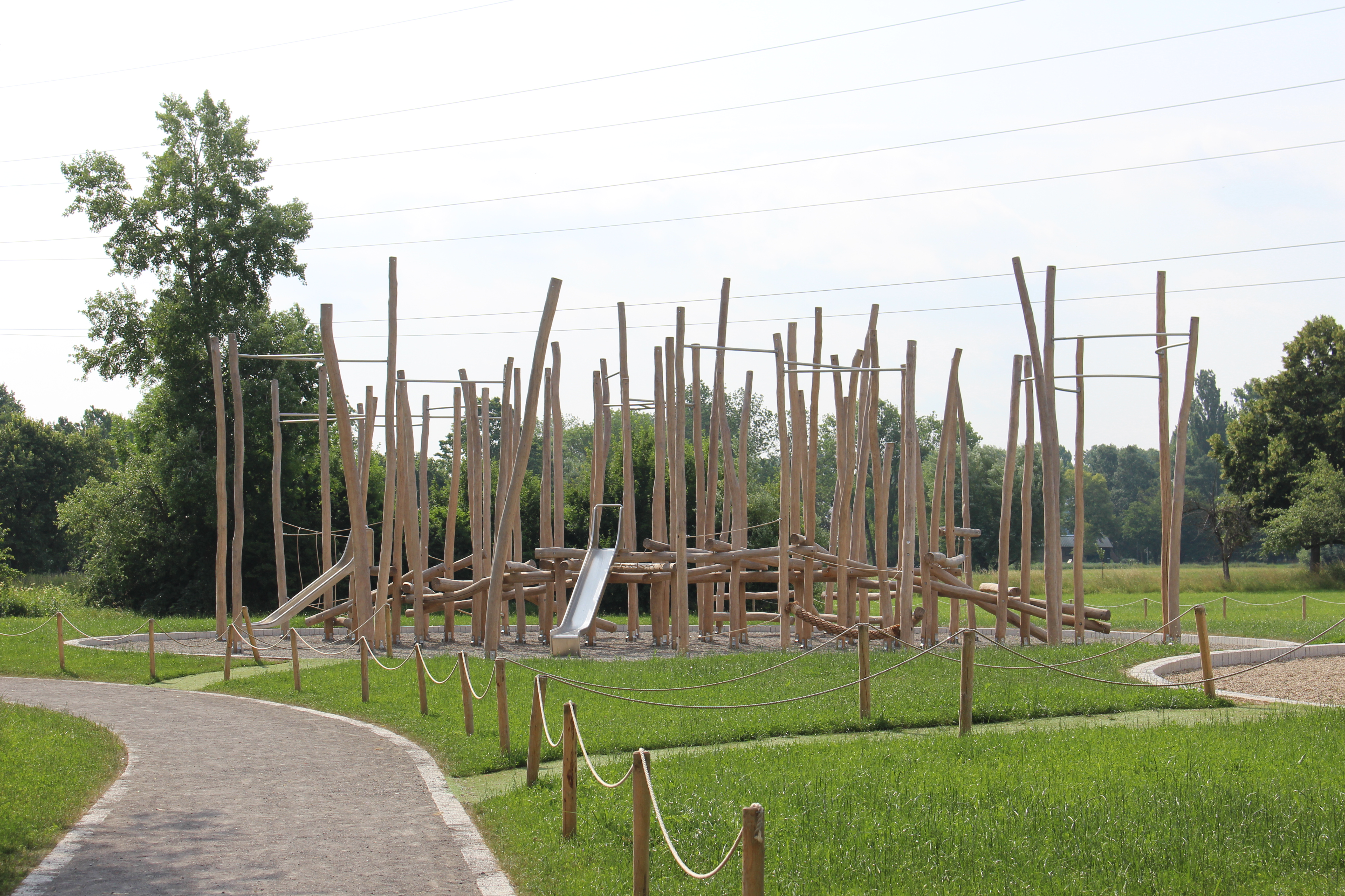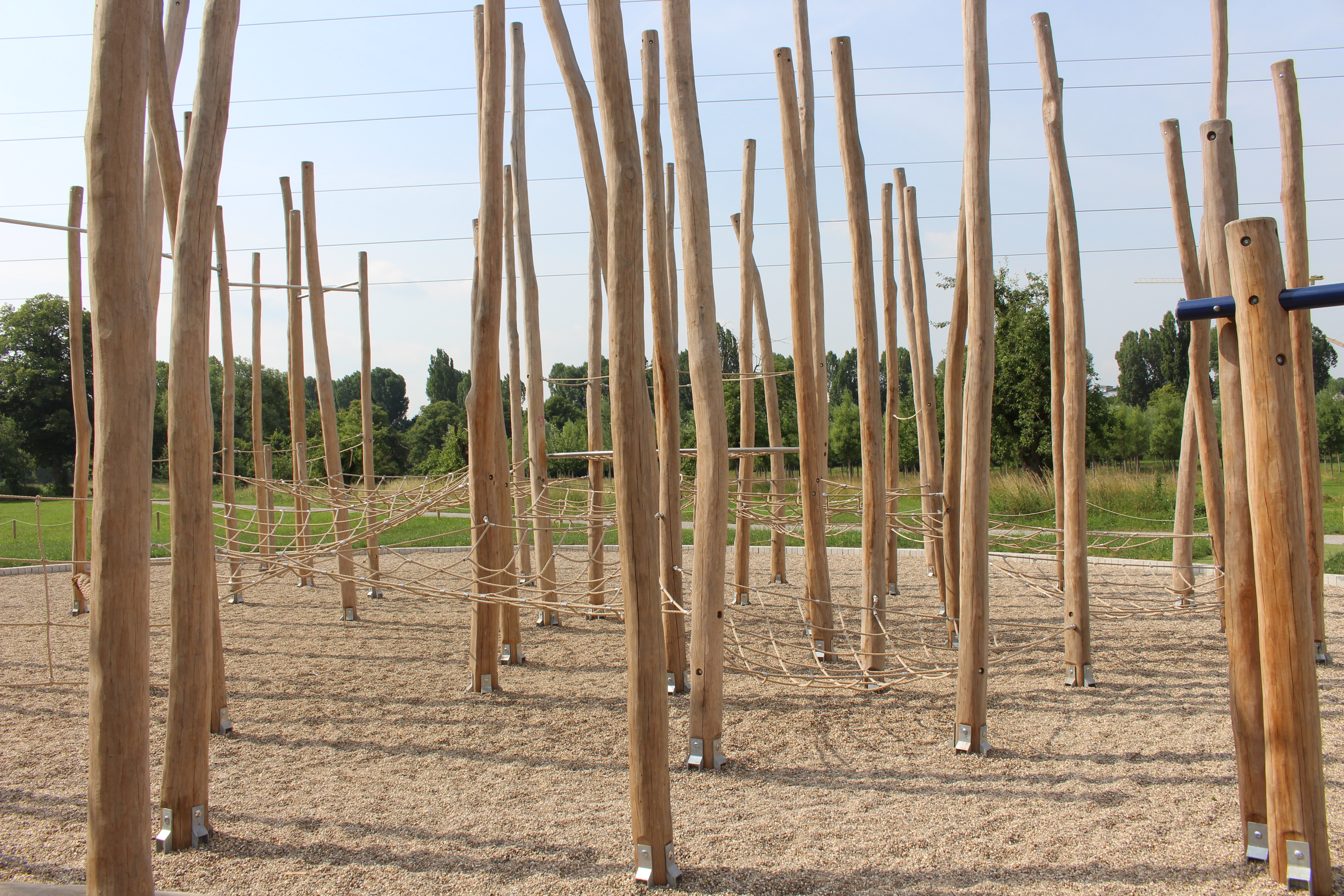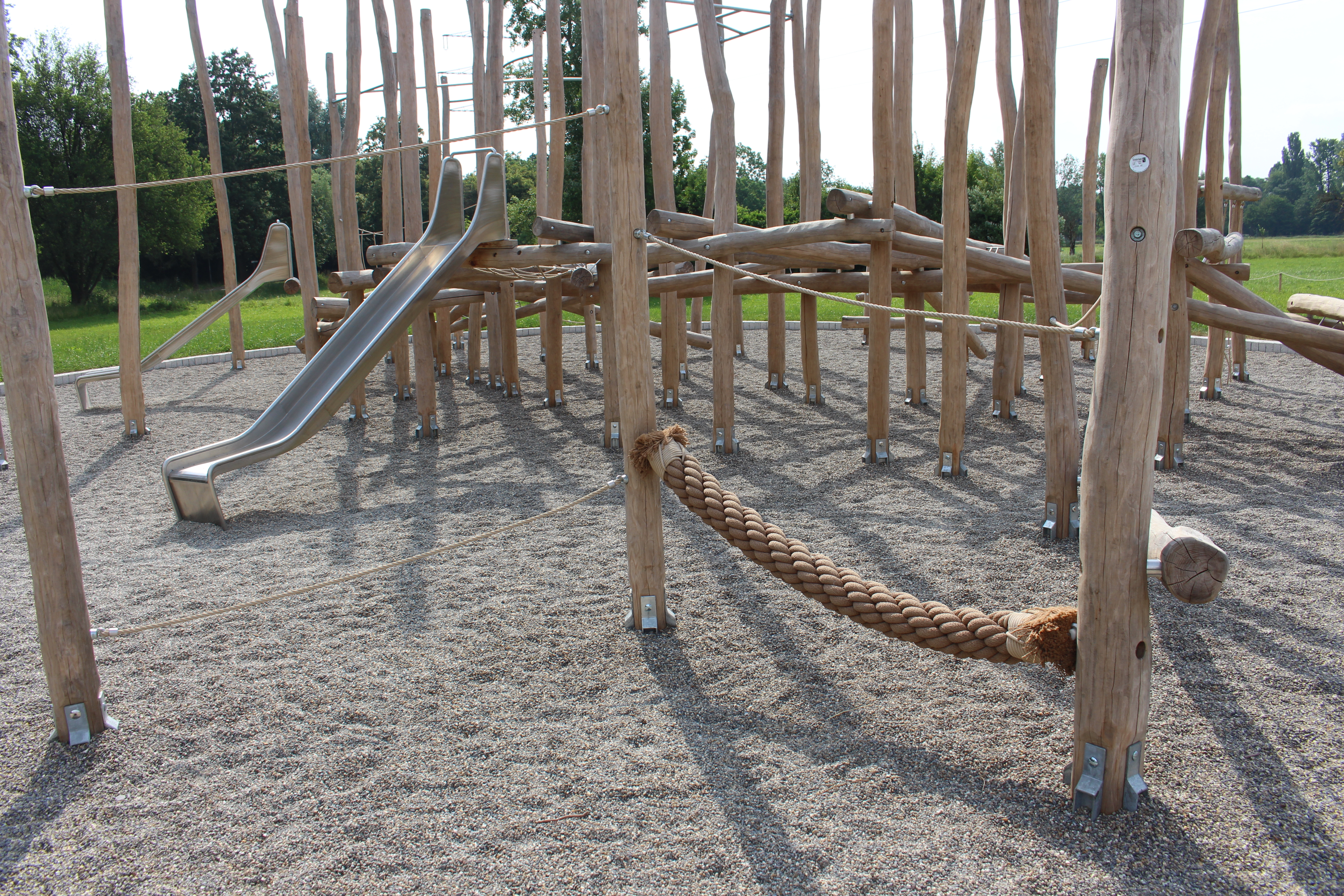Die überdurchschnittlich große Kletter- und Netzinsel aus Robinienholz besteht aus Klettermikados, Balancierparcours und allerlei anderer Kletter- und Balanciermöglichkeiten. Beim Klettern müssen die Besucher verschiedene Höhen und Oberflächen überwinden, um zum Schluss über die Rutsche hinab zu sausen.