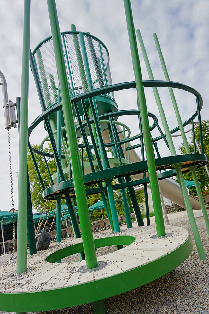 Ergänzt wird der Erlebnisspielplatz durch Recks in unterschiedlichen Größen sowie Sitz- und Aussichtsplateaus.