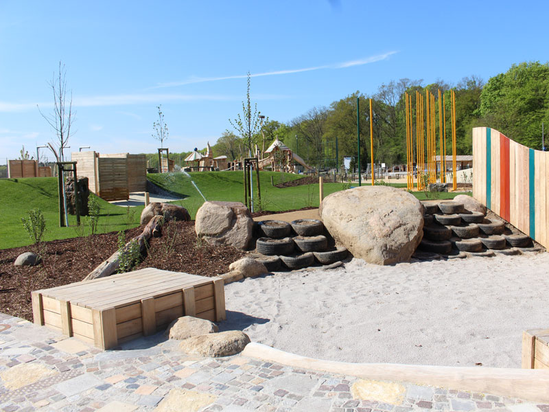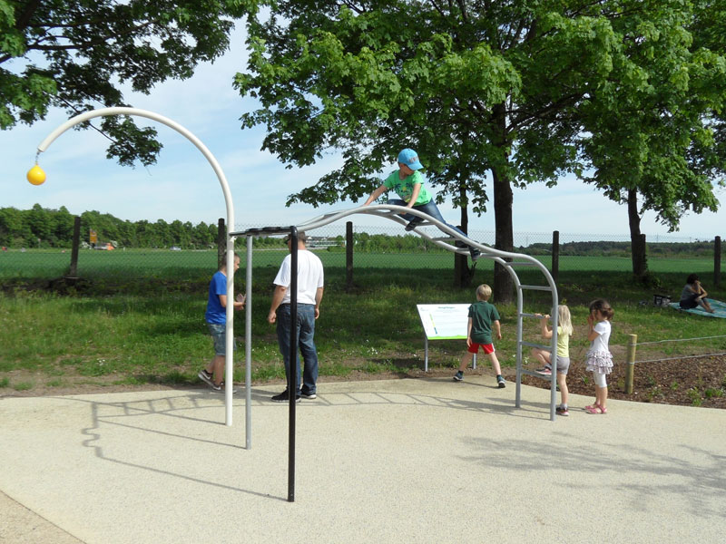 Das besondere an dieser Anlage ist, dass sie generationenübergreifend konzipiert wurde und für nahezu jede Altersgruppe Bewegung und Spaß bereithält. So gibt es einen Bereich für die ganz Kleinen, der besonders die Sinneswahrnehmungen fördert, einen Platz für Schulkinder bis 12 Jahre zum Toben, Hangeln und Balancieren und einen Bewegungsplatz für Jugendliche mit sportlichen Aktionsmöglichkeiten sowie Raum zum Chillen. Des Weiteren existiert ein Bewegungsparcours für Jedermann, der nach sportwissenschaftlichem Konzept Bewegung, Ausdauer und Koordination fördert. Er ist für alle Altersklassen in verschiedenen Schwierigkeitsstufen vorgesehen.