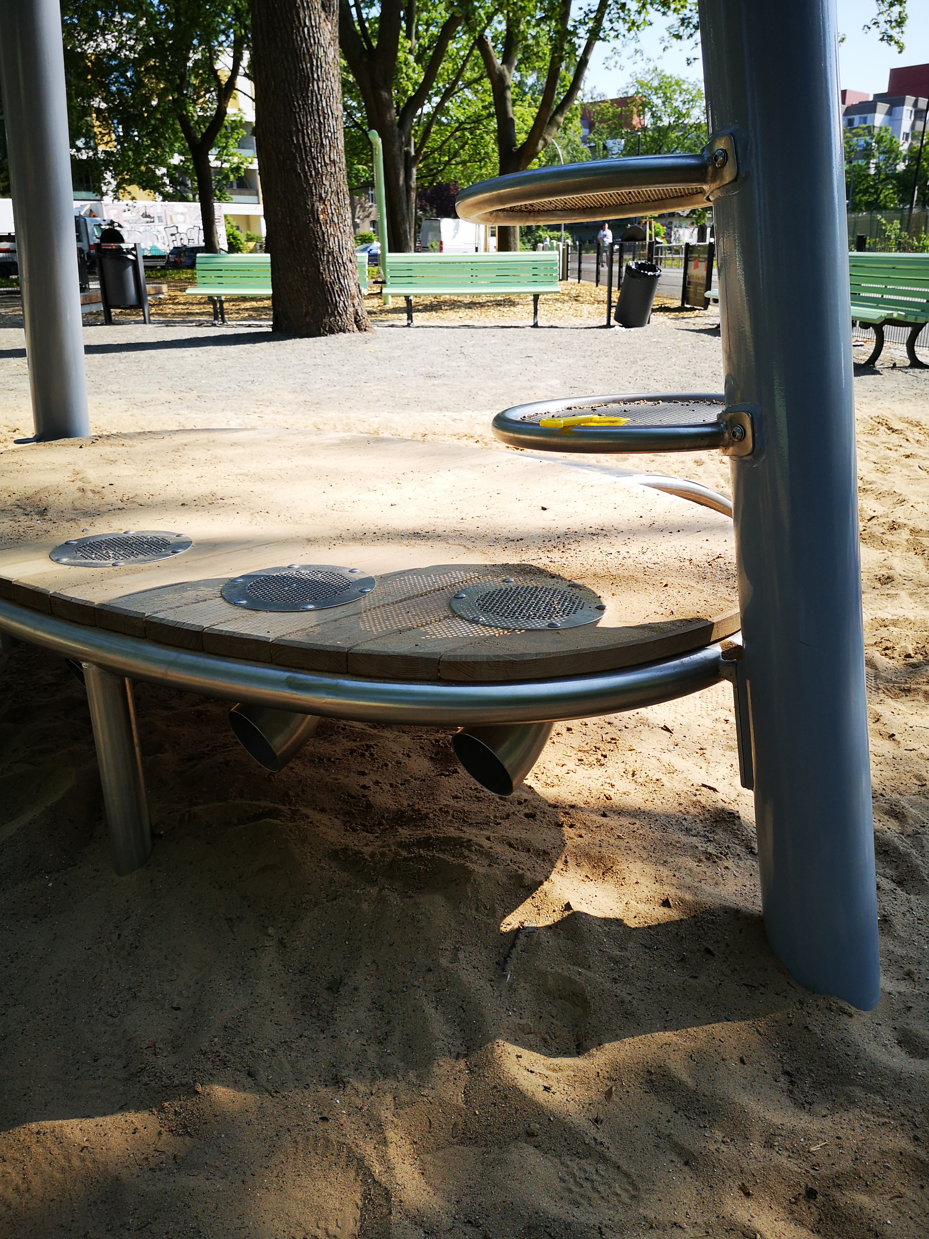 Die Formen und Farben für dieses Bauvorhaben wurden vorab in einem Bürgerworkshop mit Anwohnern und Co. besprochen und das Motto "einen Bogen schlagen" ist von den Kindern und Erwachsenen gut angenommen worden. Diesen Leitspruch haben wir dann bei allen Spielgeräten eingebracht.
