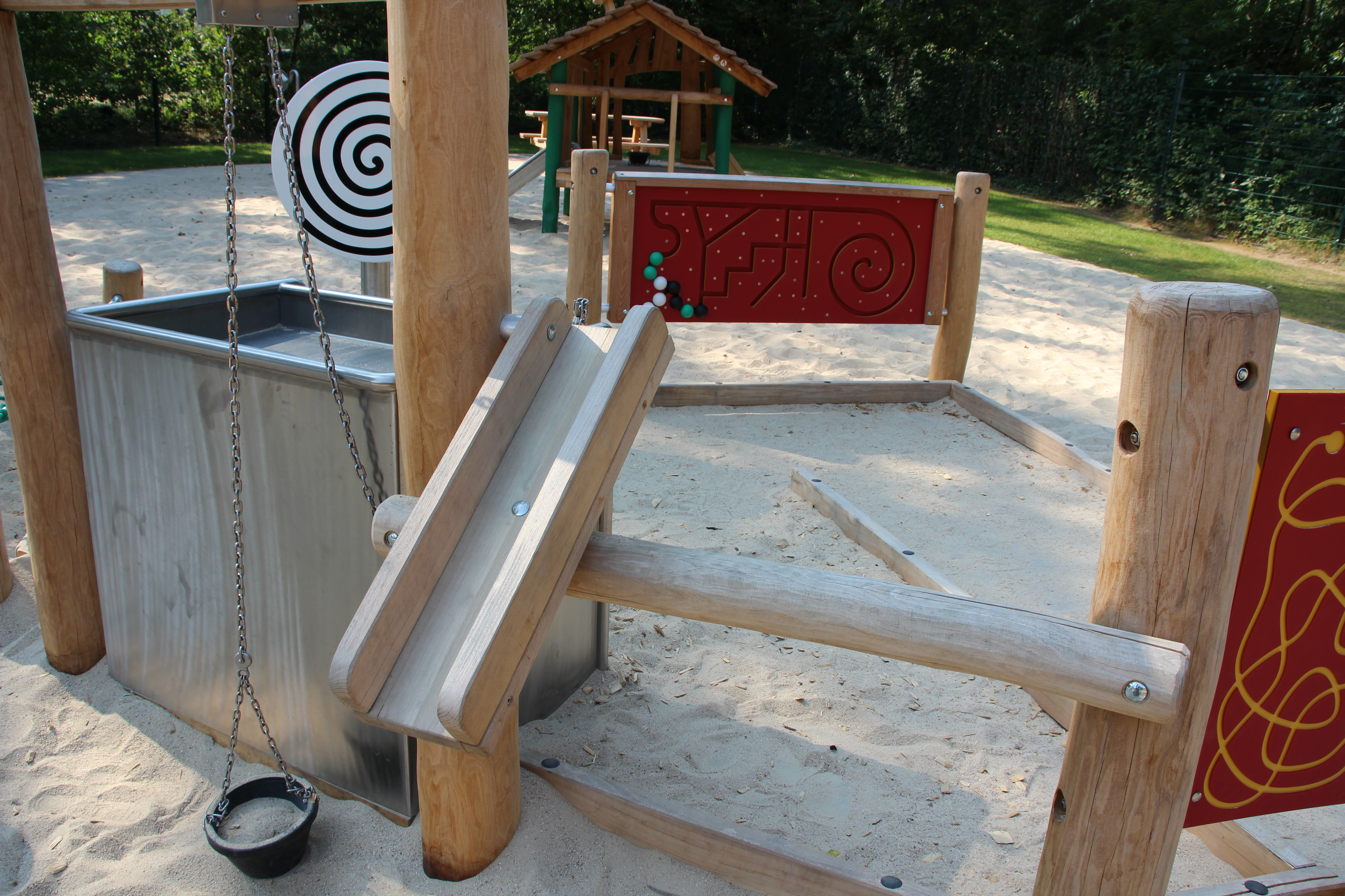 Neben einer Ballspielfläche mit unseren Mini-Bolzplatztoren sowie zahlreichen Spielmöglichkeiten sowohl für jüngere als auch ältere Kinder haben wir einige Besonderheiten im Hinblick auf die Barrierefreiheit eingebracht.