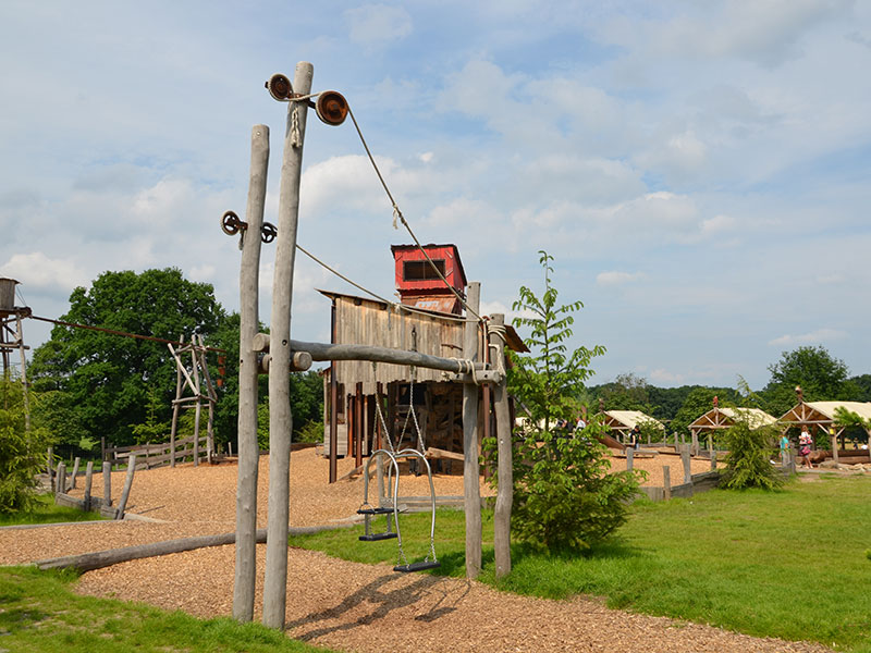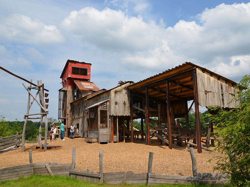 Ein komplettes Sägewerk mit angeschlossener Goldmine als Spieleparadies im Wildpark Reken