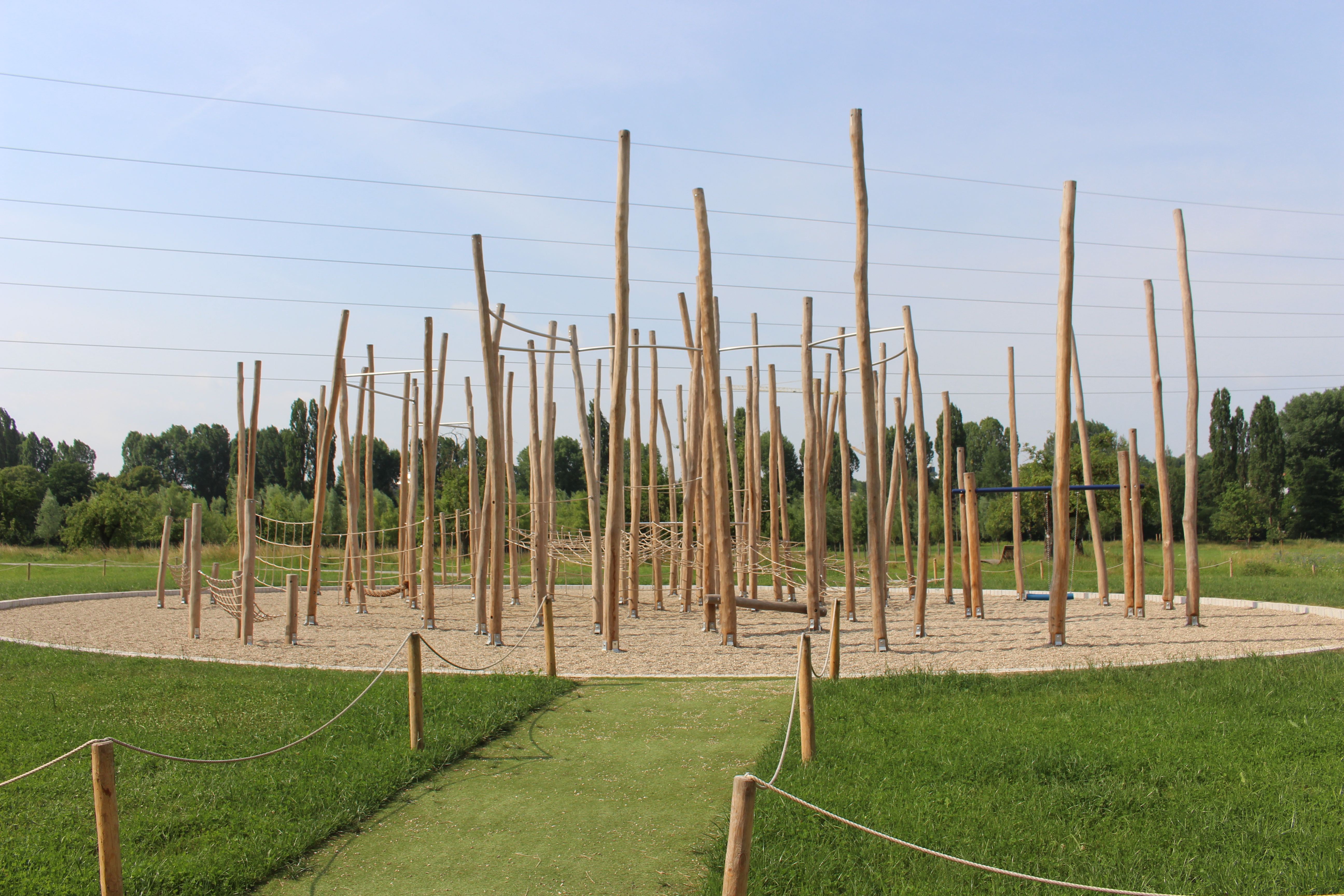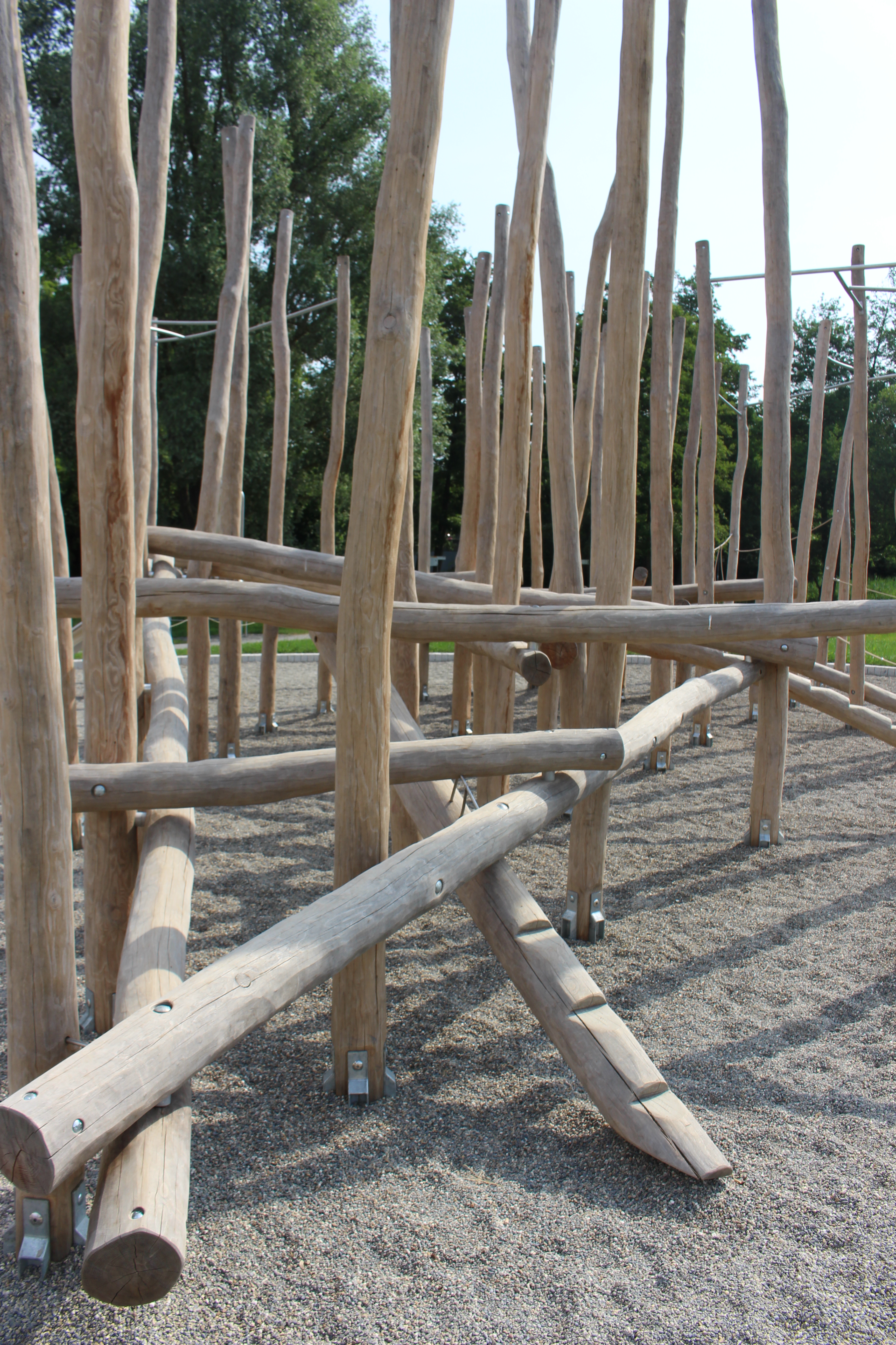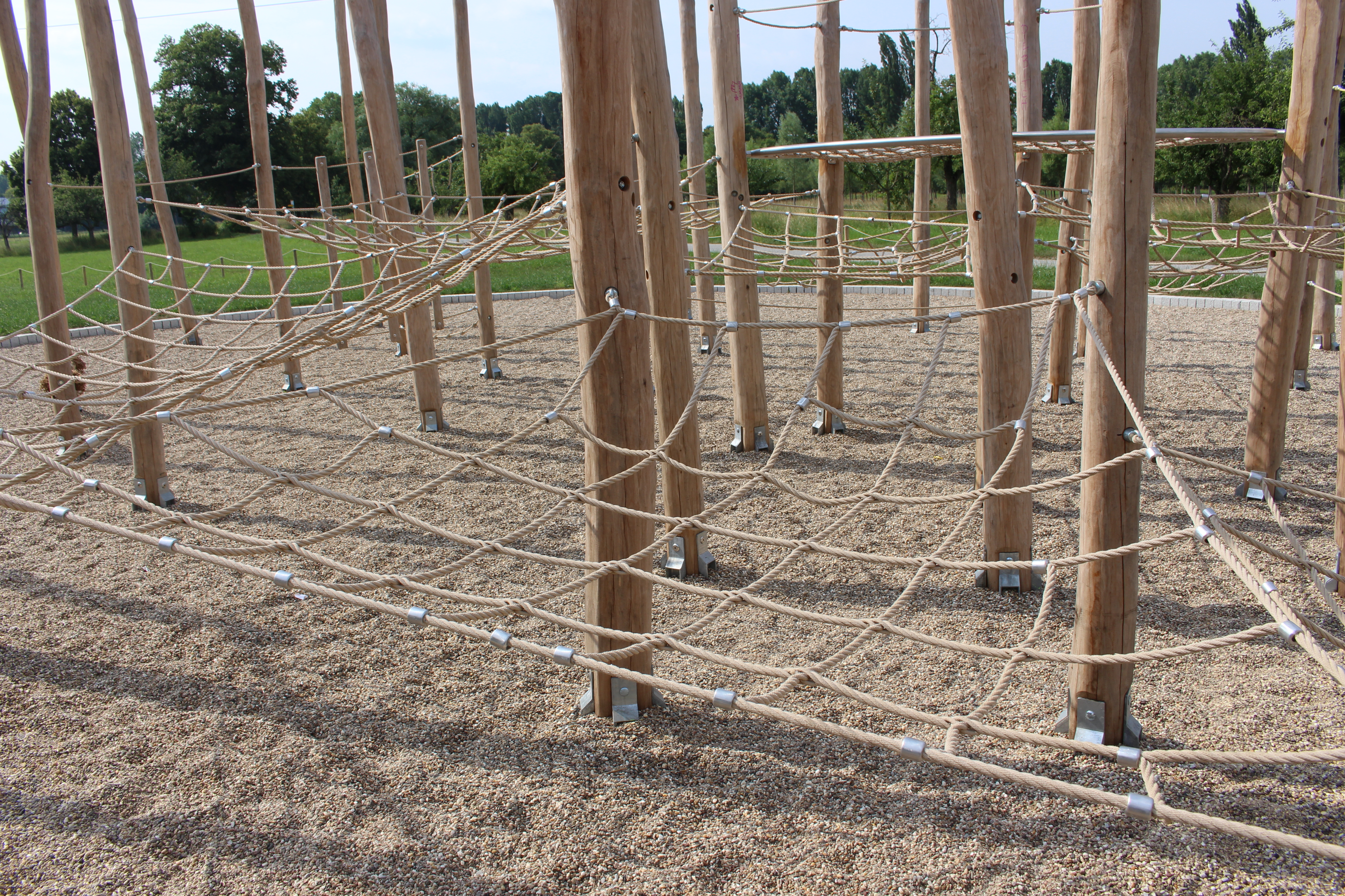 Die überdurchschnittlich große Kletter- und Netzinsel aus Robinienholz besteht aus Klettermikados, Balancierparcours und allerlei anderer Kletter- und Balanciermöglichkeiten. Beim Klettern müssen die Besucher verschiedene Höhen und Oberflächen überwinden, um zum Schluss über die Rutsche hinab zu sausen.