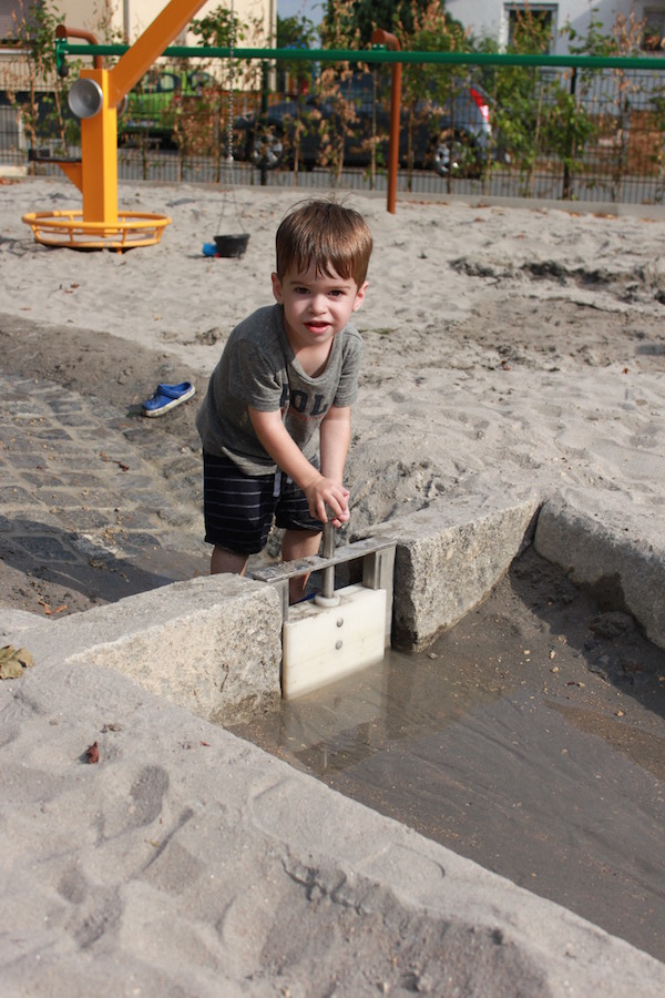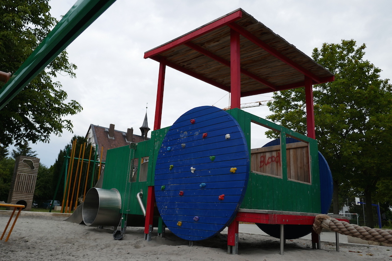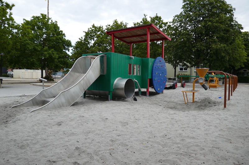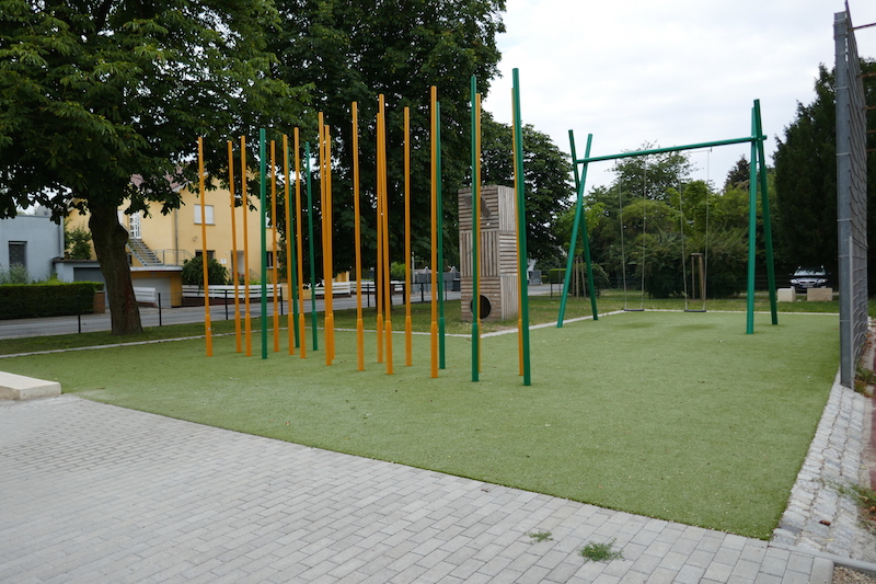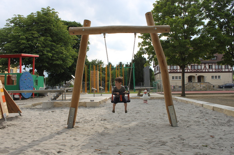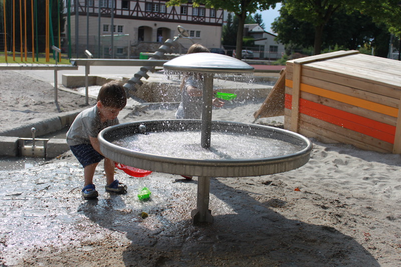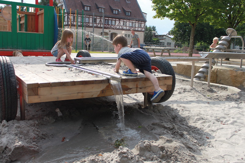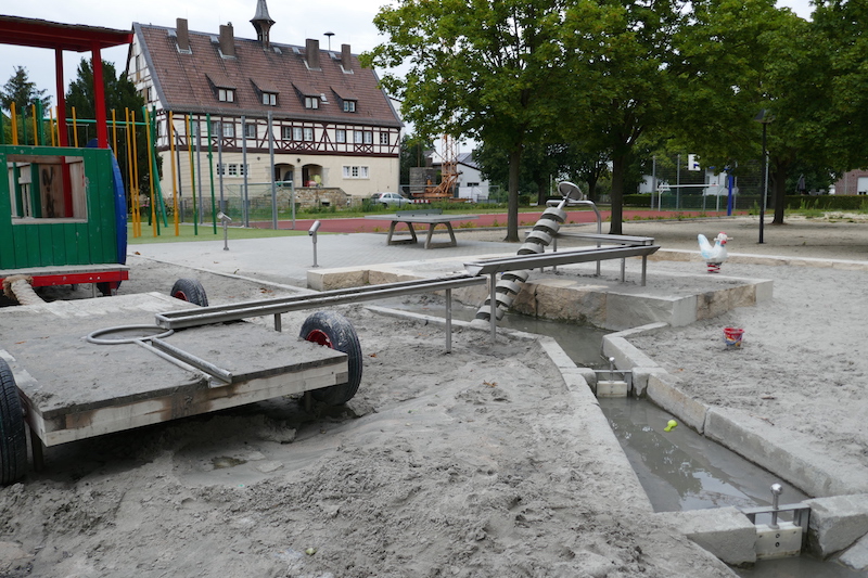 In Gernsheim ist ein neuer Spielplatz entstanden, der Mitspieler aller Altersgruppen und "Spieltypen" abholt: Vom Wasserspielbereich, der auch zum Rollenspiel verleitet, über eine Sandlorenbahn, die gerade von Älteren Kindern gut bespielt werden kann, hin zum hohen Kletterturm und Mikadowald für Bewegungsfreudige. Das Schaukelangebot deckt vom Kleinkind bis zu den Großen auch alles ab.