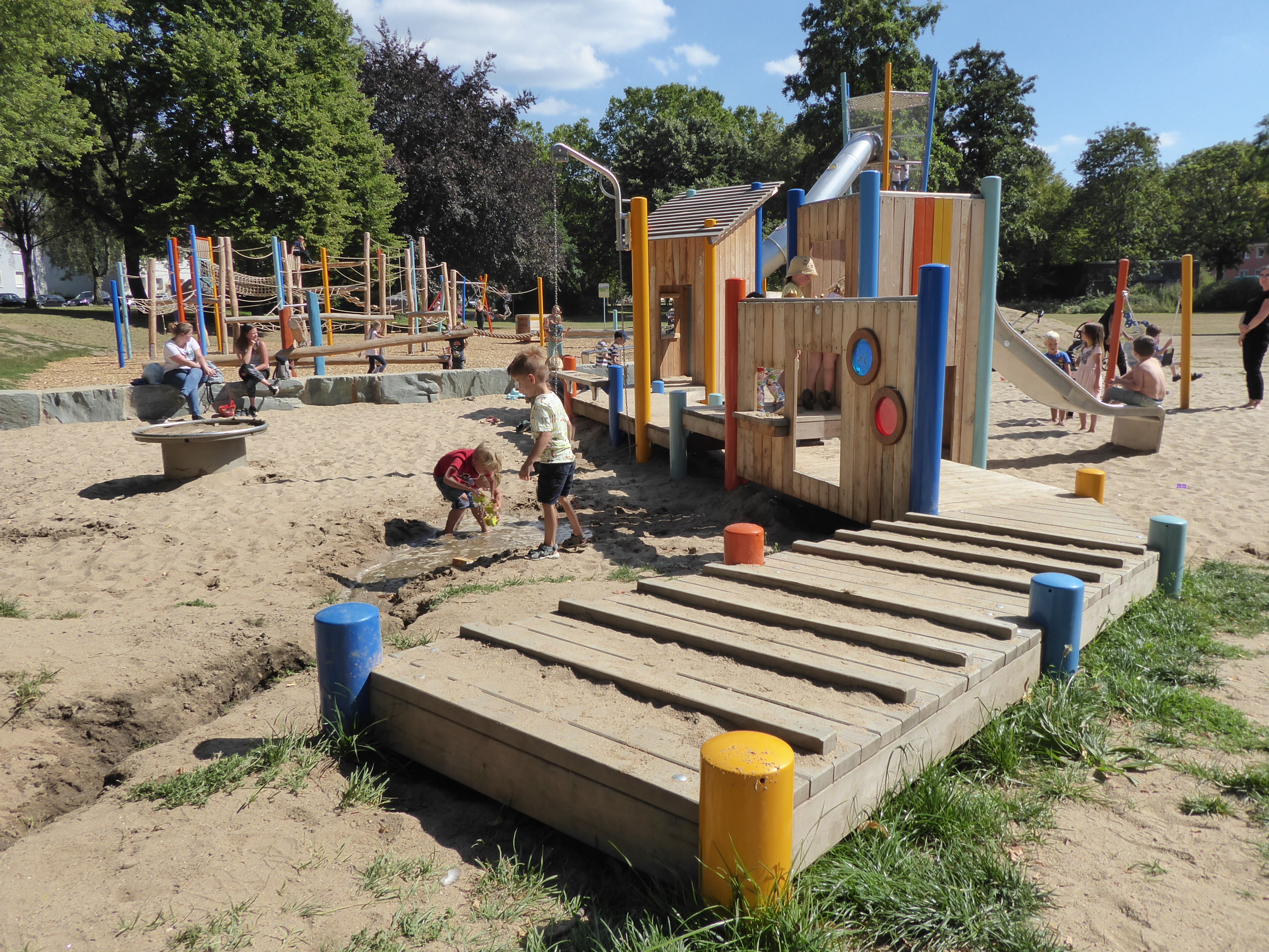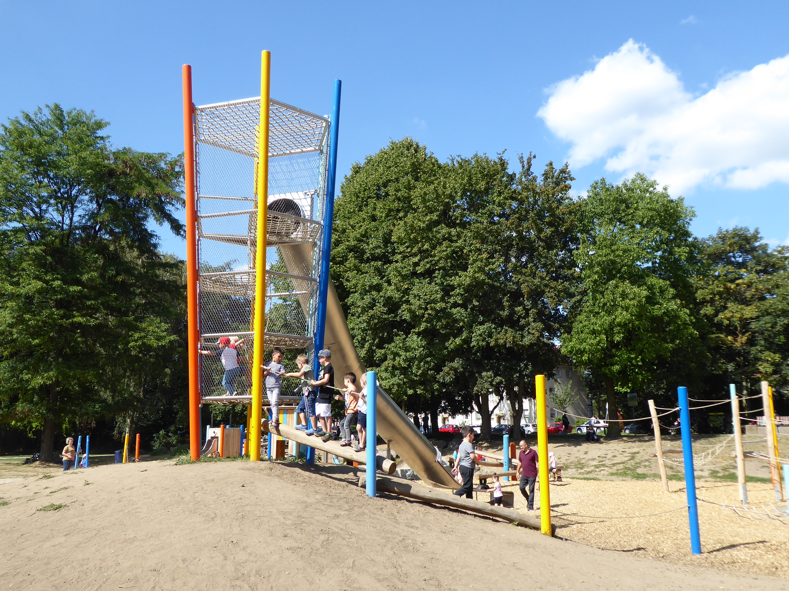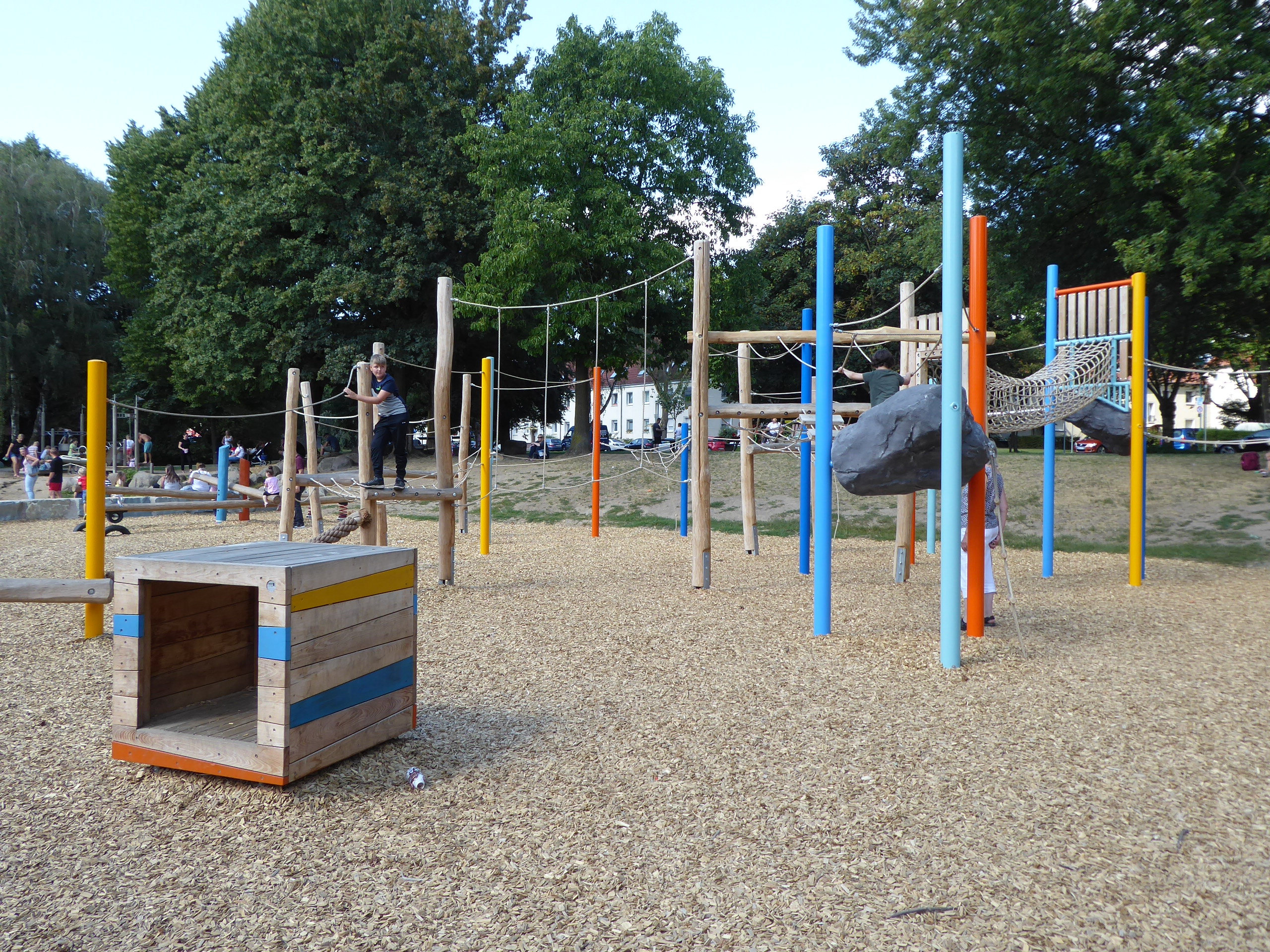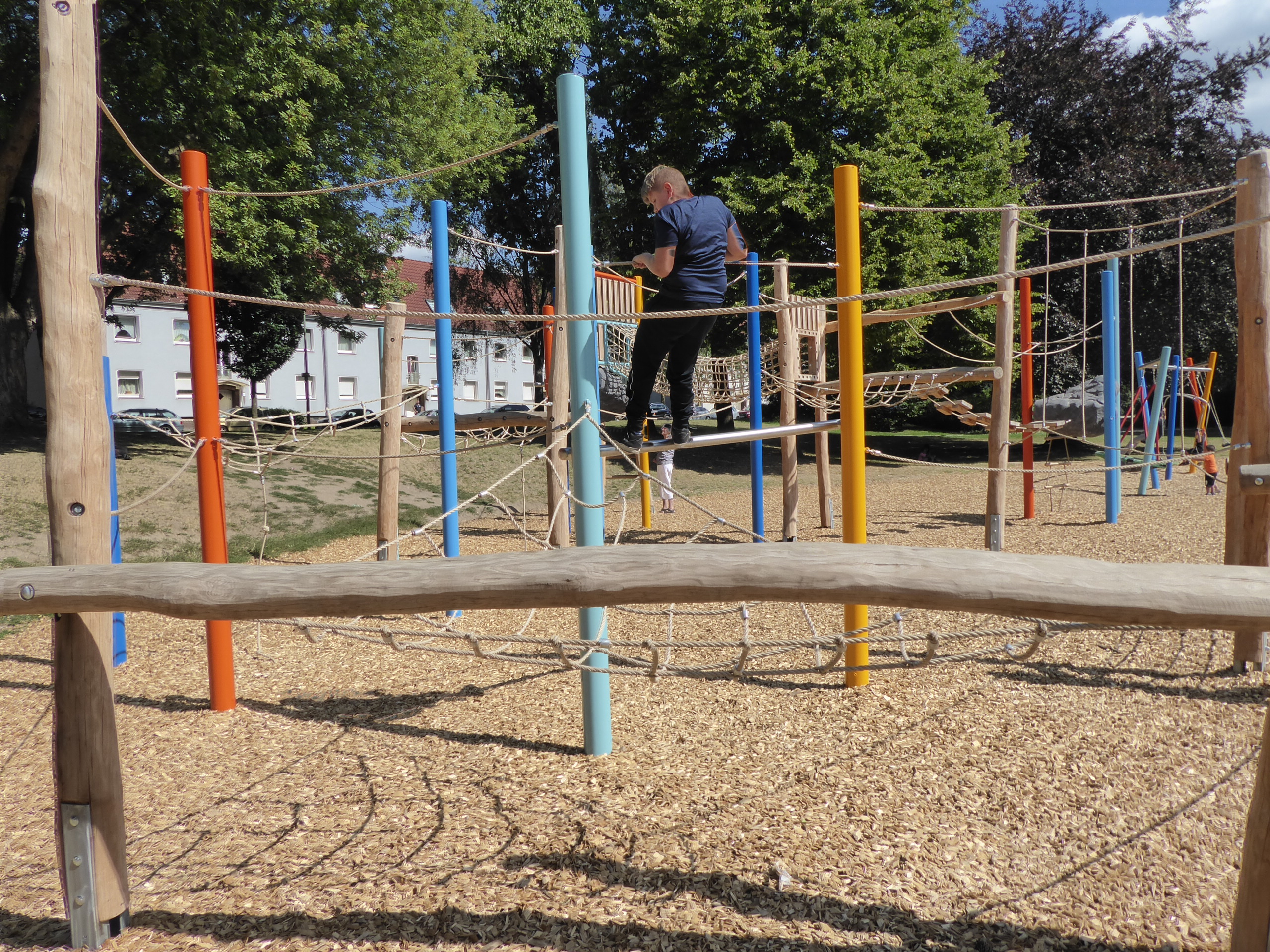 Auf dem Duisburger Franz-Lenze-Platz haben wir einen bestehenden Spielplatz mit neuen, ganz besonderen Spielgeräten ausstatten dürfen.
