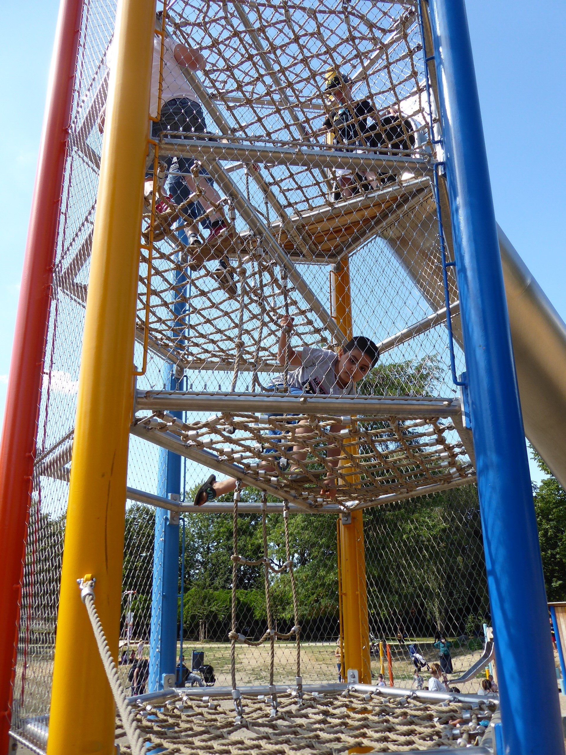 Unten angekommen kannn man die Kletternetzlandschaft erklimmen.