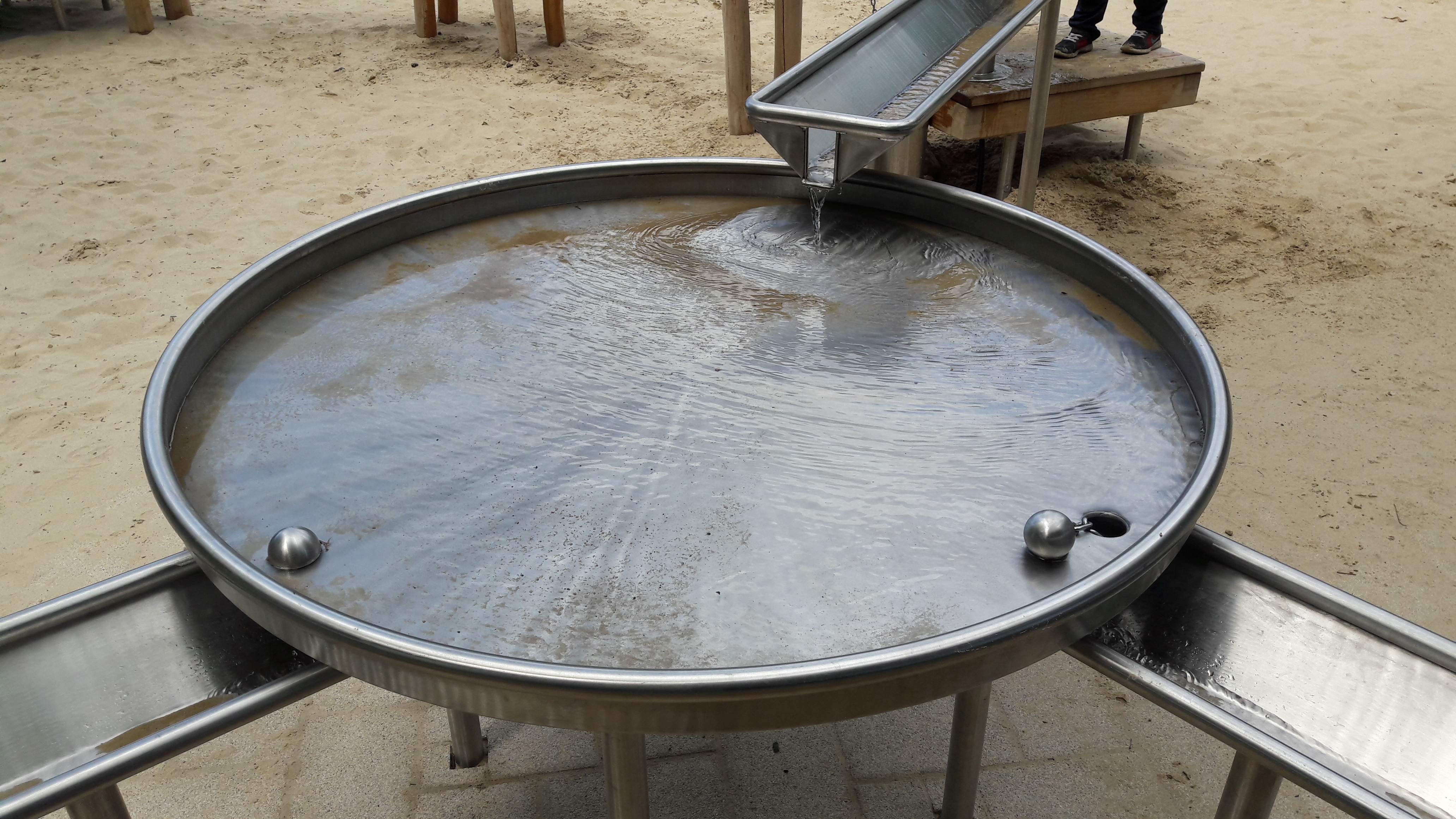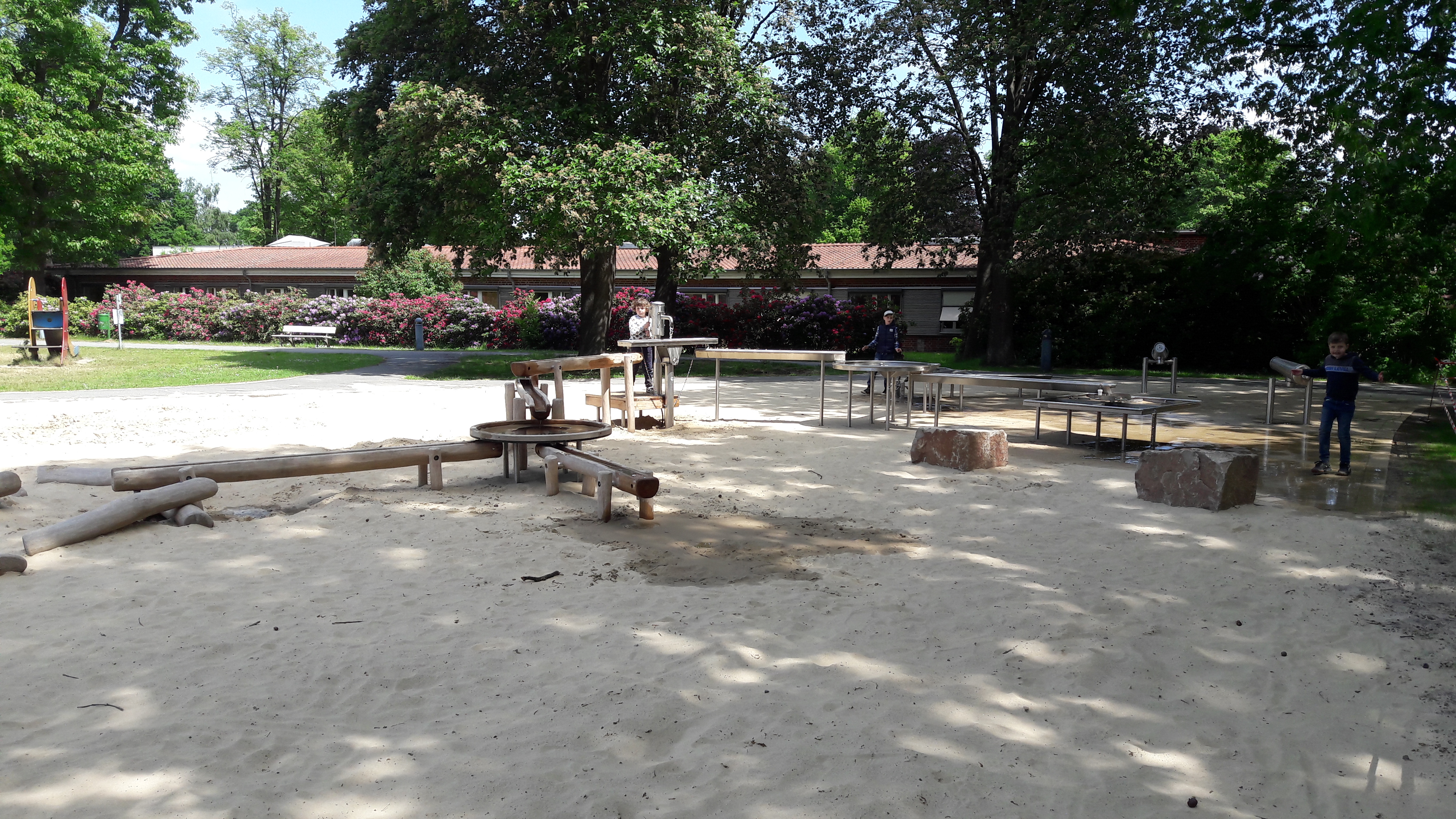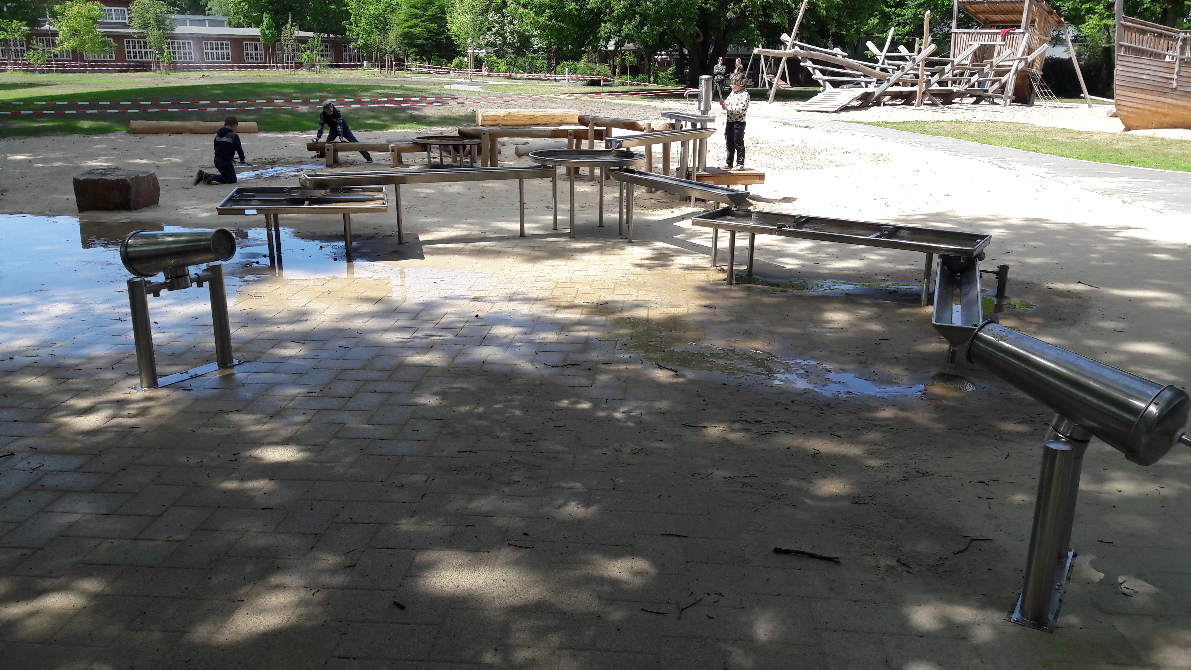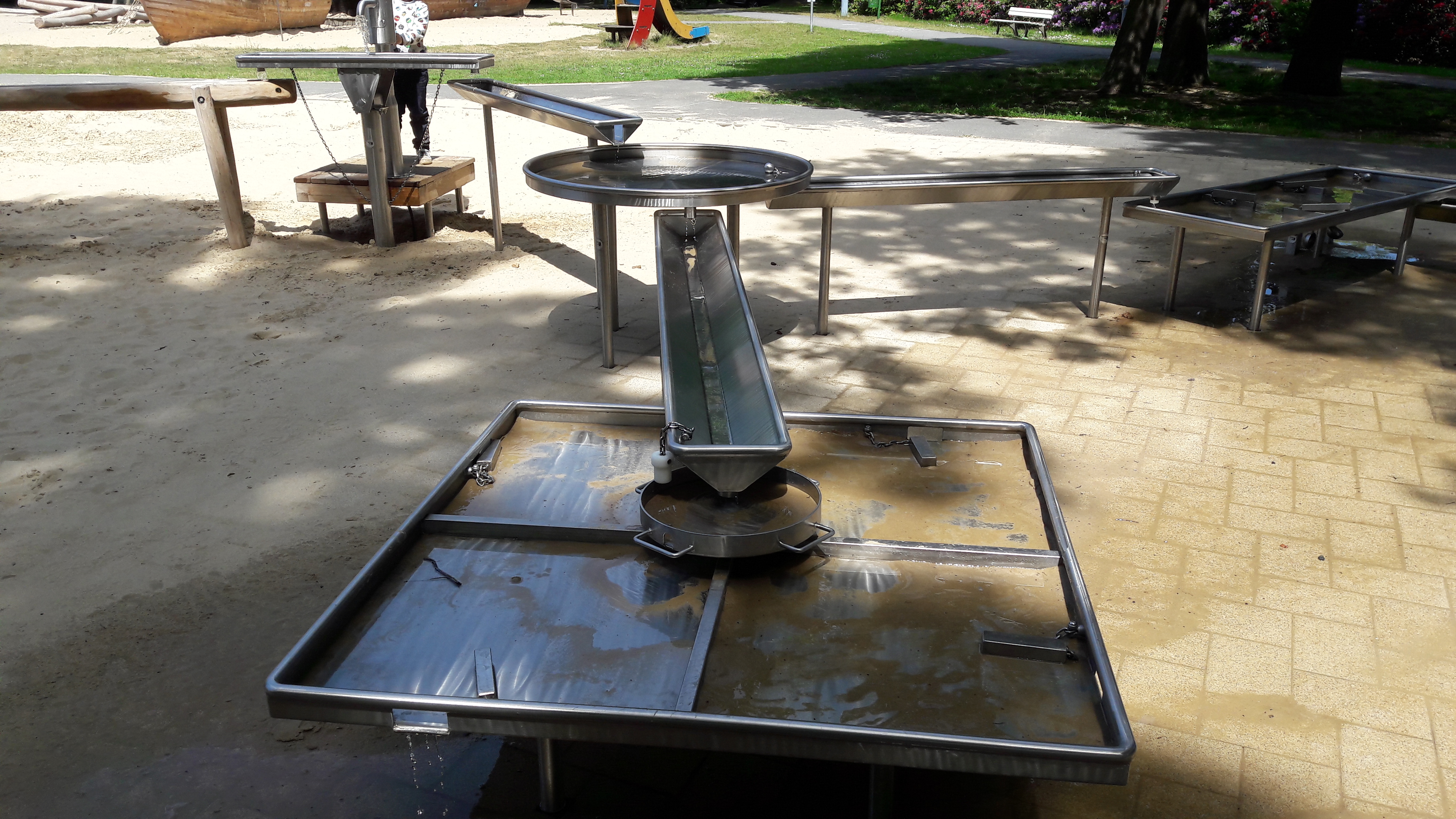 Wir haben den Spielplatz mit einer großen Wasserspielanlage verschönen dürfen, bei der Groß und Klein auf Ihre Kosten kommen.