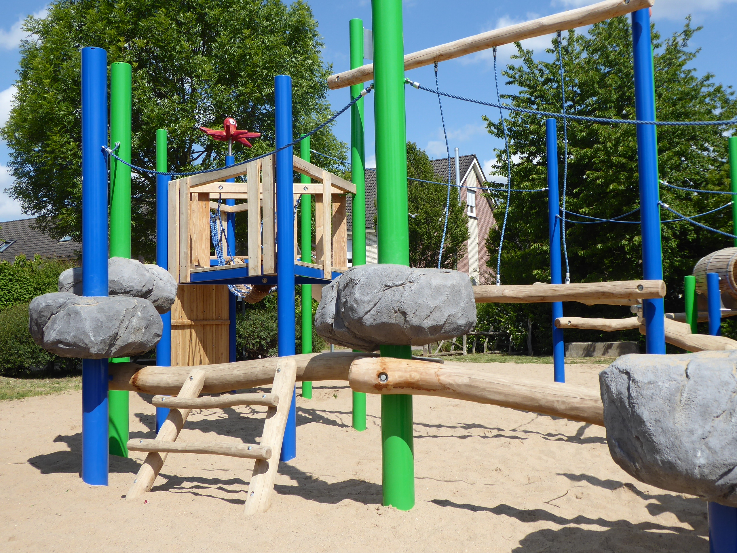Die Stadt Troisdorf hat sich in diesem Fall für eine grün-blaue Stahlanlage mit schwebenden Felsen als besonderes Highlight entschieden.