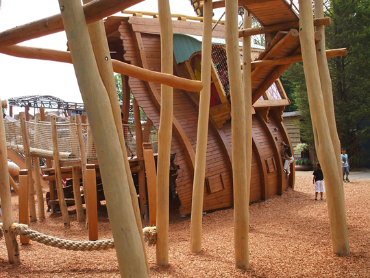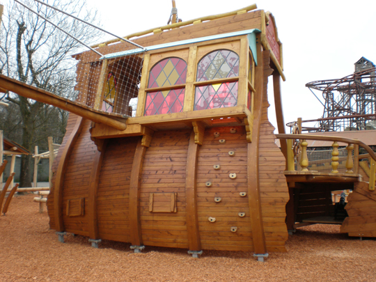 Mittelpunkt ist ein bekletterbares Piratenschiffswrack - als wäre es gerade gestrandet und zerborsten.
