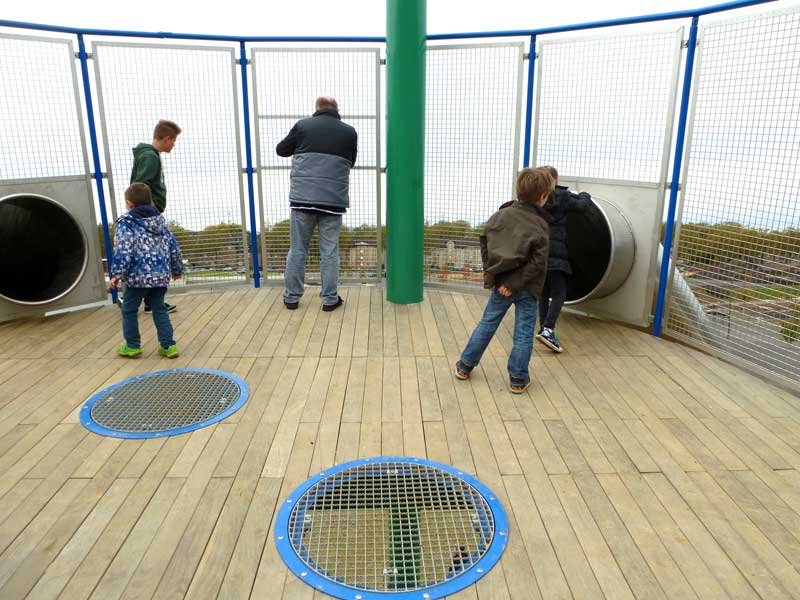 Und oben angekommen? Von der Plattform aus hat man einen super Blick über das Gelände, den man mit einem Fernrohr noch vertiefen kann.