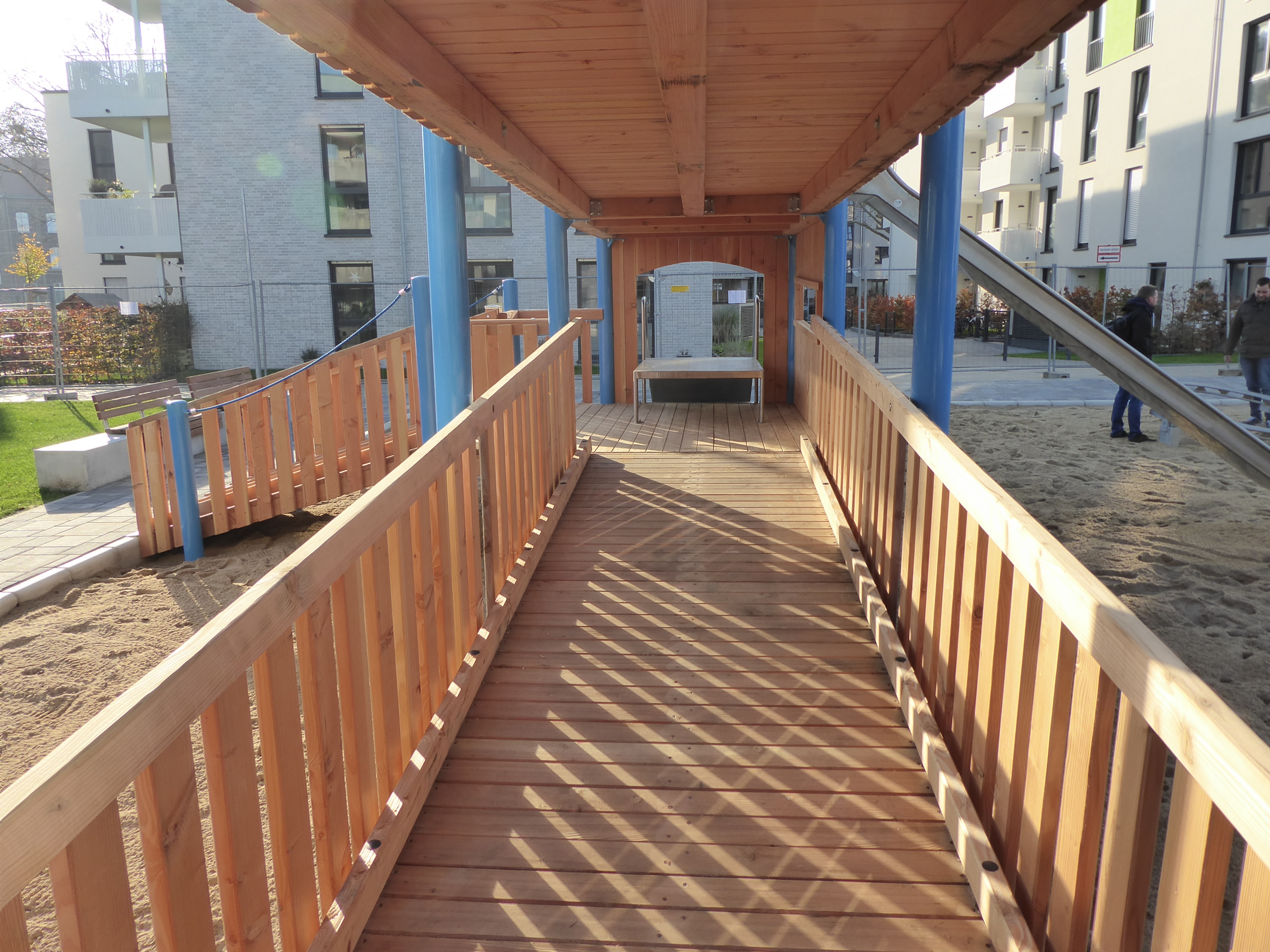Die barrierefreie Anlage kann im unteren Bereich komplett mit dem Rollstuhl befahren werden.