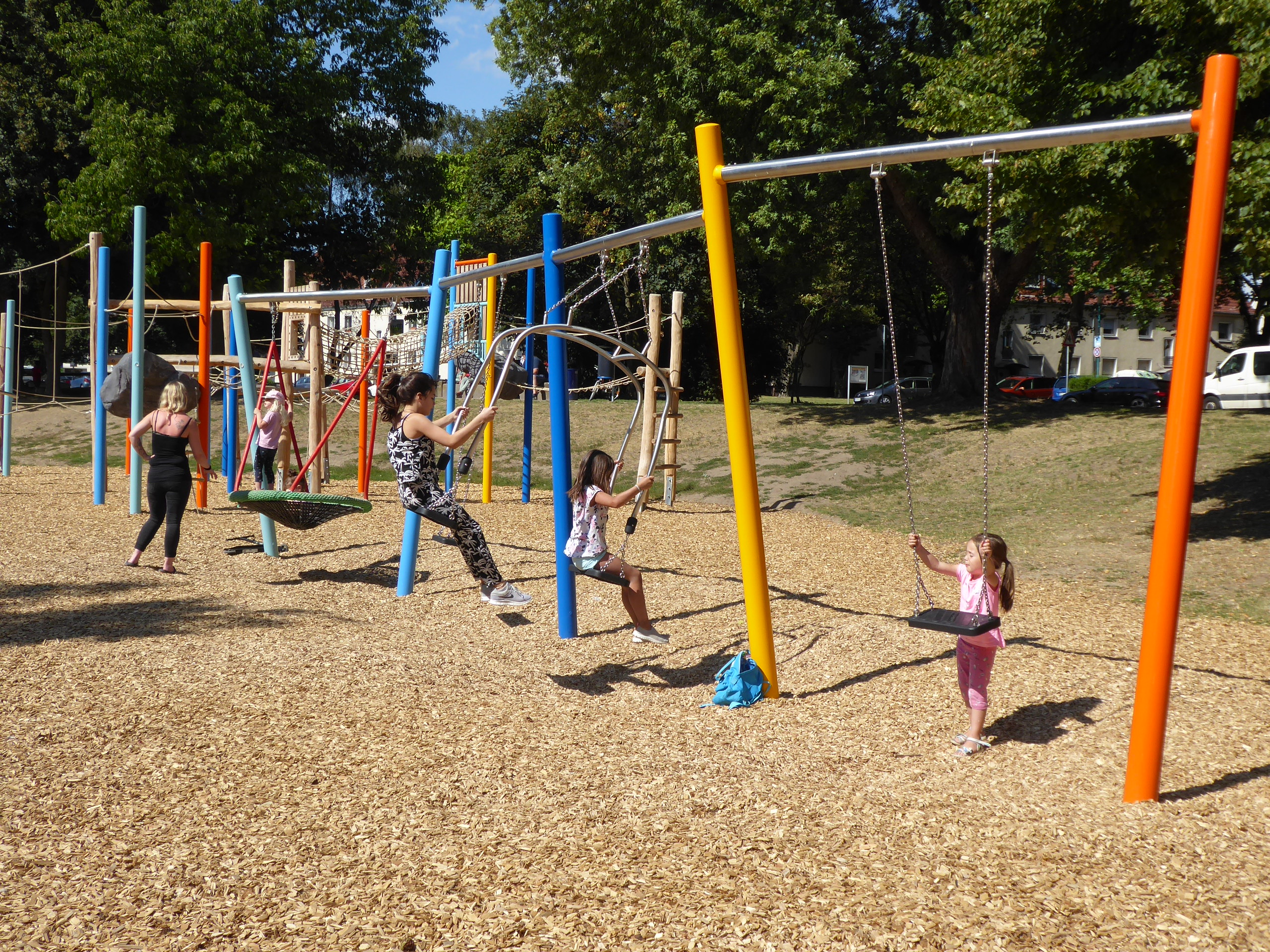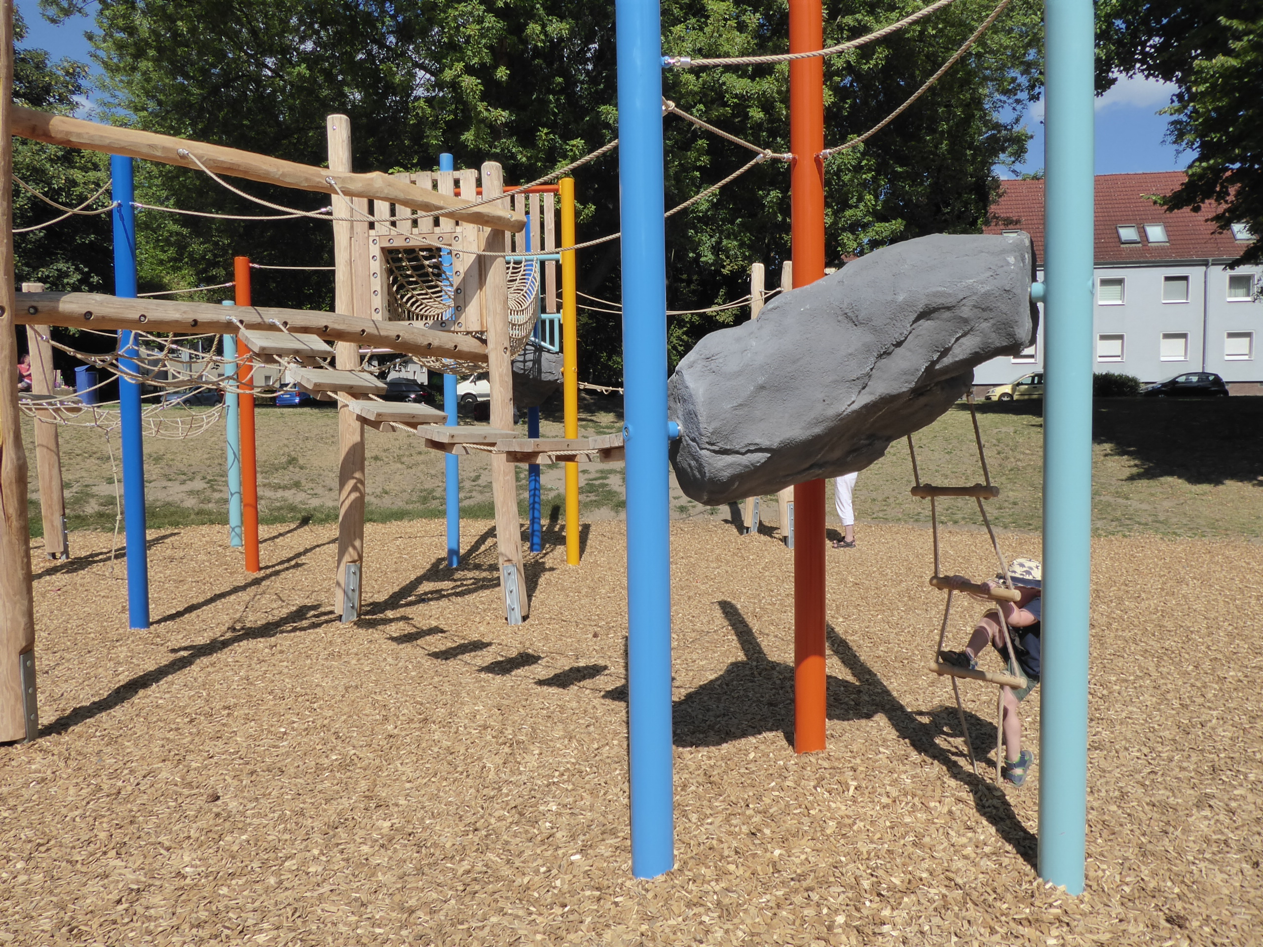 Auf dem Duisburger Franz-Lenze-Platz haben wir einen bestehenden Spielplatz mit neuen, ganz besonderen Spielgeräten ausstatten dürfen.