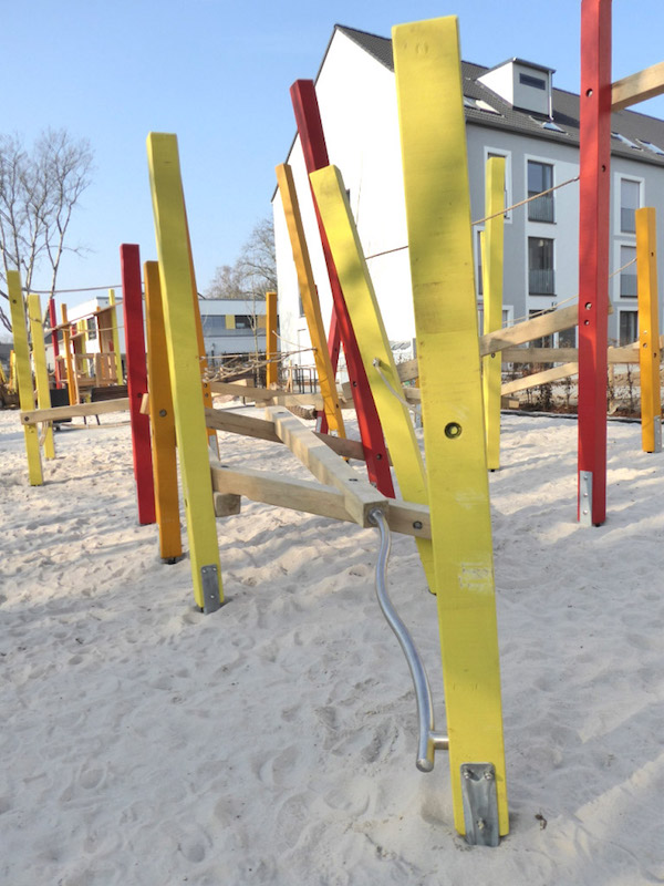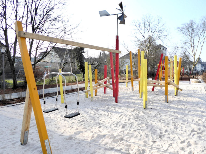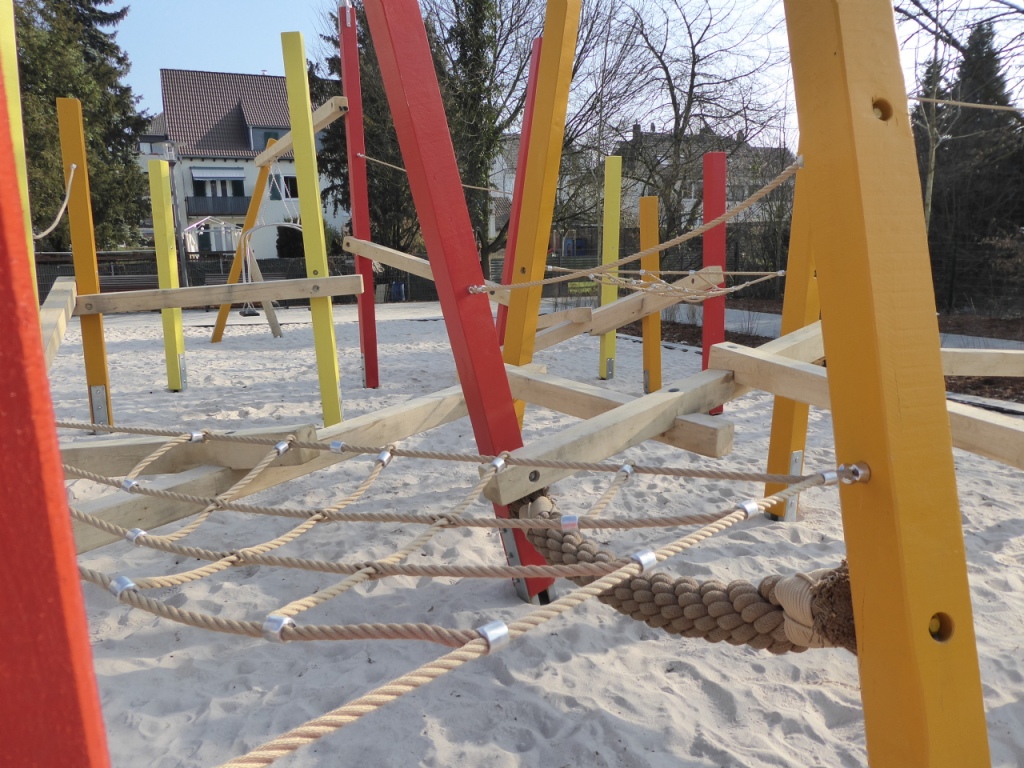 In der Bergisch-Gladbacher-Straße in Köln sind eine große Kletterlandschaft mit unterschiedlichen Anforderungsstufen sowie angeschlossener Schaukel mit Pärchensitz entstanden.
