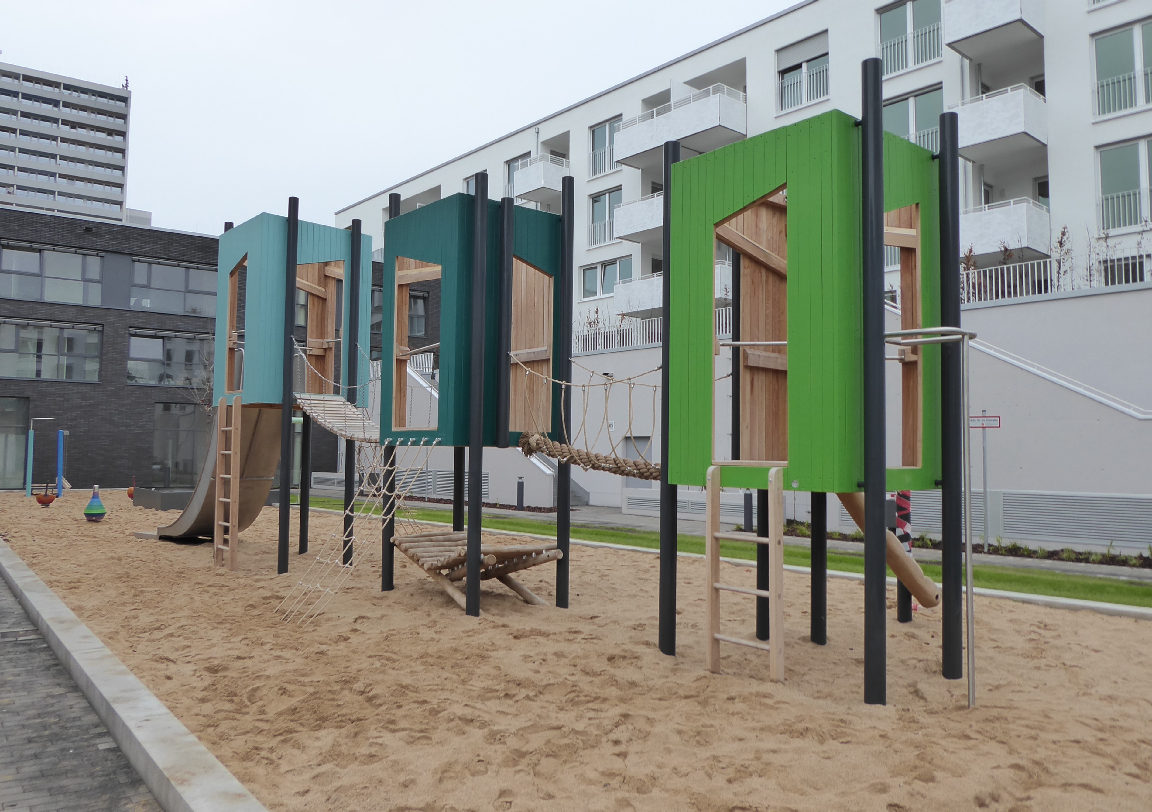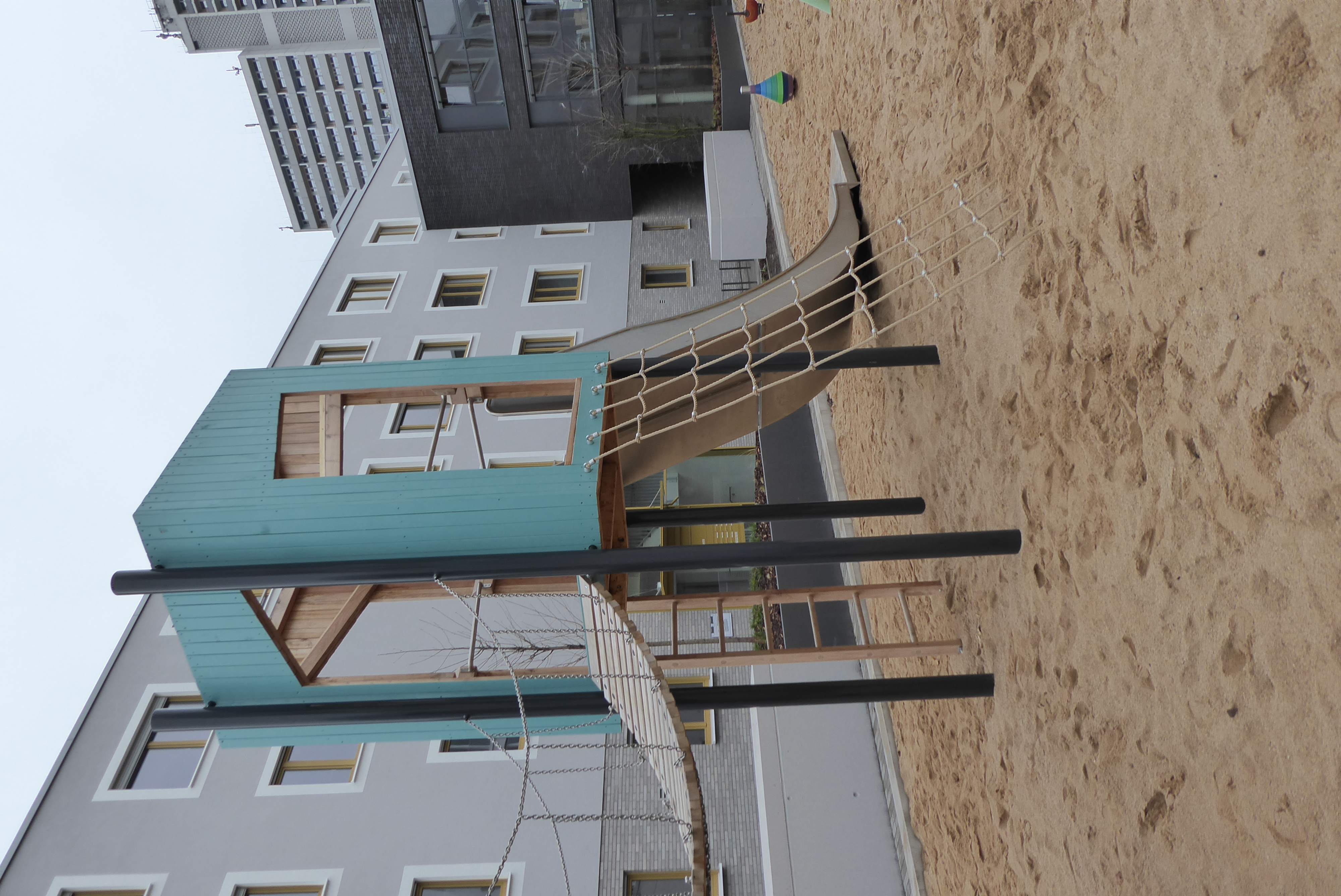 Der Rochusplatz in Köln ist 2020 Standort dieses besonderen Spielplatzes geworden. Die gradlinige Gestaltung der Anlage, in Kombination mit der aktuellen Farbgebung, passt sich hervorragend an die Architektur der Wohnbebauung an. Inmitten der Wohngebäude ist dieser Spielplatz, mit einer Kombination aus Holz und Stahl, ein besonderer Hingucker.
