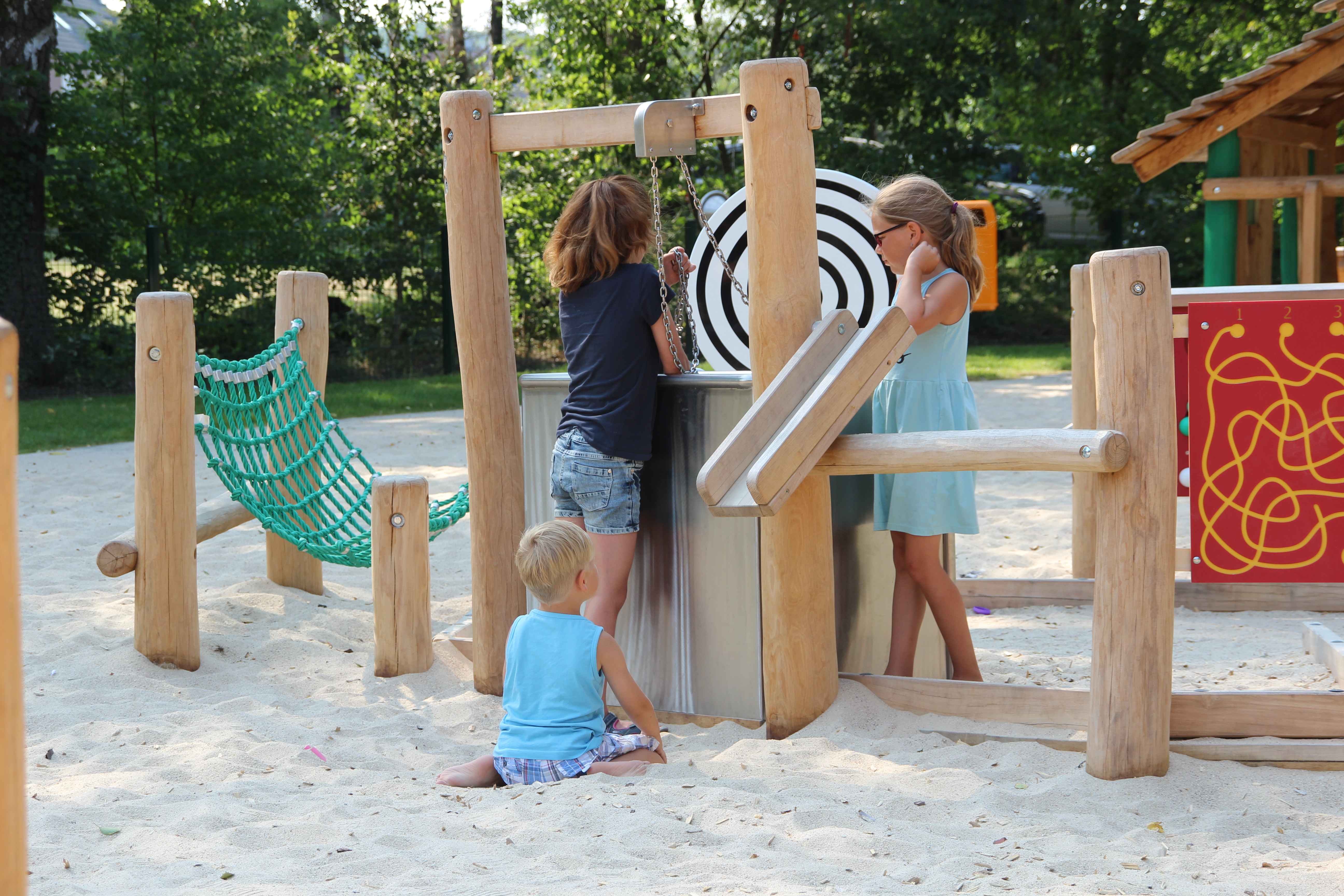 Neben einer Ballspielfläche mit unseren Mini-Bolzplatztoren sowie zahlreichen Spielmöglichkeiten sowohl für jüngere als auch ältere Kinder haben wir einige Besonderheiten im Hinblick auf die Barrierefreiheit eingebracht.