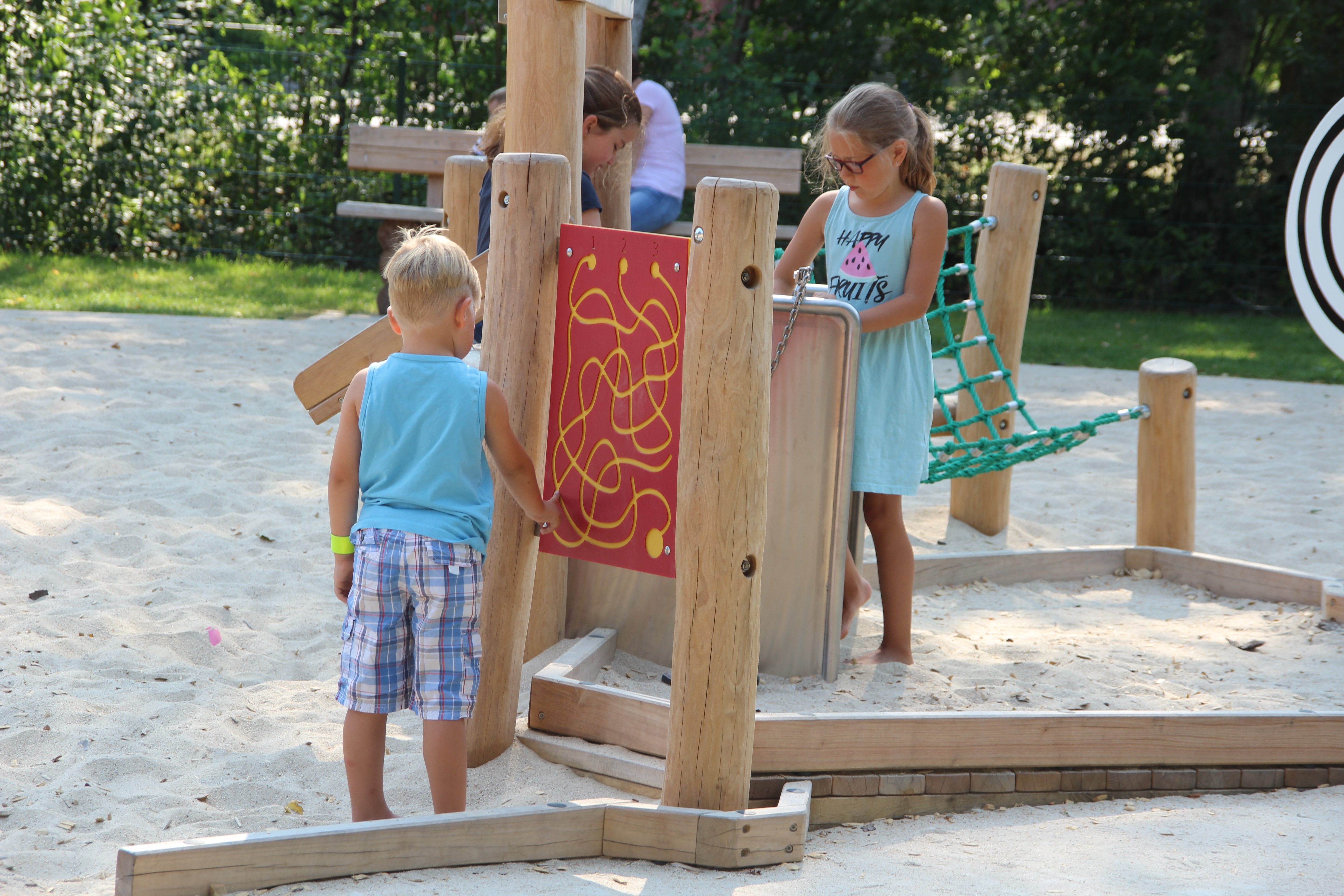Sandspieltisch zu matschen, die Schiebespielwand zu bedienen oder den Blick an
