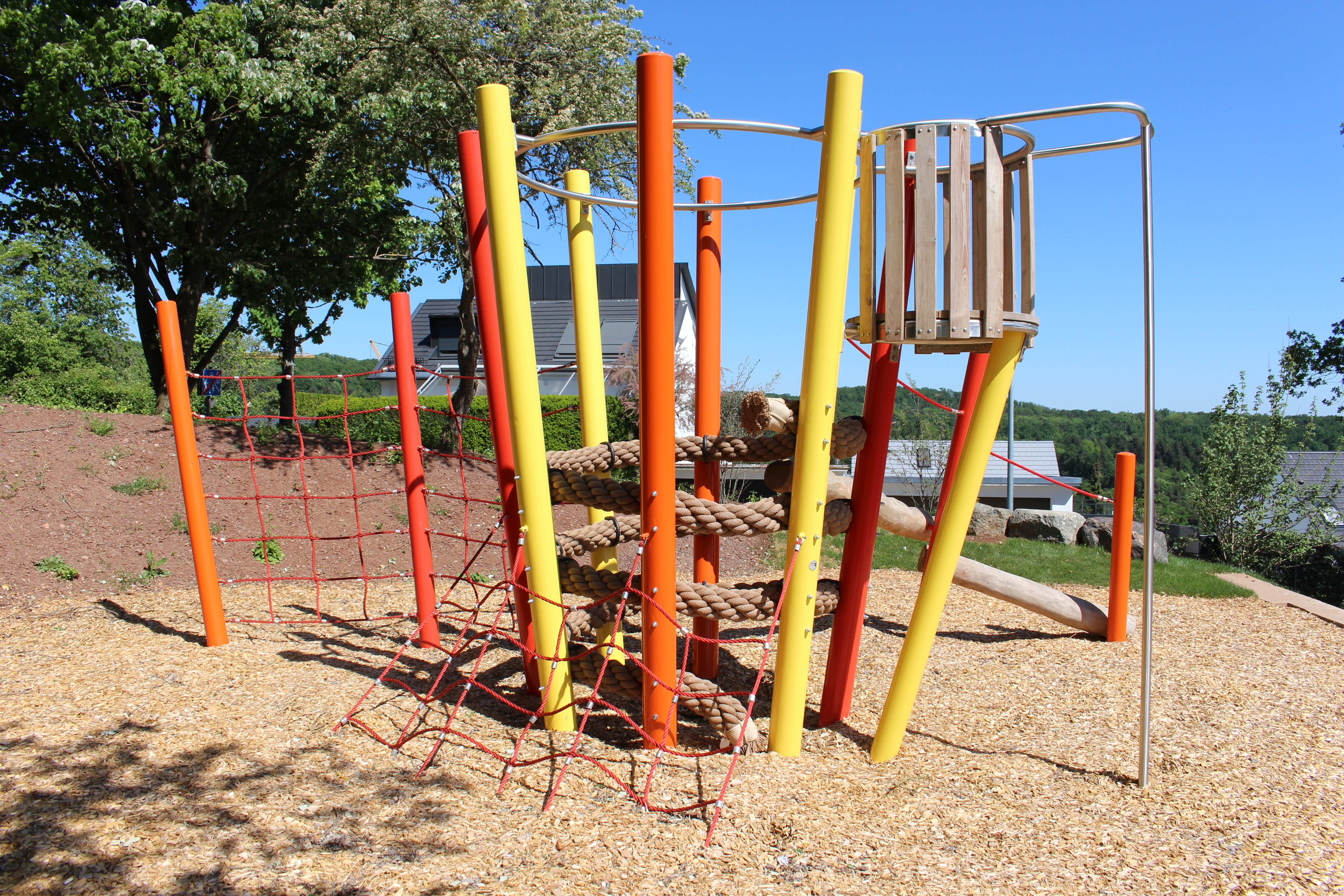 Mit dem kleinen Ausguck haben die Kinder die Möglichkeit hoch hinaus zu kommen und einen Überblick über das Gelände zu bekommen.