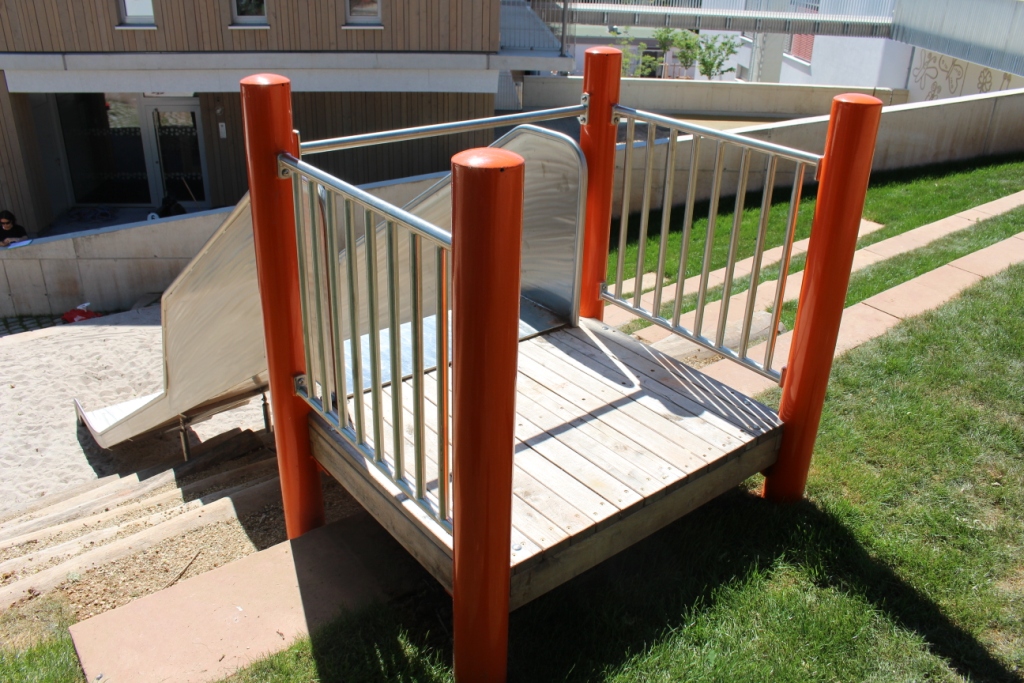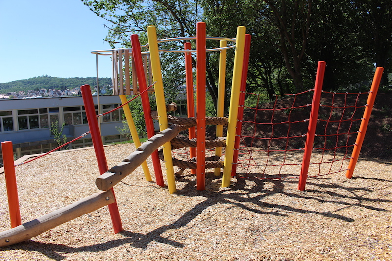 Der farbenfrohe Kletterturm und eine aufregende Rutsche laden die jüngeren Besucher des neuen Kinderhauses im Stuttgarter Ortsteil Botnang zum Rutschen, Klettern und Balancieren ein.