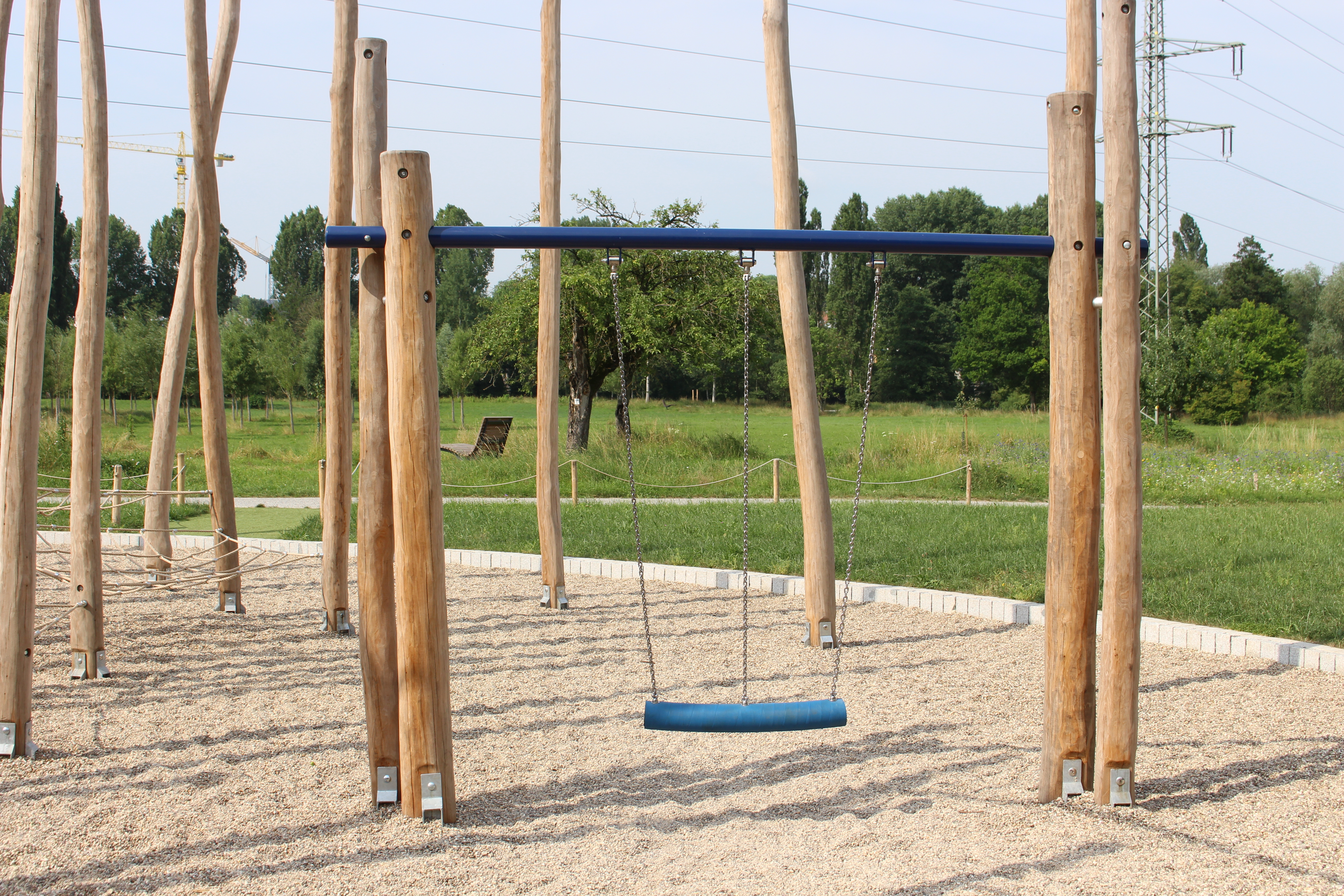 Eine kurze Verschnaufpause bieten die Schaukel und der Netzsitz, die sich perfekt in die Kletterinsel einfügt.