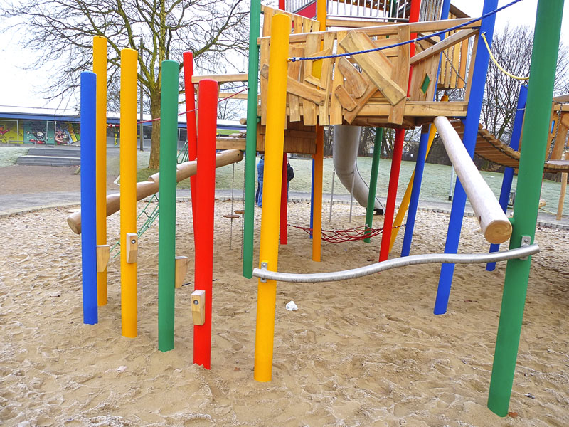 Ganz schön farbenfroh geht es neuerdings auf der Spielanlage an der