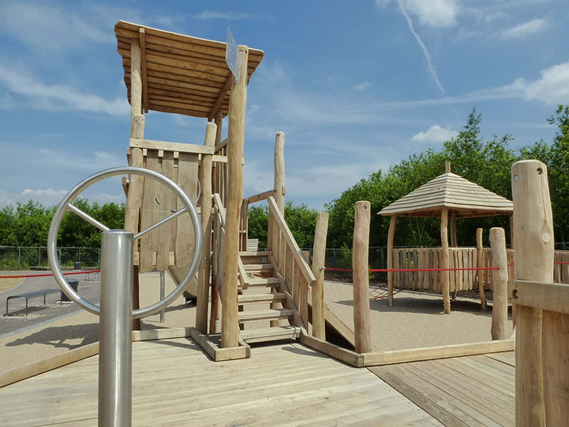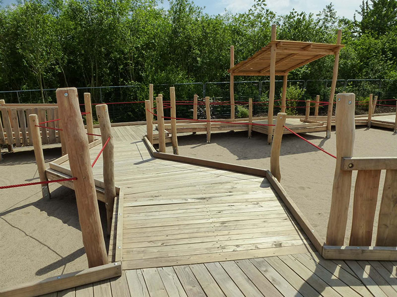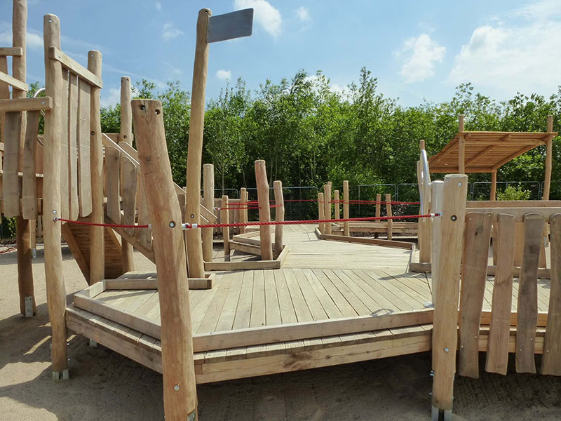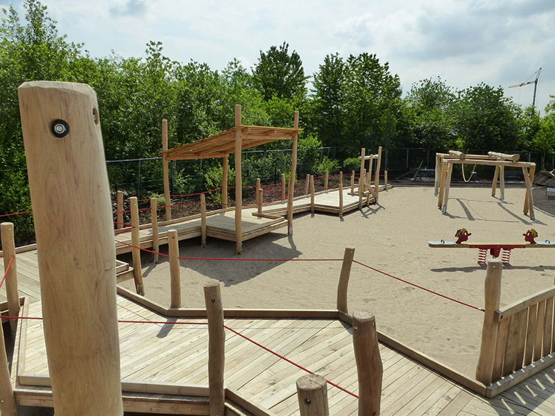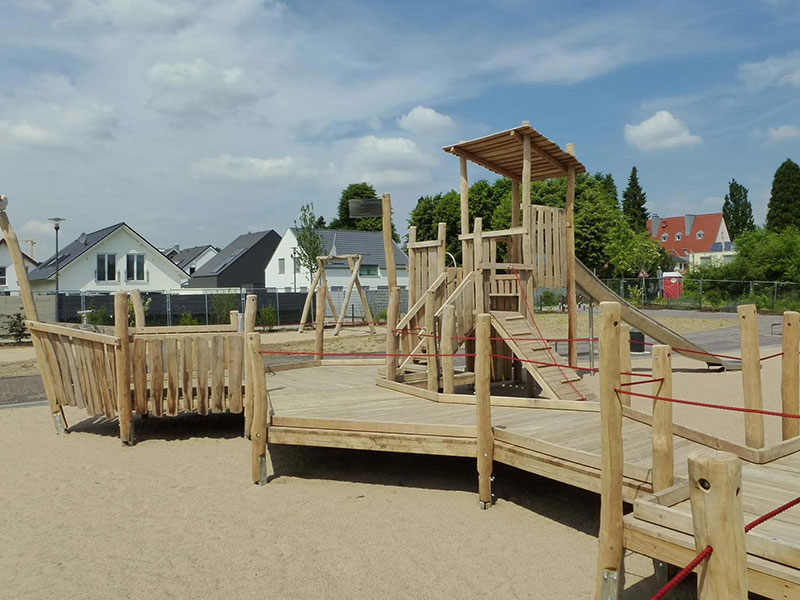 Der Kindheitstraum schlechthin: einmal auf einem eigenen Holzschiff fahren, toben und spielen! Dieser Traum geht jetzt für Kinder mit und ohne Behinderung auf dem Spielplatz "Sürther Feld" in Köln in Erfüllung. Eines neues integratives Spielschiff schmückt den Platz, es kann entweder per Seilrampe, Kletterwand oder über den angeschlossenen Hafensteg bestiegen werden. Auf dem Schiff kann man sich als echter Kapitän fühlen, entweder beim Steuern des Stahlruders oder oben auf dem Ausguck-Turm. Über eine Rutsche kann das Schiff bei Seenot schnellstens verlassen werden. Viele weitere Entdeckungen lassen sich jedoch auf dem großzügigen Holz-Hafenpier erspähen, über ein System von Stegen kann man einen spannenden Rundgang machen. Ein spezieller Kai ermöglicht dabei das Beladen der Schiffe per Sandeimer und Schüttvorrichtungen. Die gesamte Anlage wurde für Kinder mit Behinderung oder Rollstuhl entwickelt und ist komplett barrierefrei. Gesäumt wird der Hafen von einer Doppelschaukel, einer Wippe und einer Seilbahn mit Rampen. Echtes Hafenflair mitten in der Stadt, dann mal „Leinen los!“.
