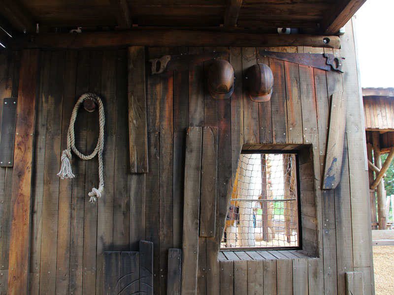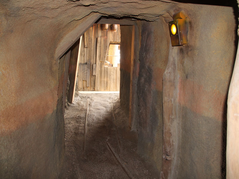 Im Mittelpunkt der 6400 Quadratmeter großen Fläche steht die Minenanlage mit ihrem 16 Meter hohen Turm, der von Abenteurern über 8 Etagen erklommen werden kann. Man gelangt auch unter Tage in die Mine und kann der Spur des Goldes folgen. Verschlungene Pfade und Tunnel bieten immer neue Spezialeffekte! Auf einer großen Goldwaschanlage kann man sich anschließend selbst als Glücksritter versuchen.