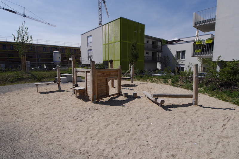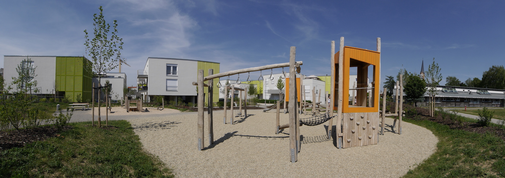 Ein Spielplatz für alle Altersklasse, angepasst an das gradlinige, neugebaute Umfeld mit vielen Möglichkeiten zum Klettern_ dies waren einige der Wünsche in der Ausschreibung für den Spielplatz des Generationenparks Königsbrunn.